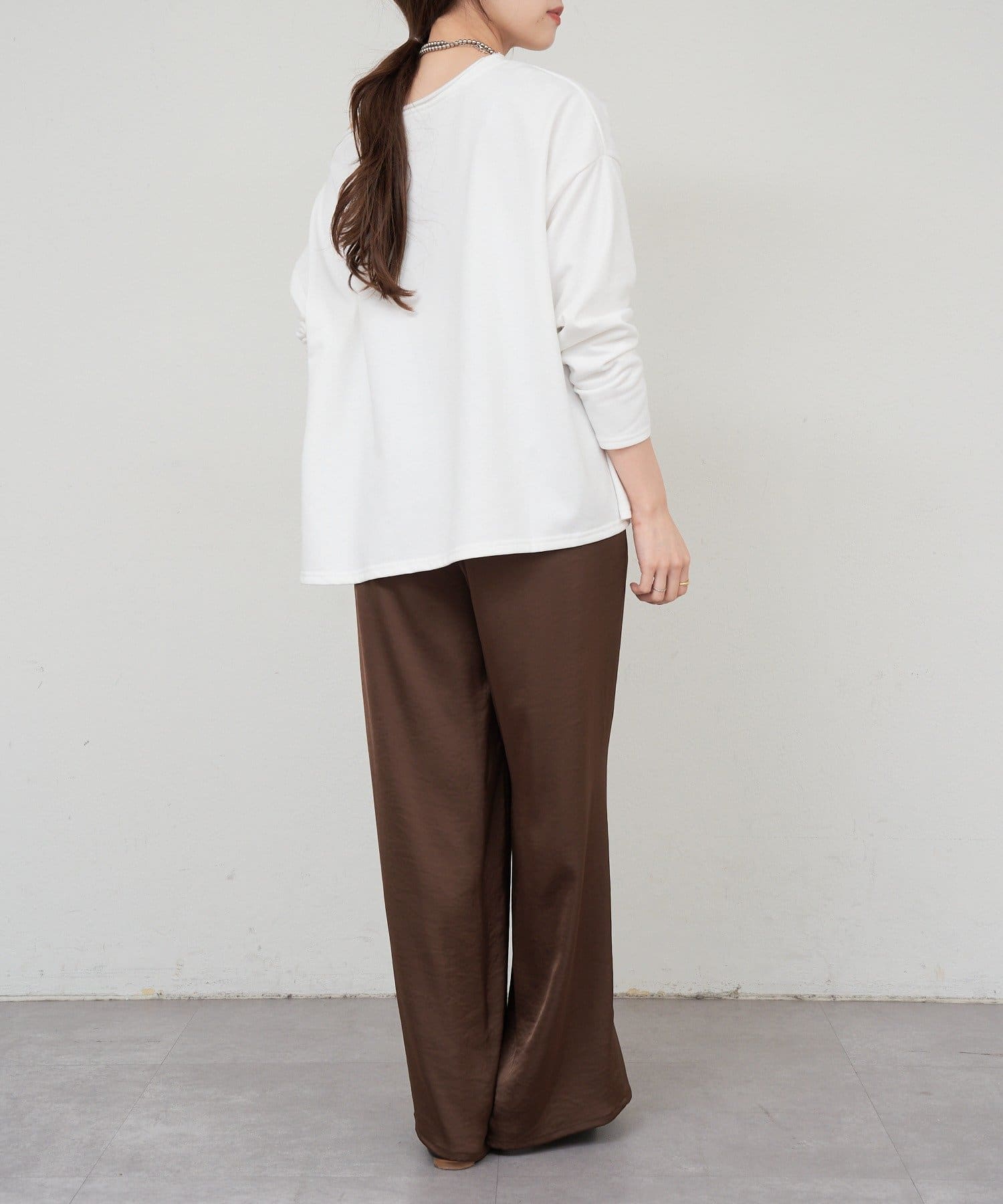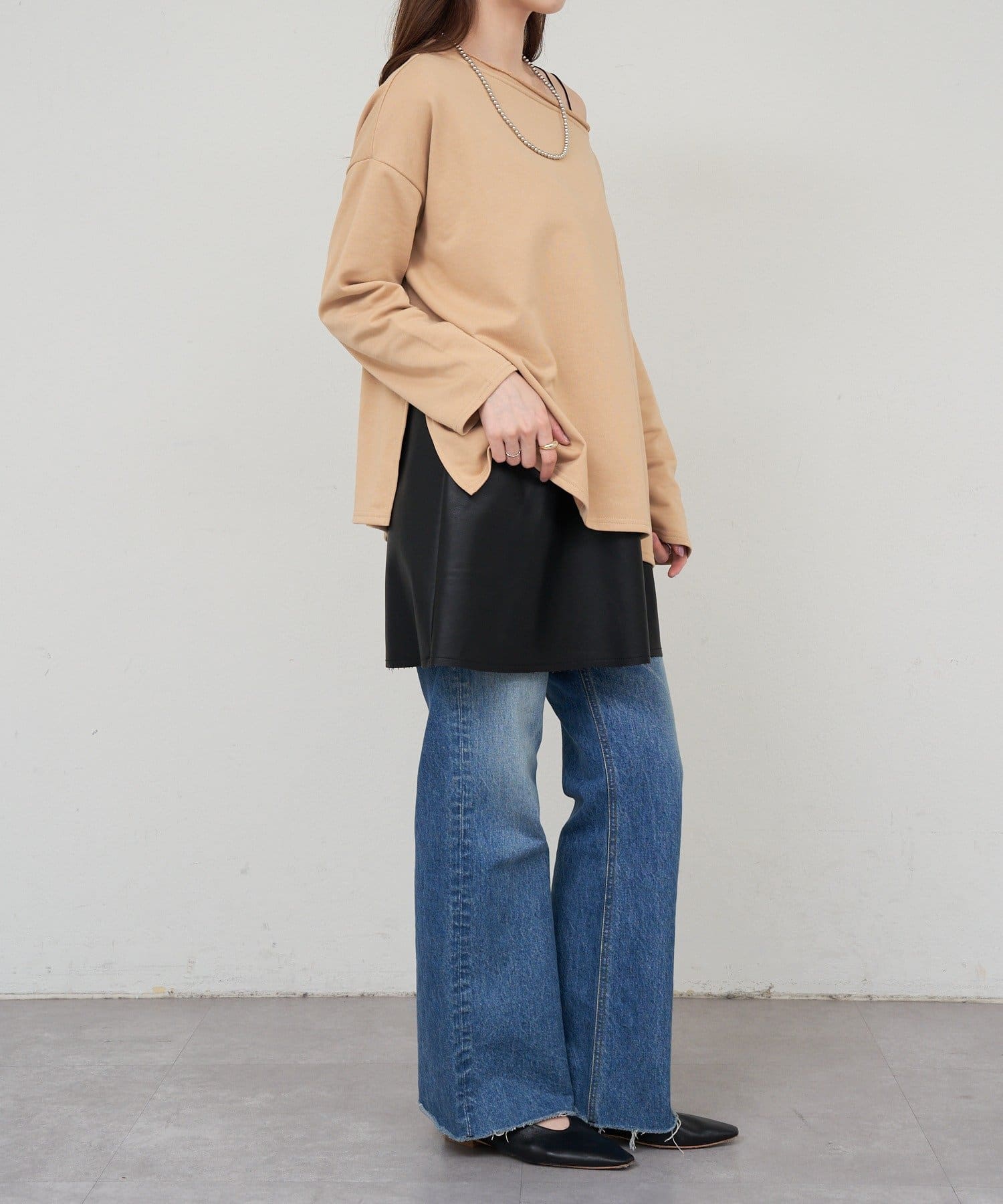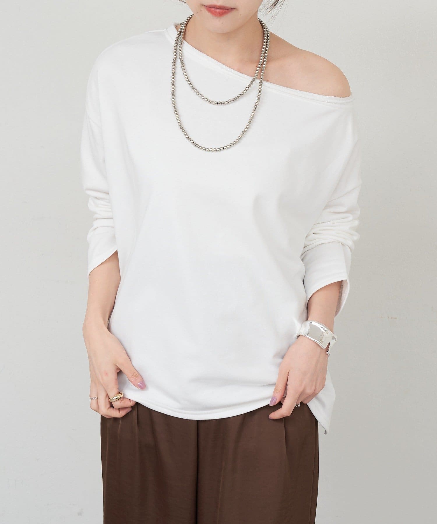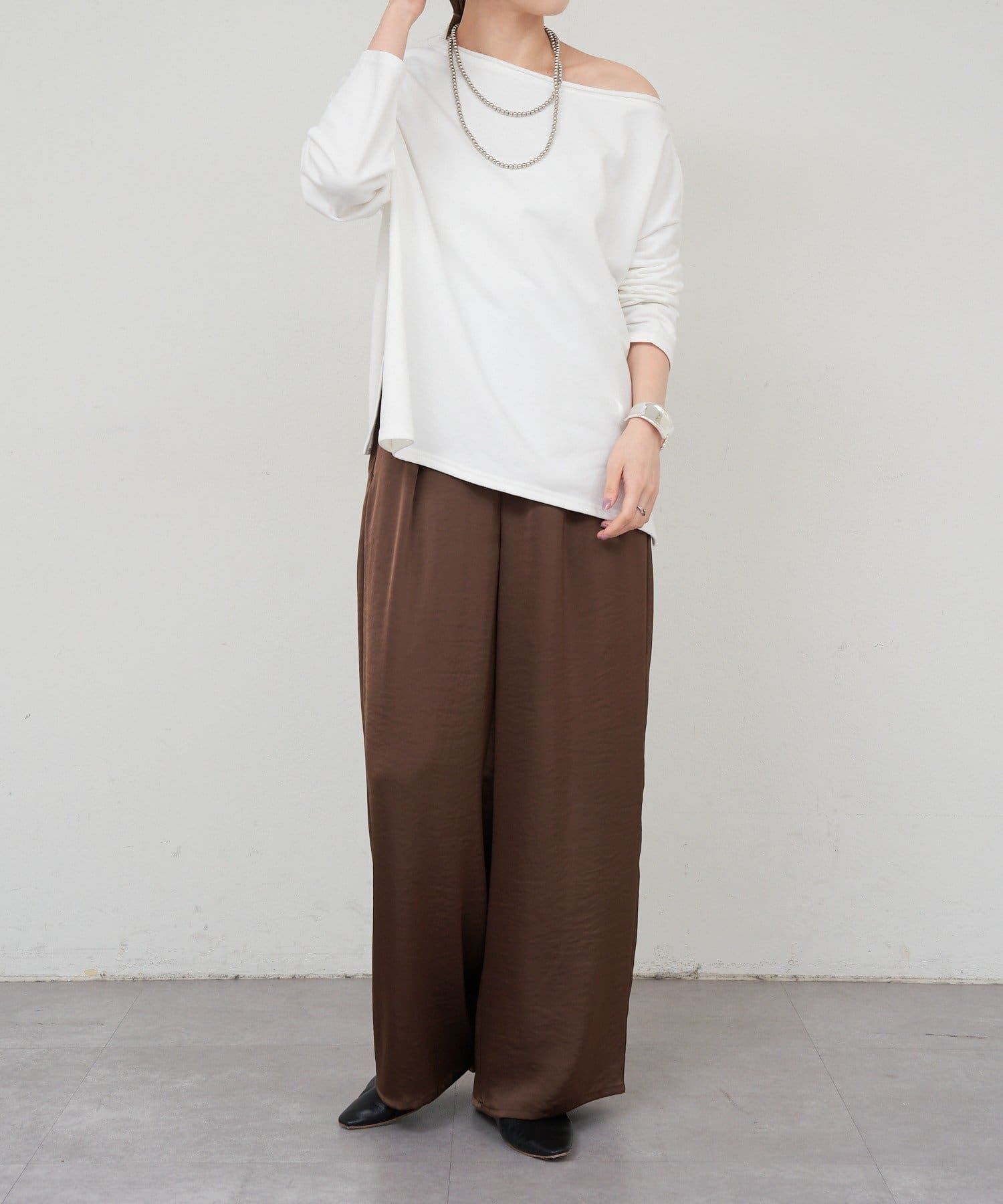 自然な肌見せが抜け感を出し、大人カジュアルコーデを楽しめるスウェット。
