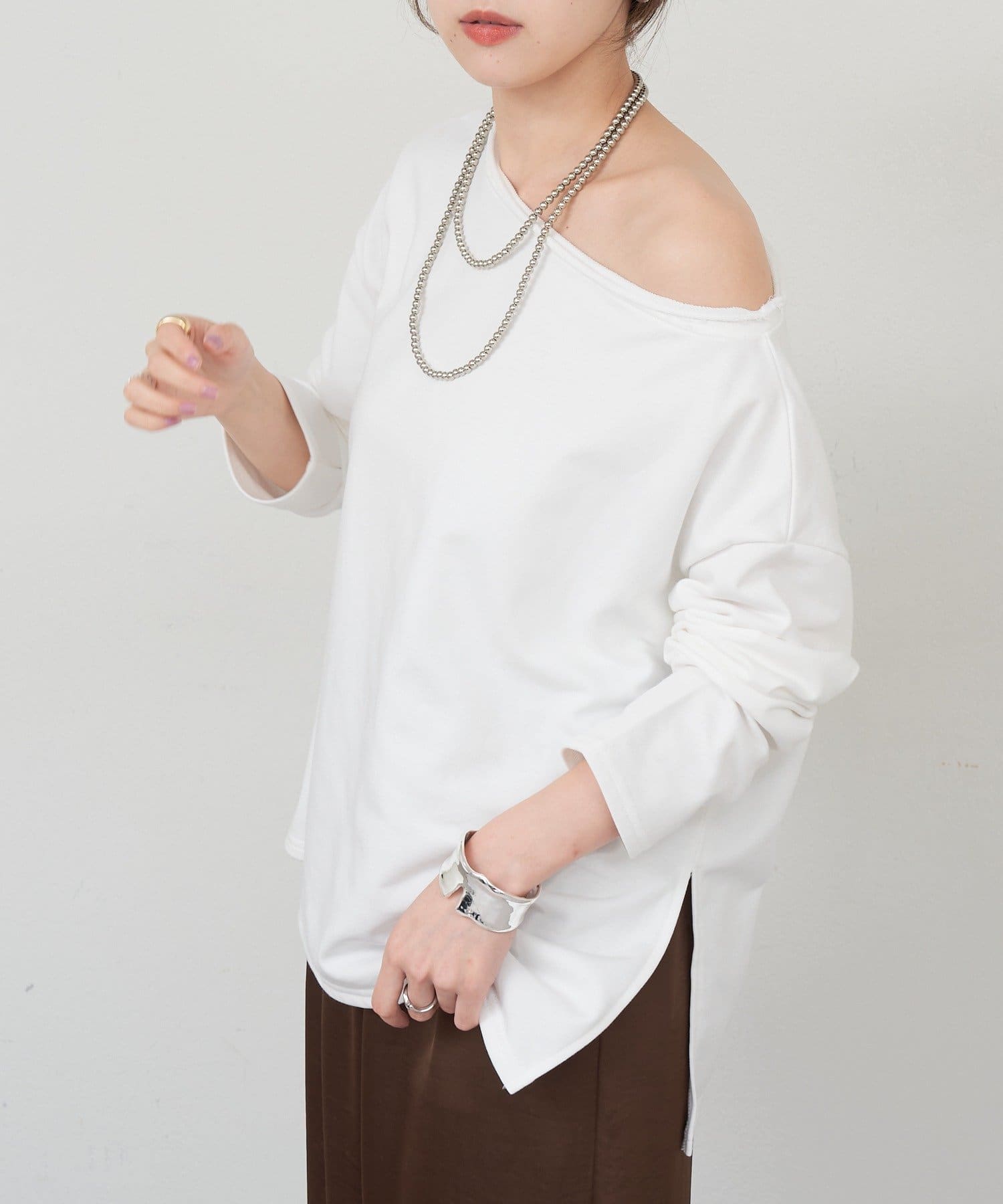 • SHENERY(シーナリー) サイドスリットオフショルスウェット