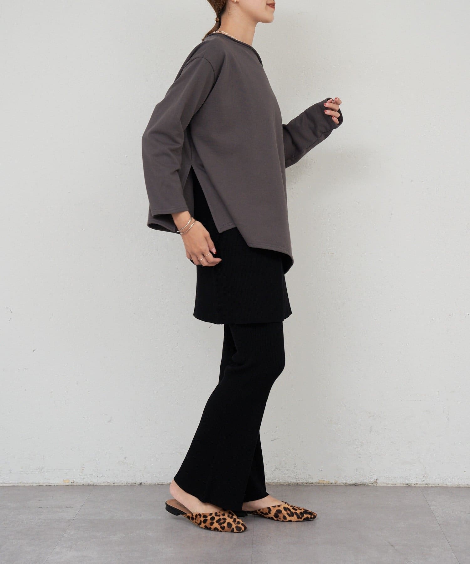 ヒップにかかる丈感で、抜け感のあるサイドスリットもポイントです。