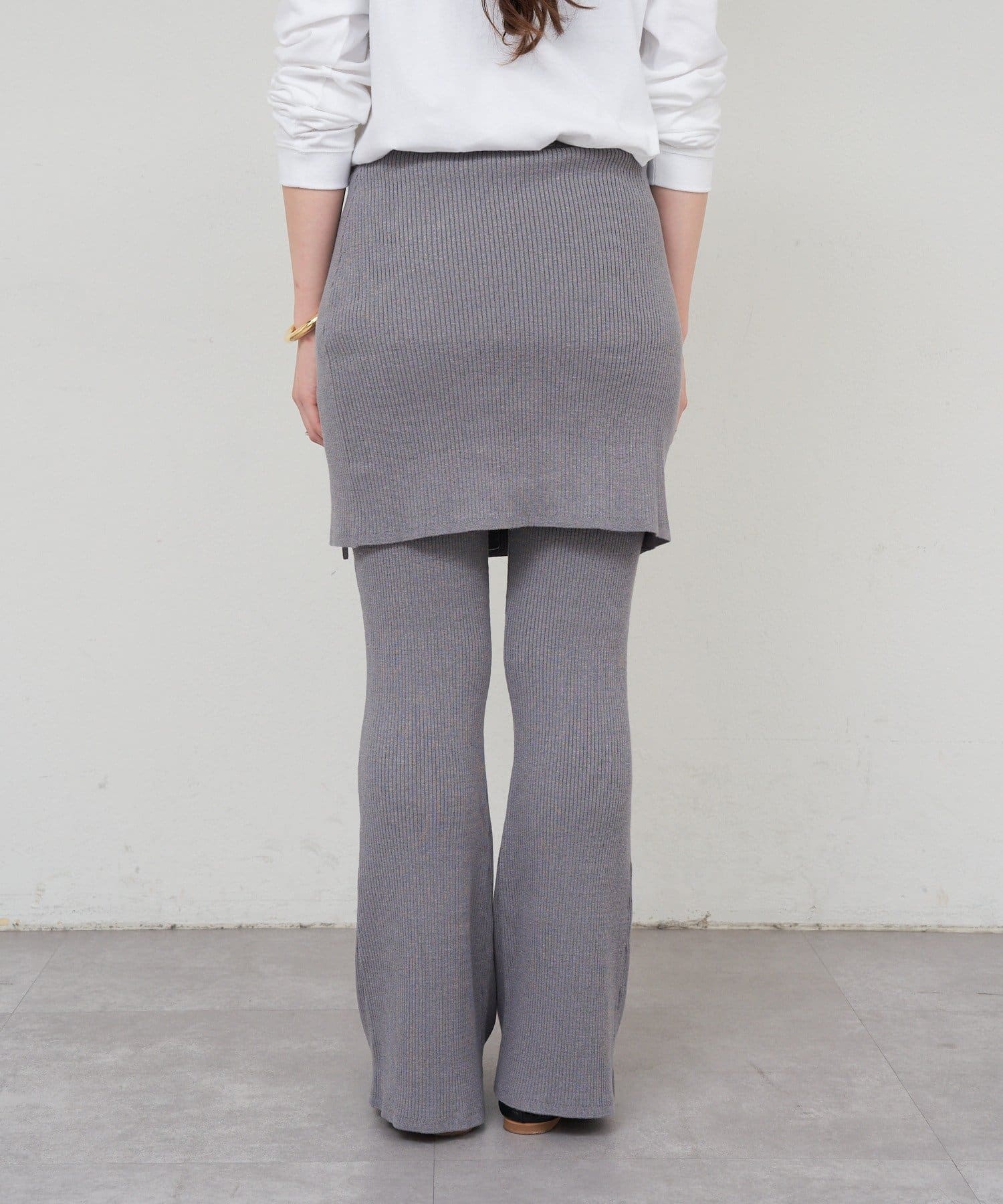 スカートレイヤードのデザインで、旬な表情に仕上げたニットパンツ。