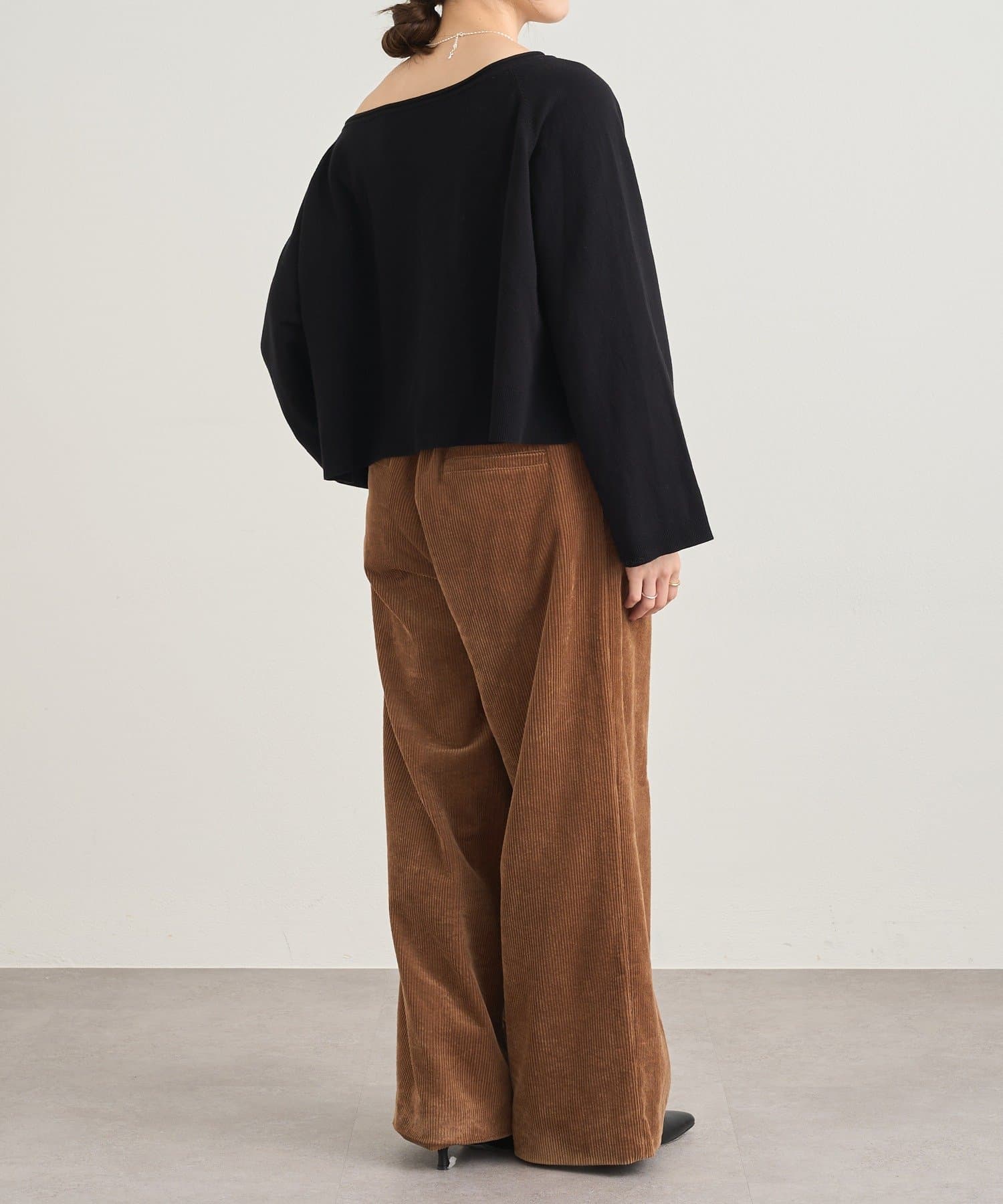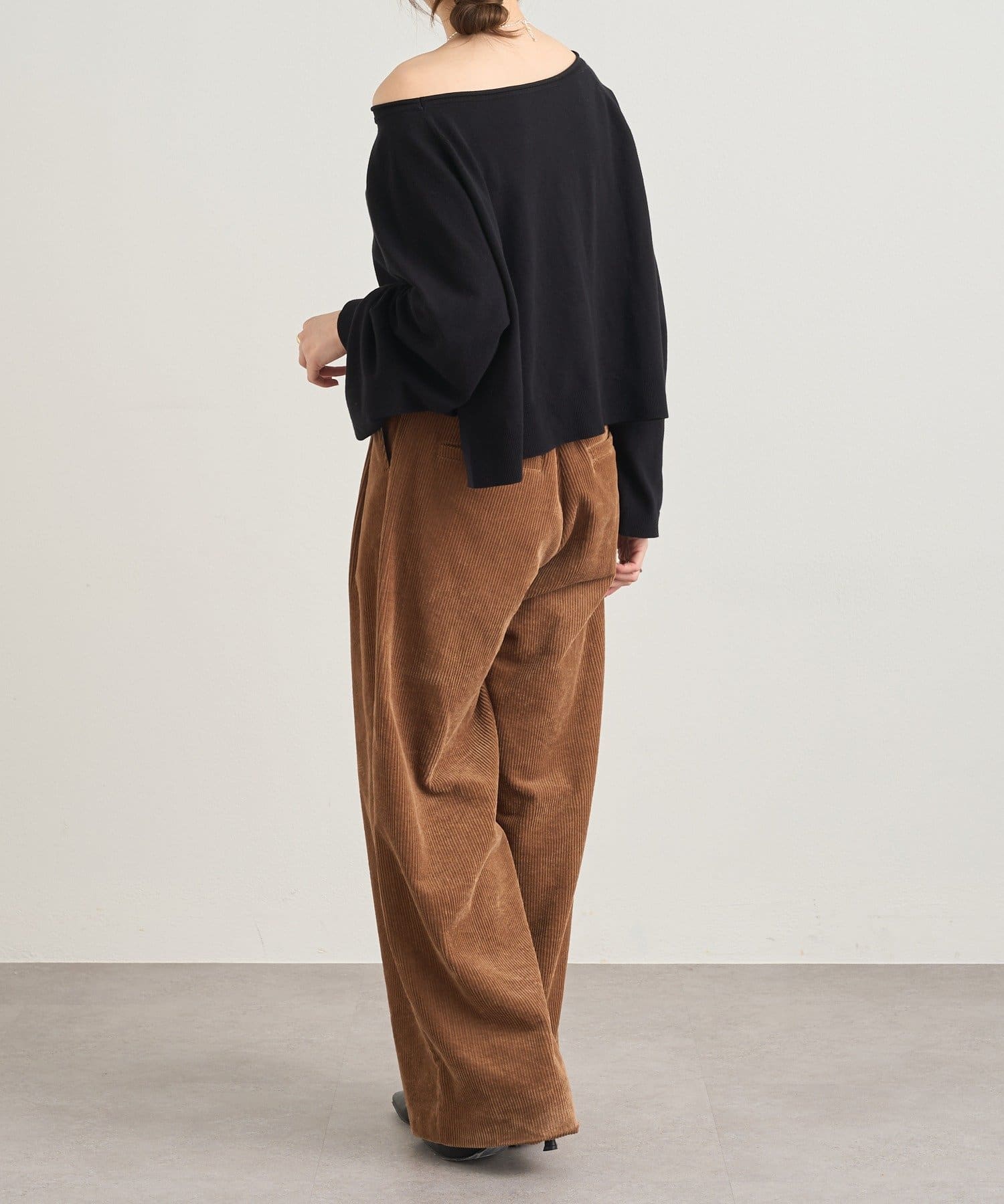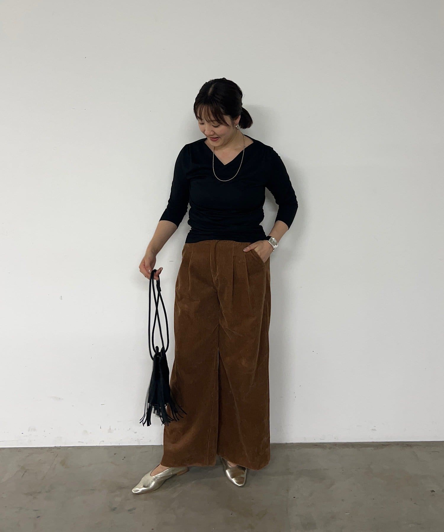 ・程よいワイドシルエットで体のラインを拾わず、スタイルアップ効果も期待できます◎