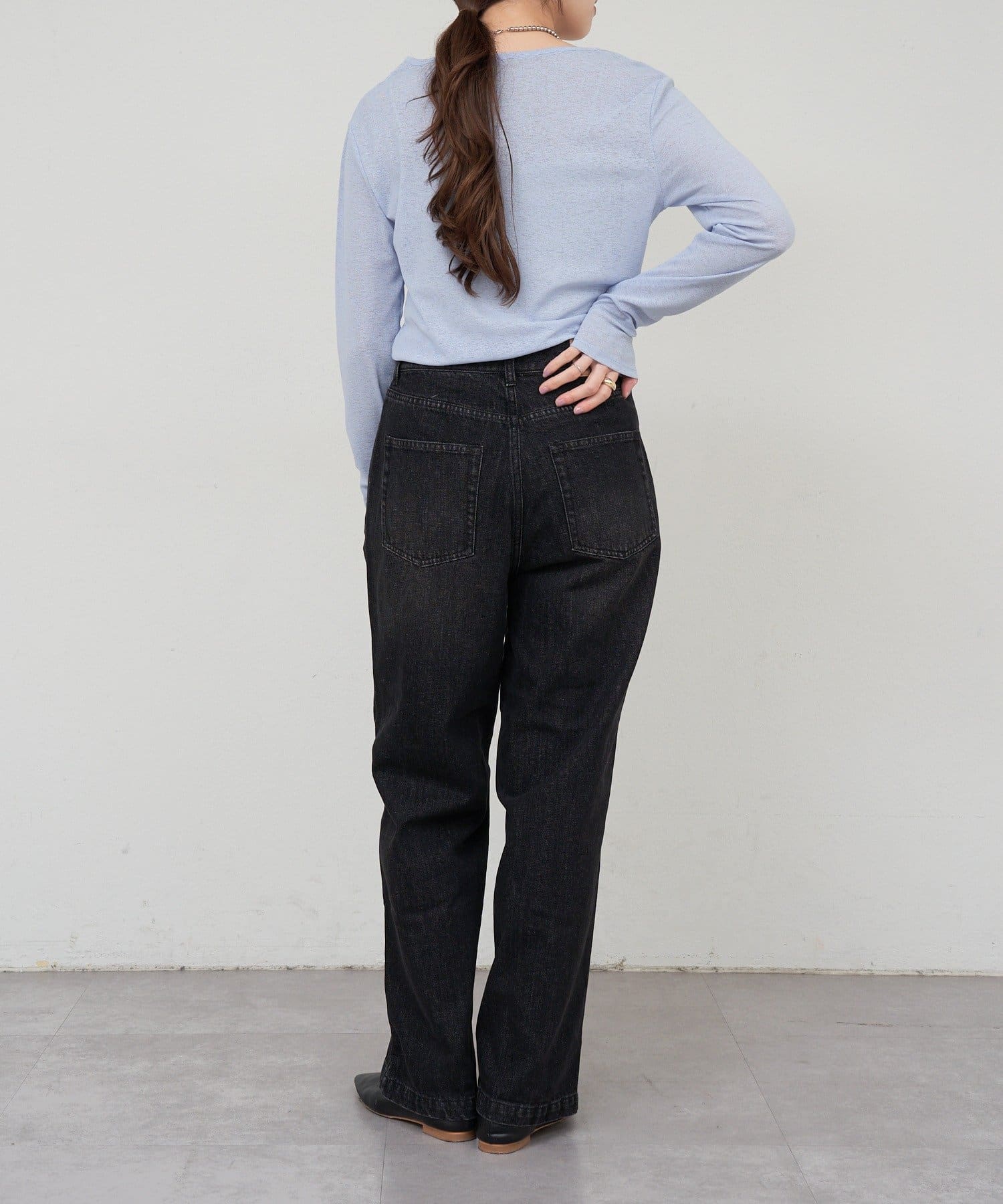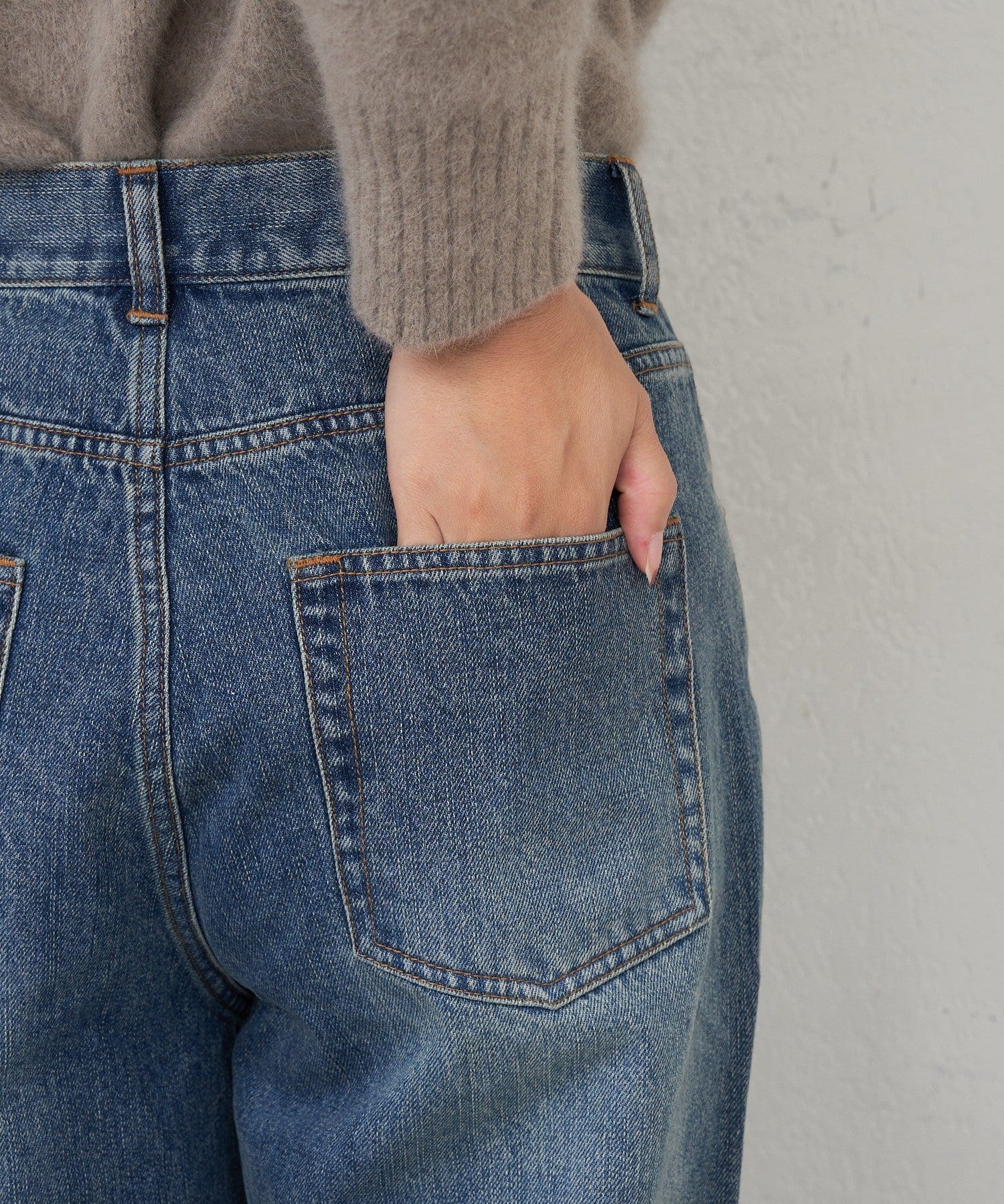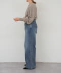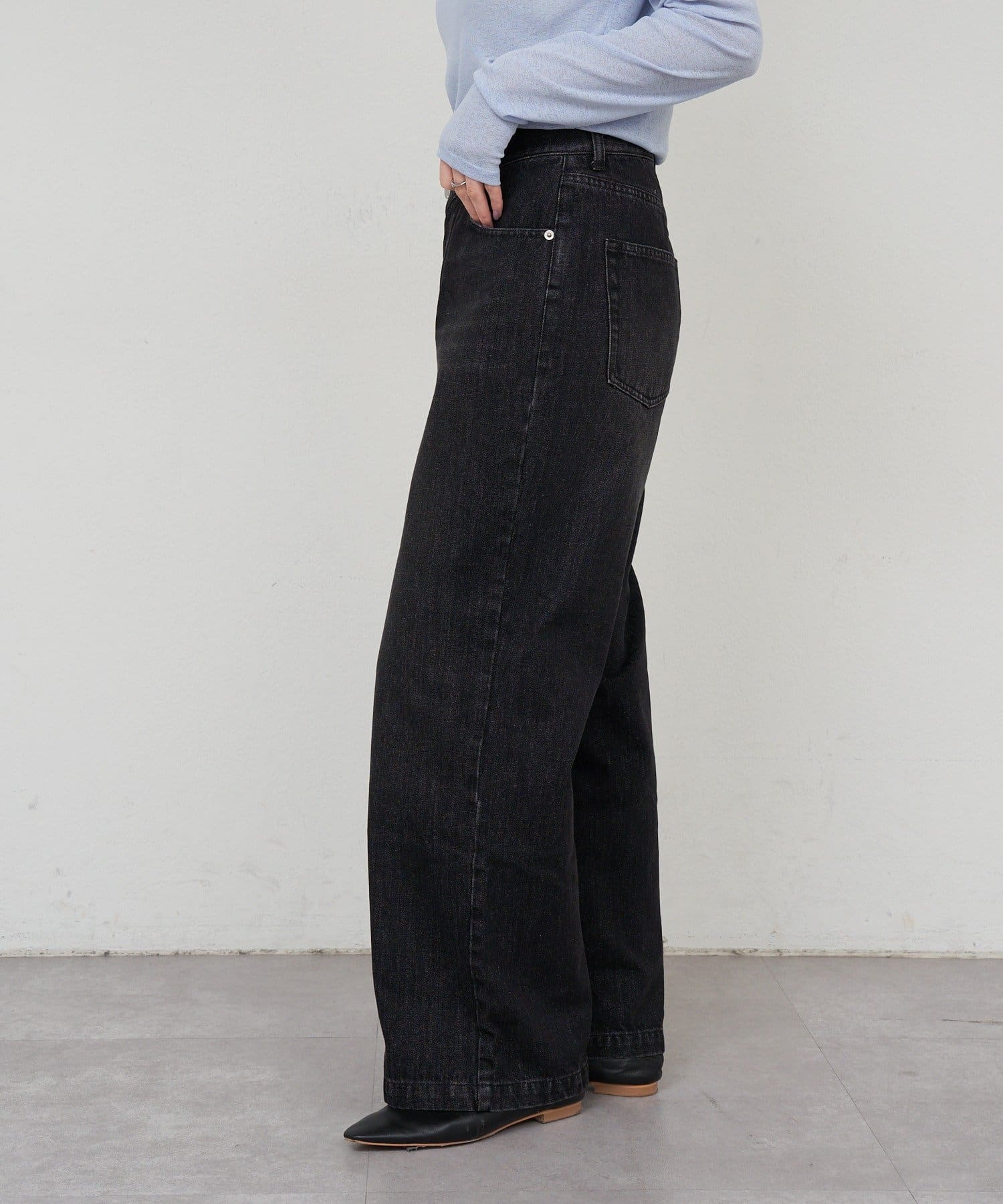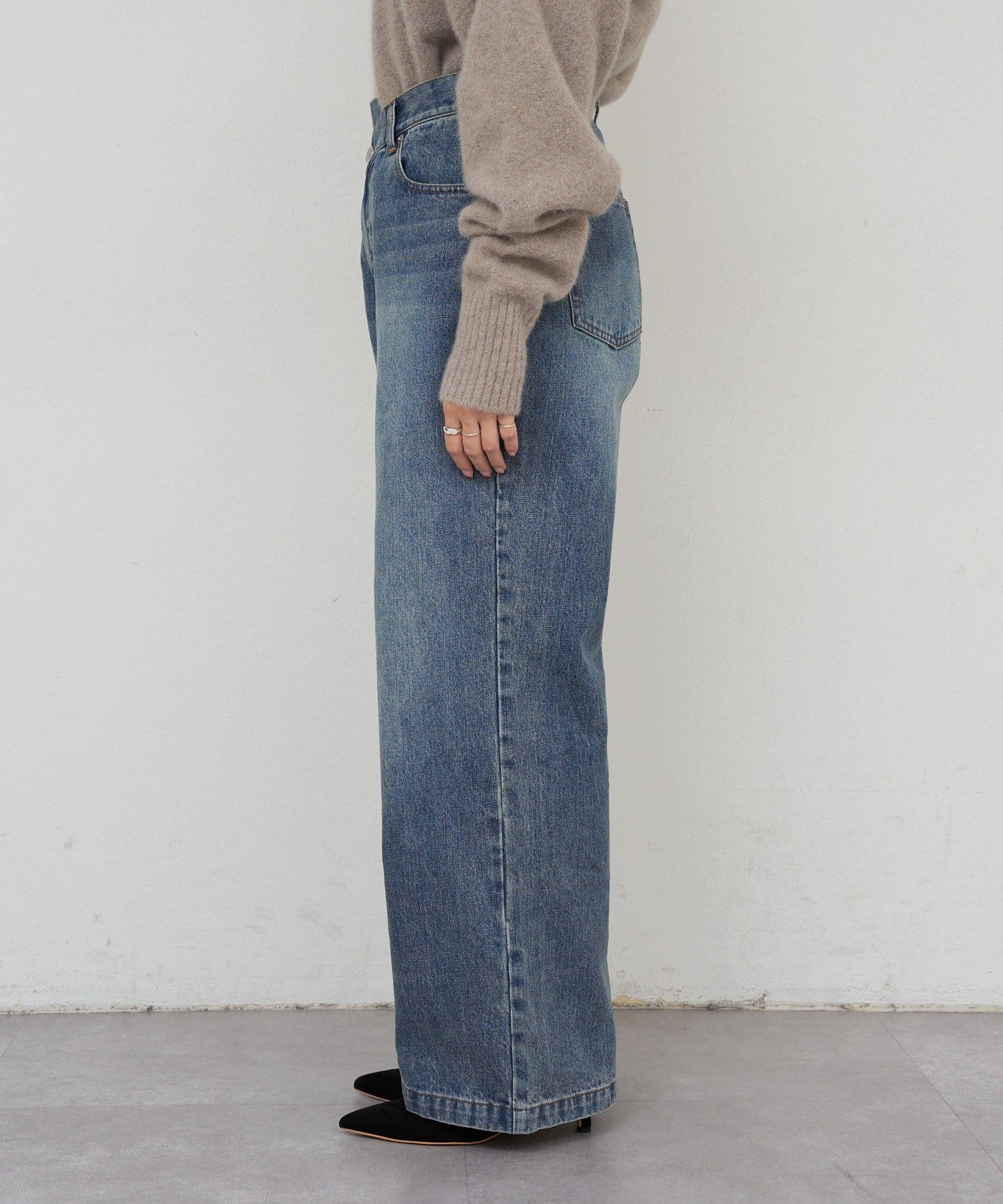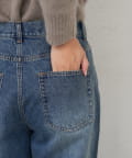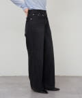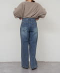 ウエストのアシンメトリーデザインが特徴のデニムパンツ。