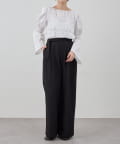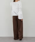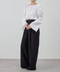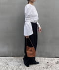 ・張りのある素材が体のラインをさりげなくカバーしつつ、立体的なシルエットを生み出します。