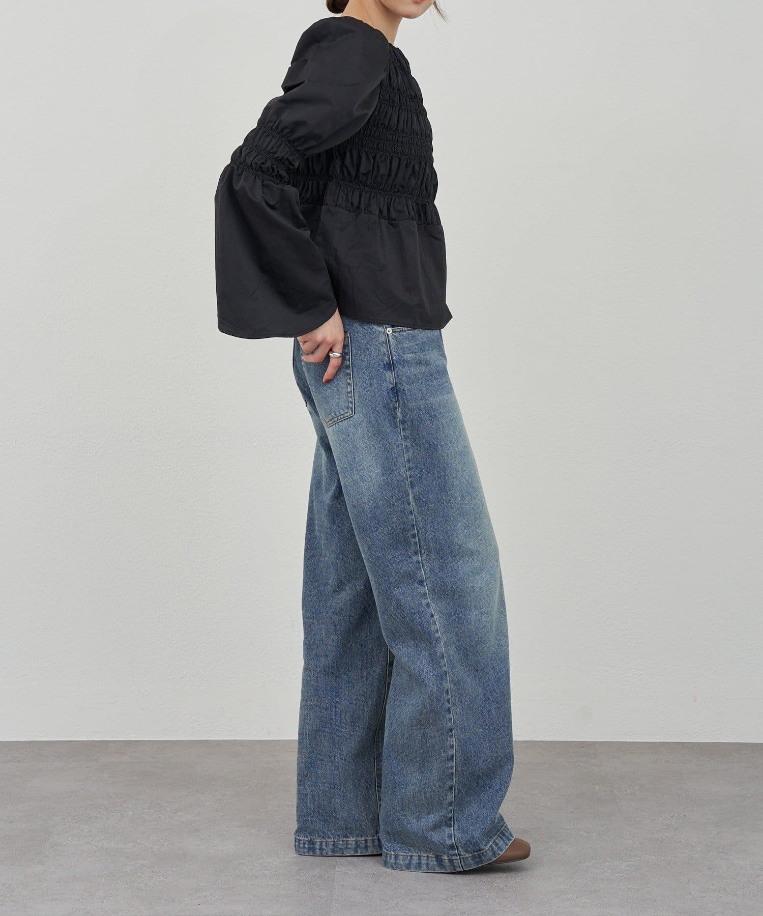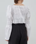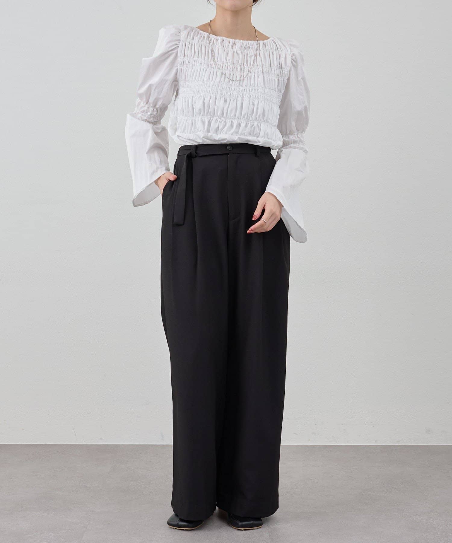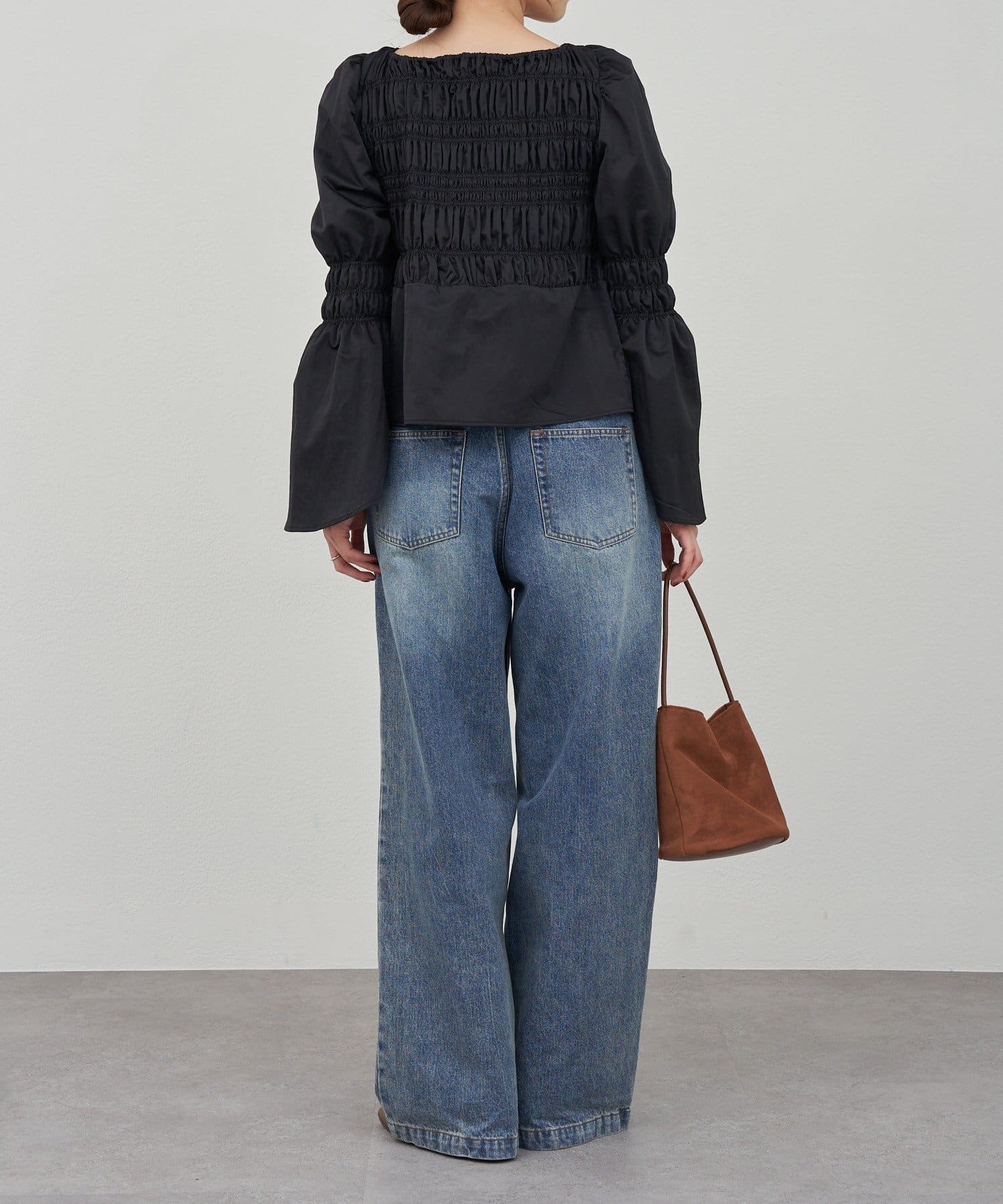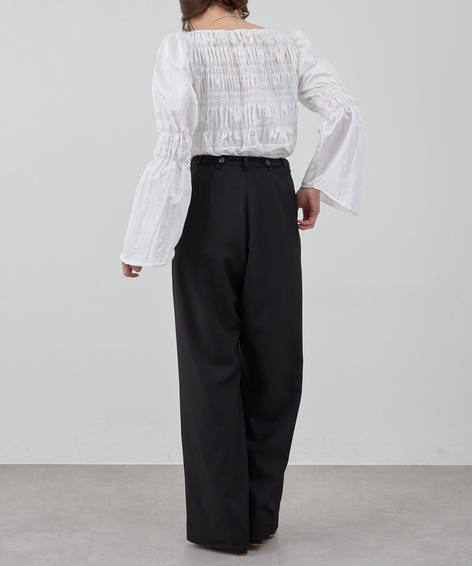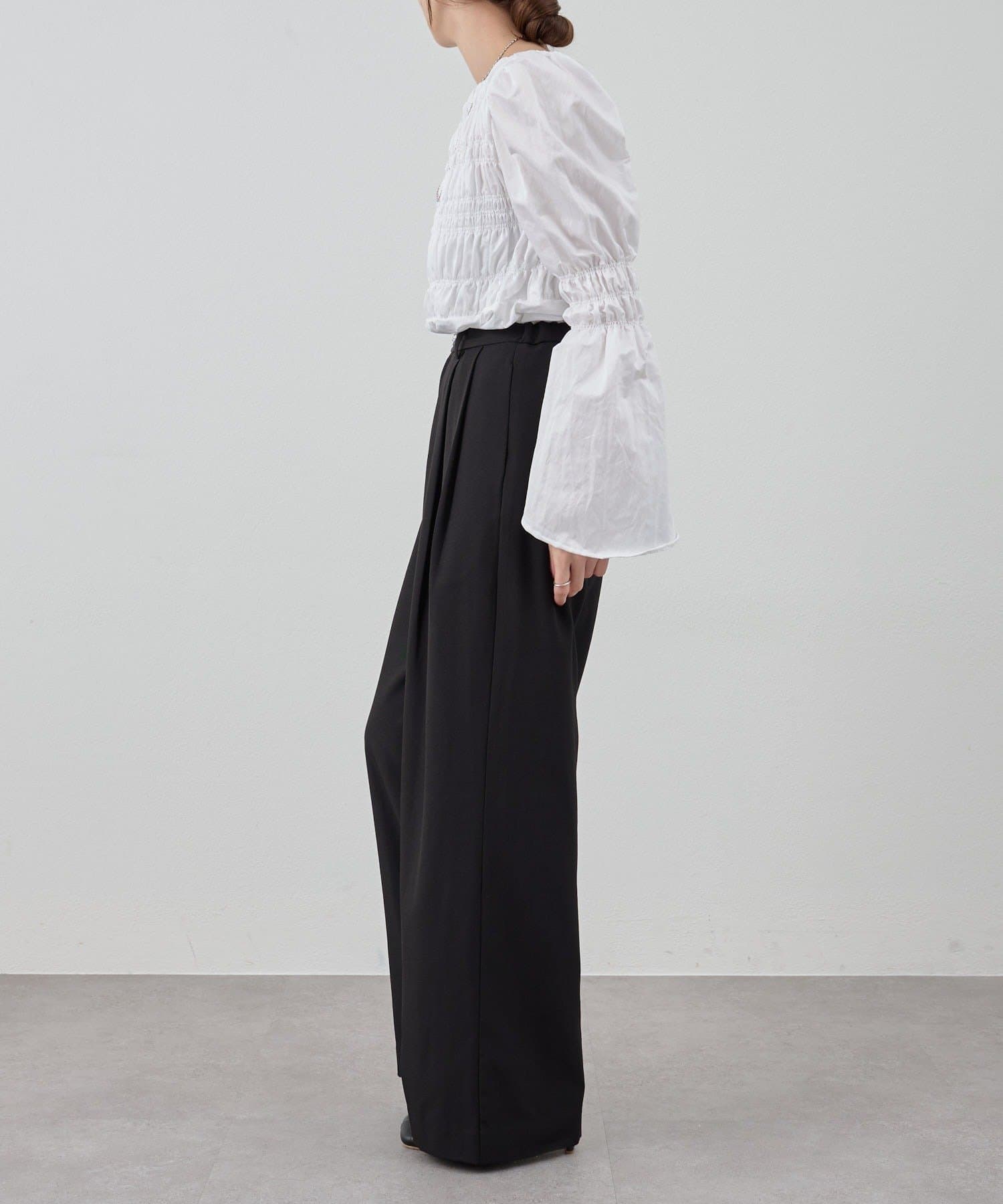 ・1枚でコーデが決まり、胸元に施されたシャーリングがトレンド感のあるデザインのアイテム。