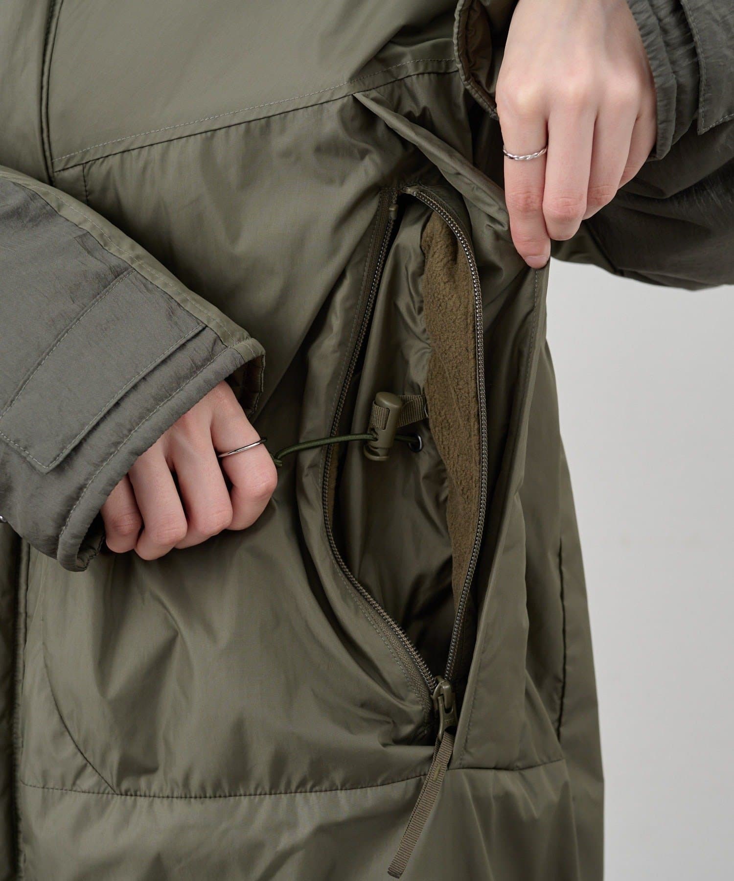 裾のドローコードを調節してシルエットの変化も楽しめます。