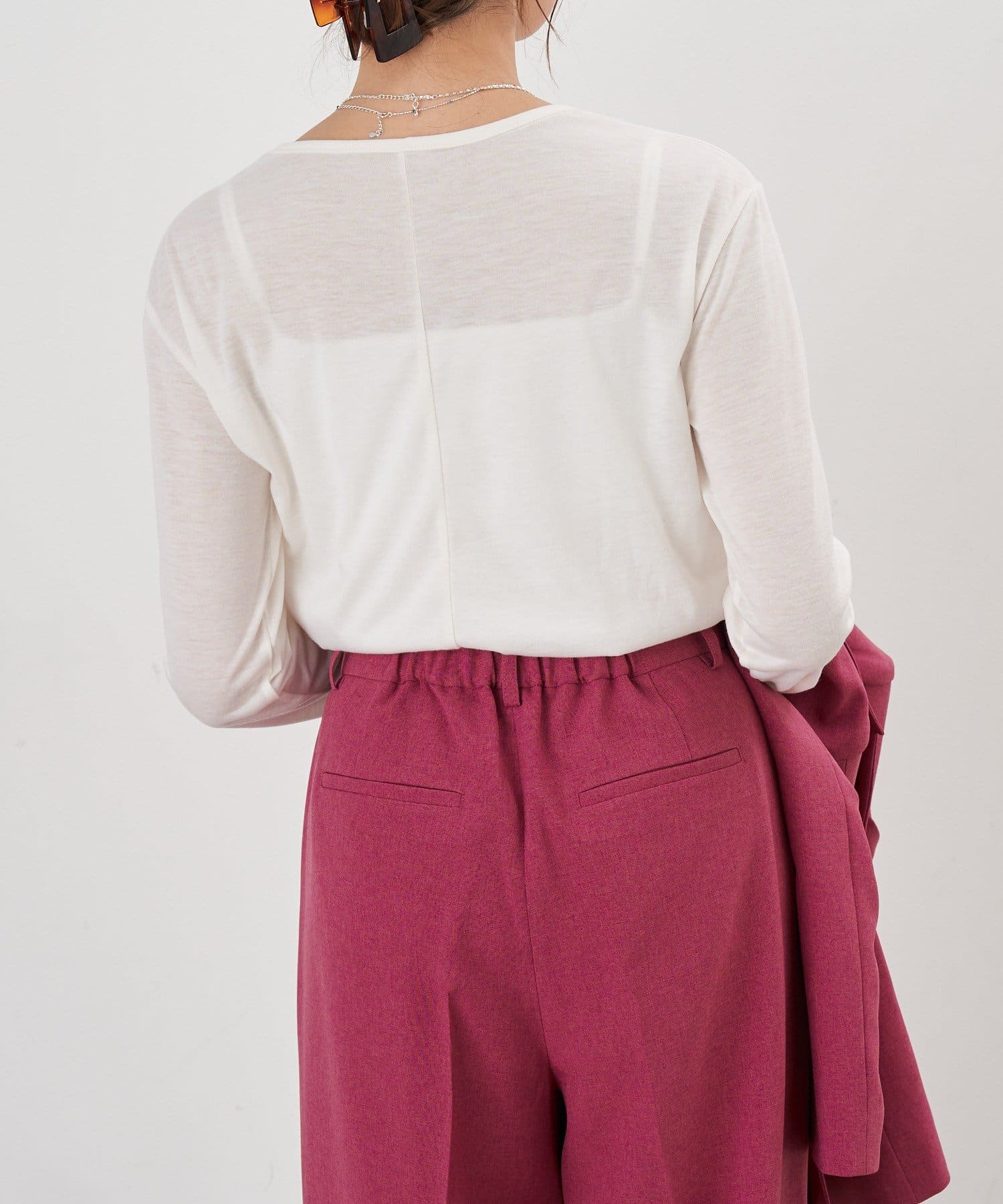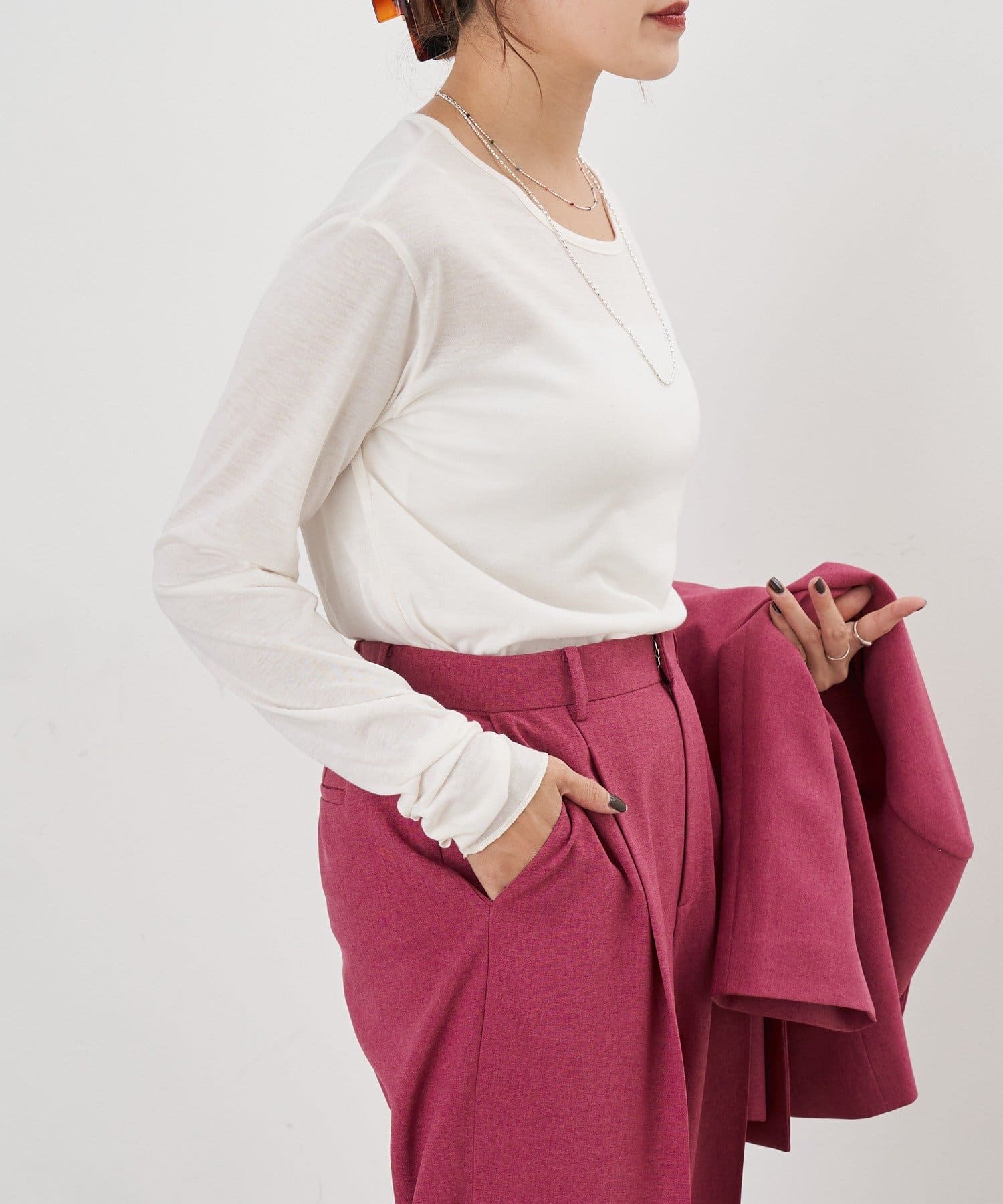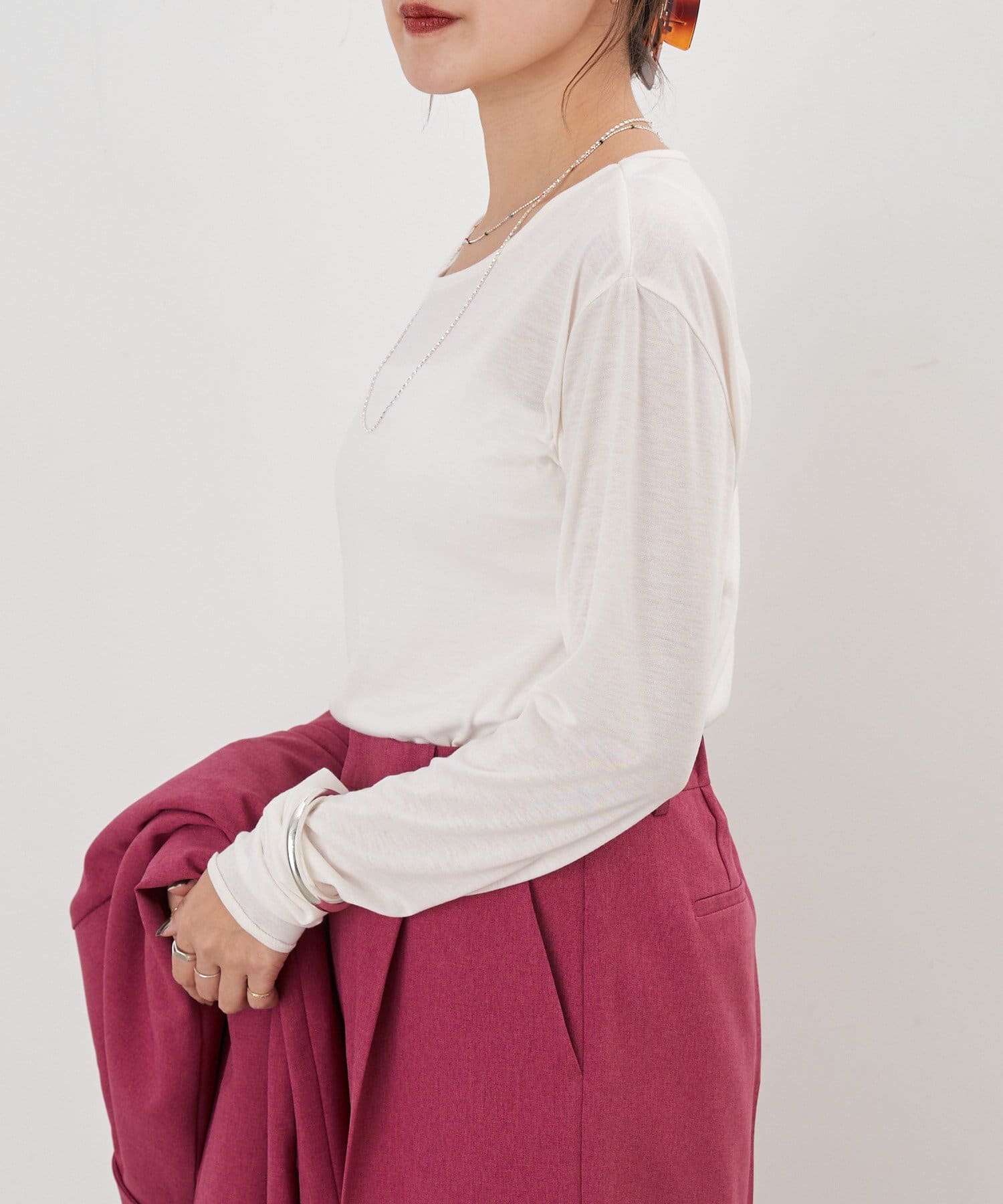 一枚で楽しむのはもちろん、ニットやジャケットなどのインナーとしても重宝する大人のシアーロンTです。