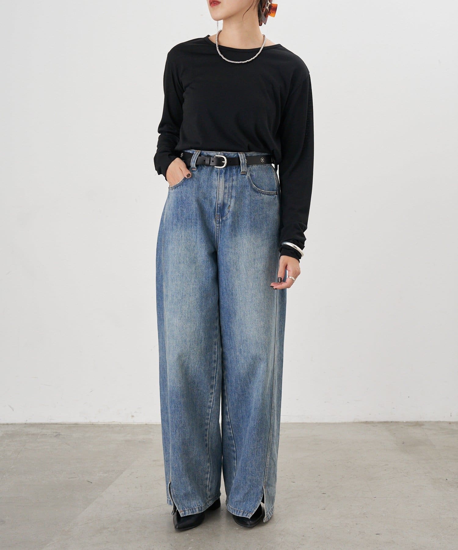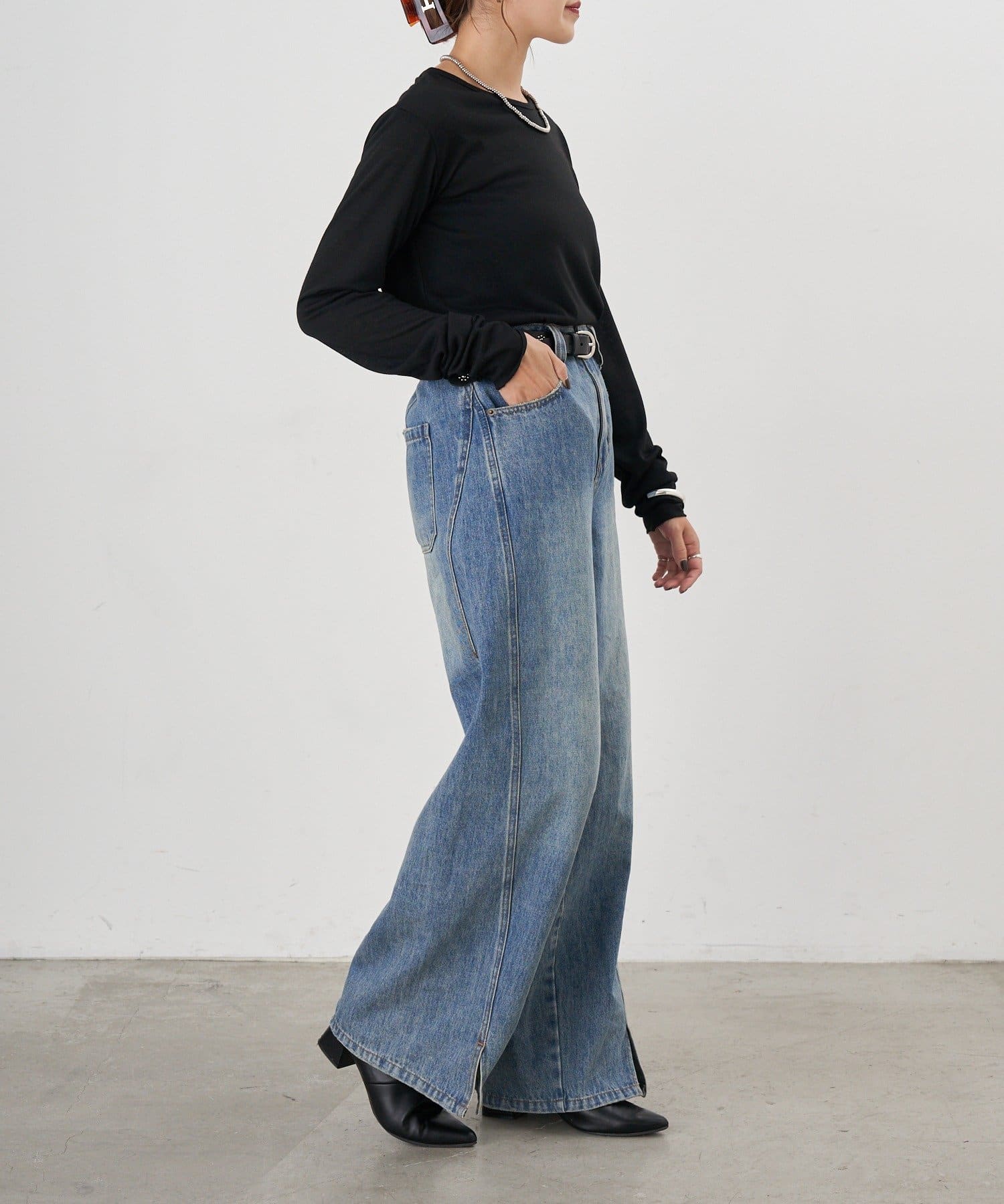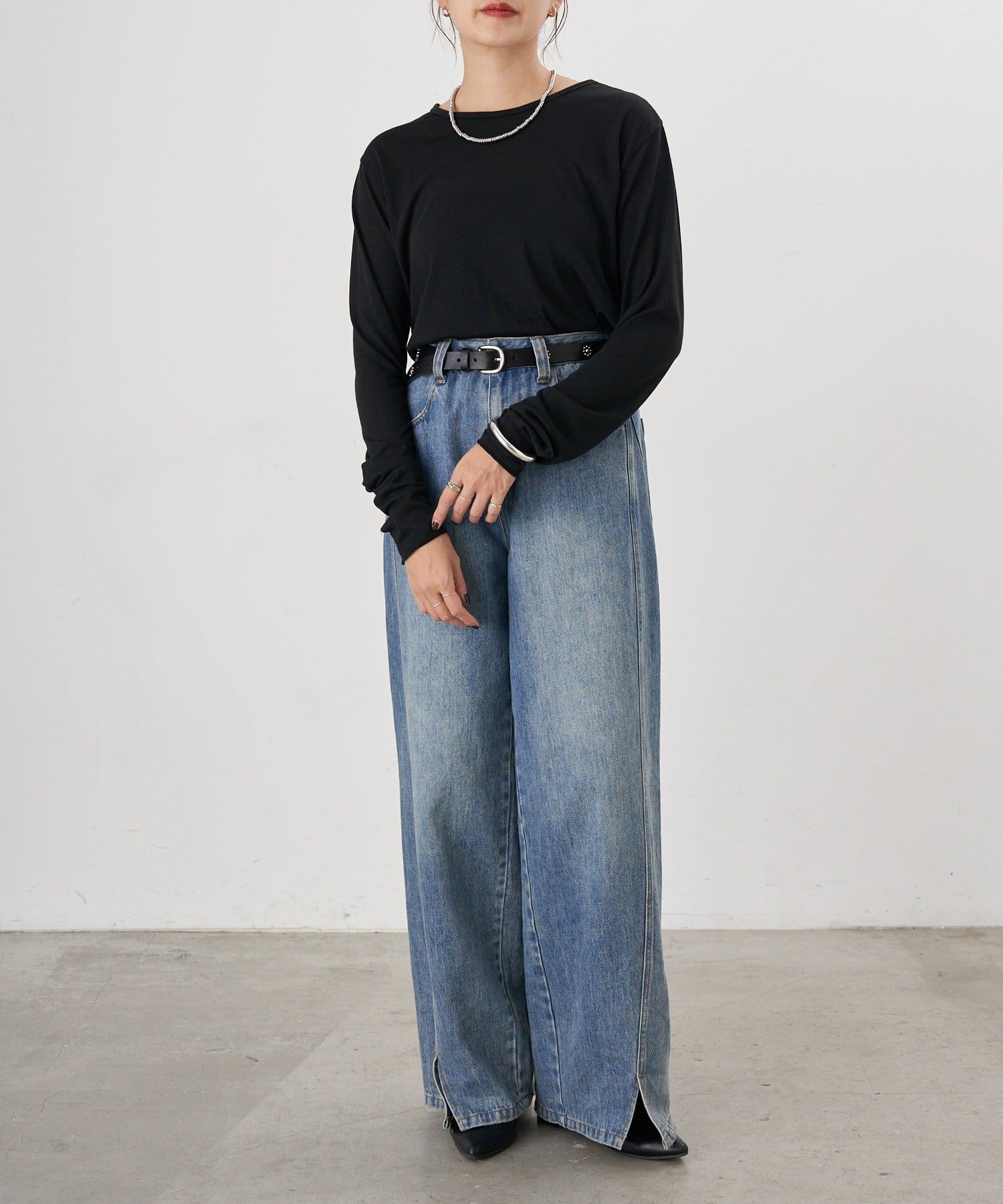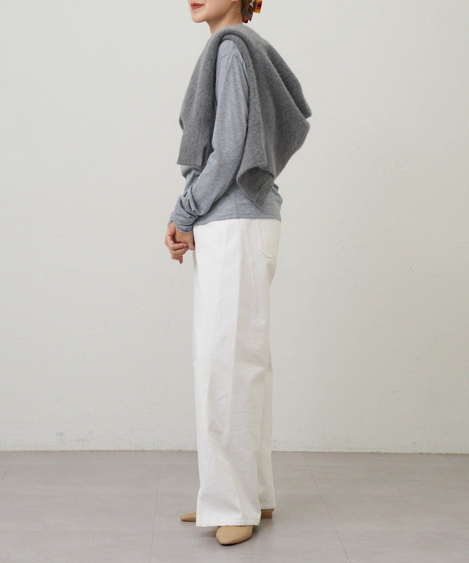 少し長めの袖は、たゆませたりアウターの袖から覗かせたりすることもできてスタイリングの幅が広がります。