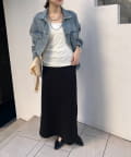 柔らかなポンチ素材を使用したIラインロングスカート。