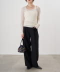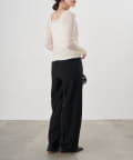 ・腰周りにタックを施すことで、脚まわりに自然なボリューム感と落ち感が生まれ、脚長効果抜群なシルエットを演出します。