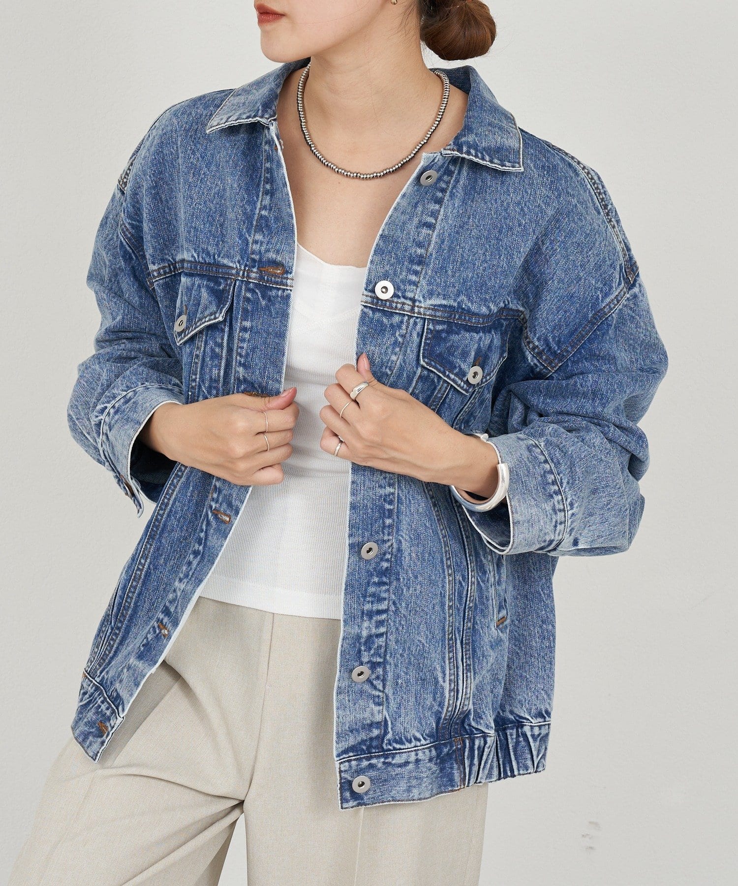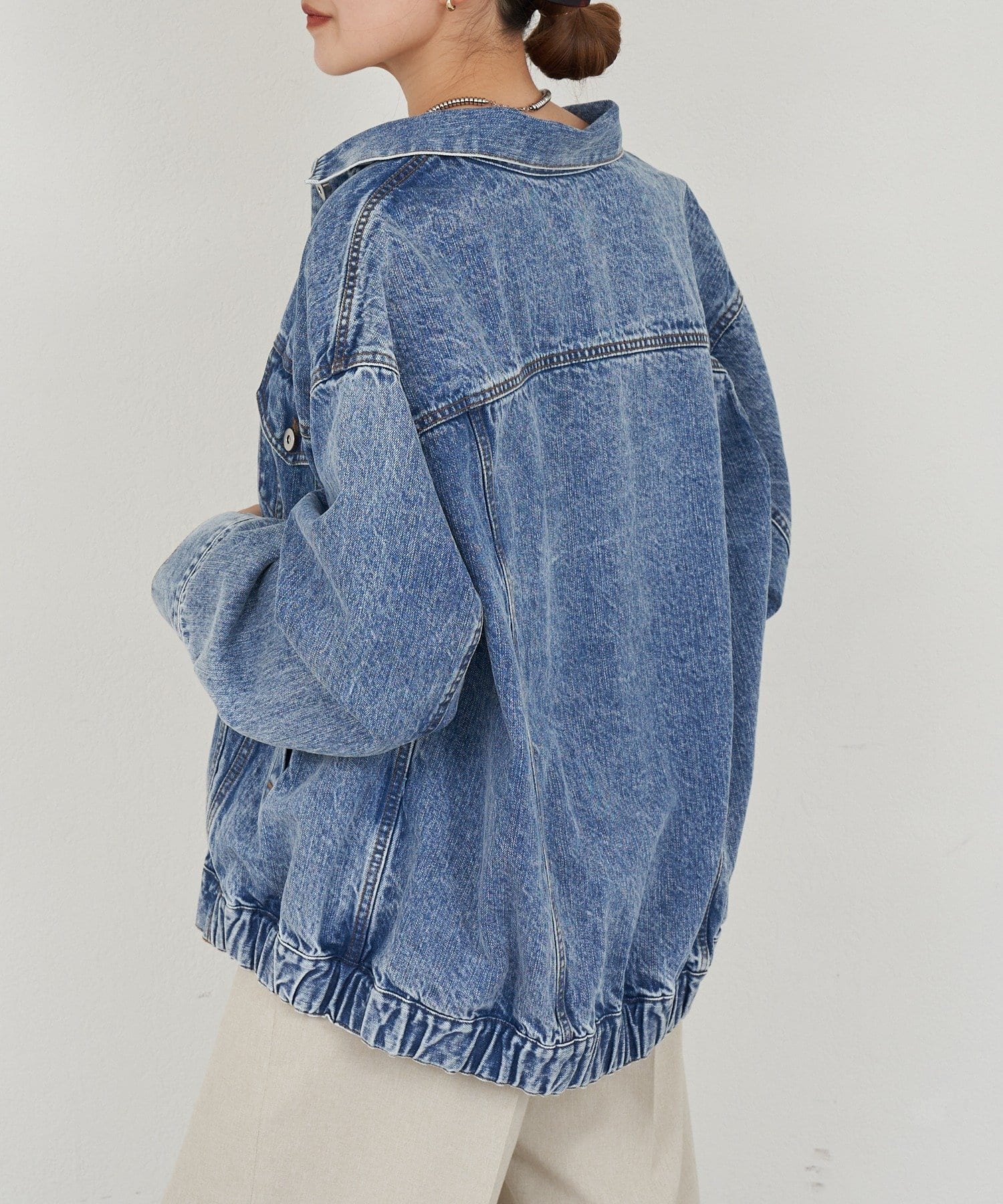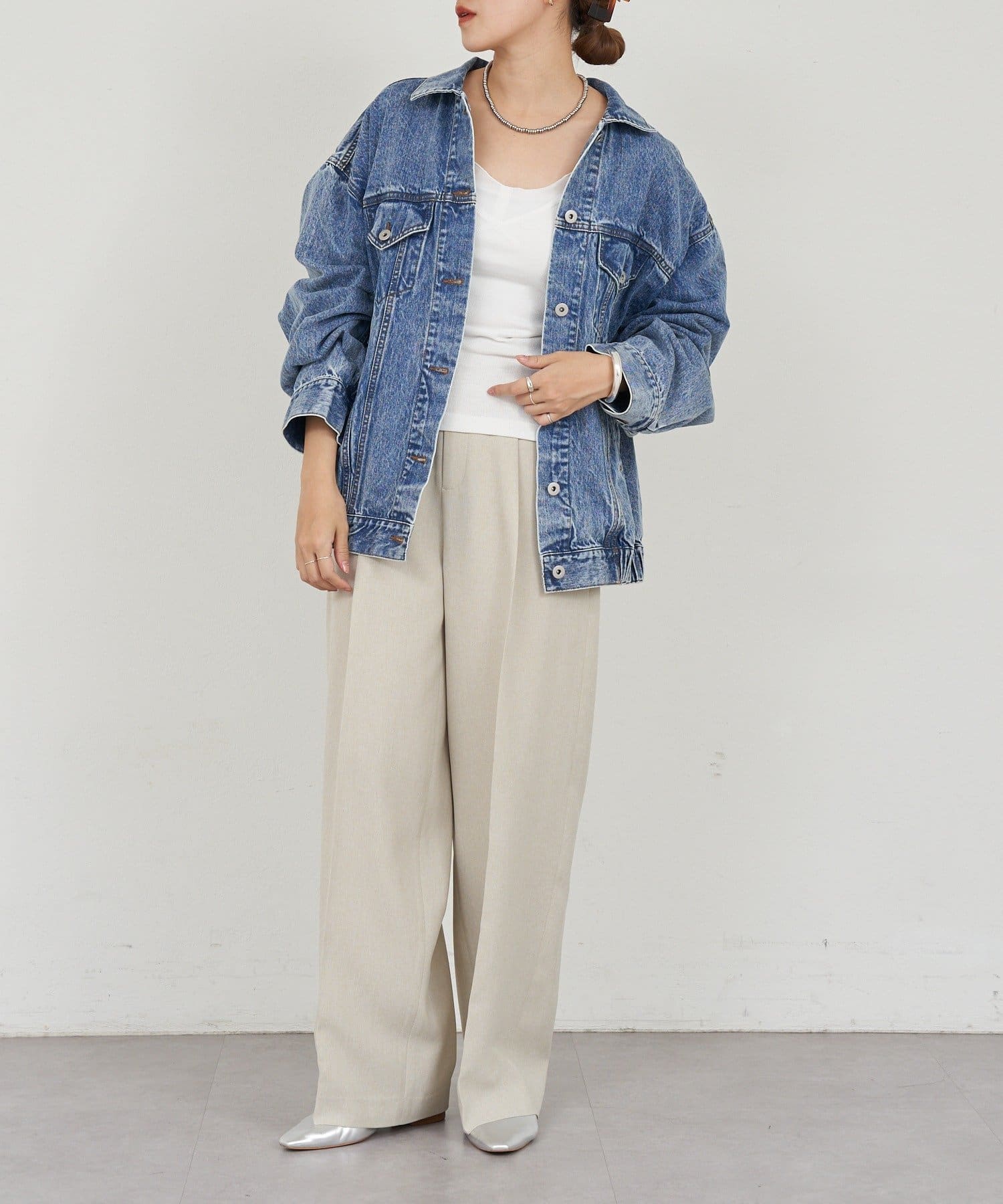 ゆったりと抜け感のあるオーバーサイズのデニムジャケット。
