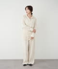 同素材のパンツで、セットアップコーデに。