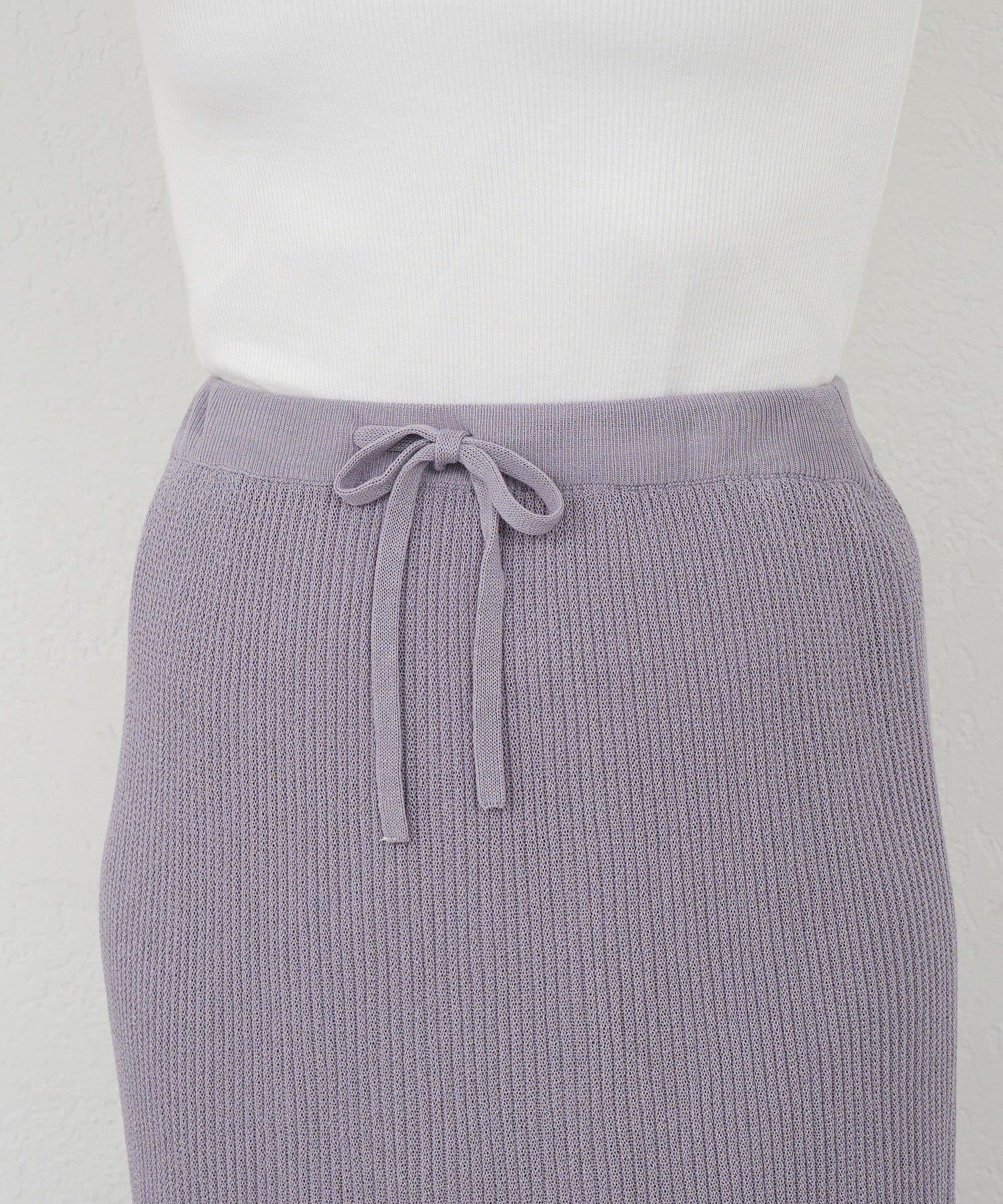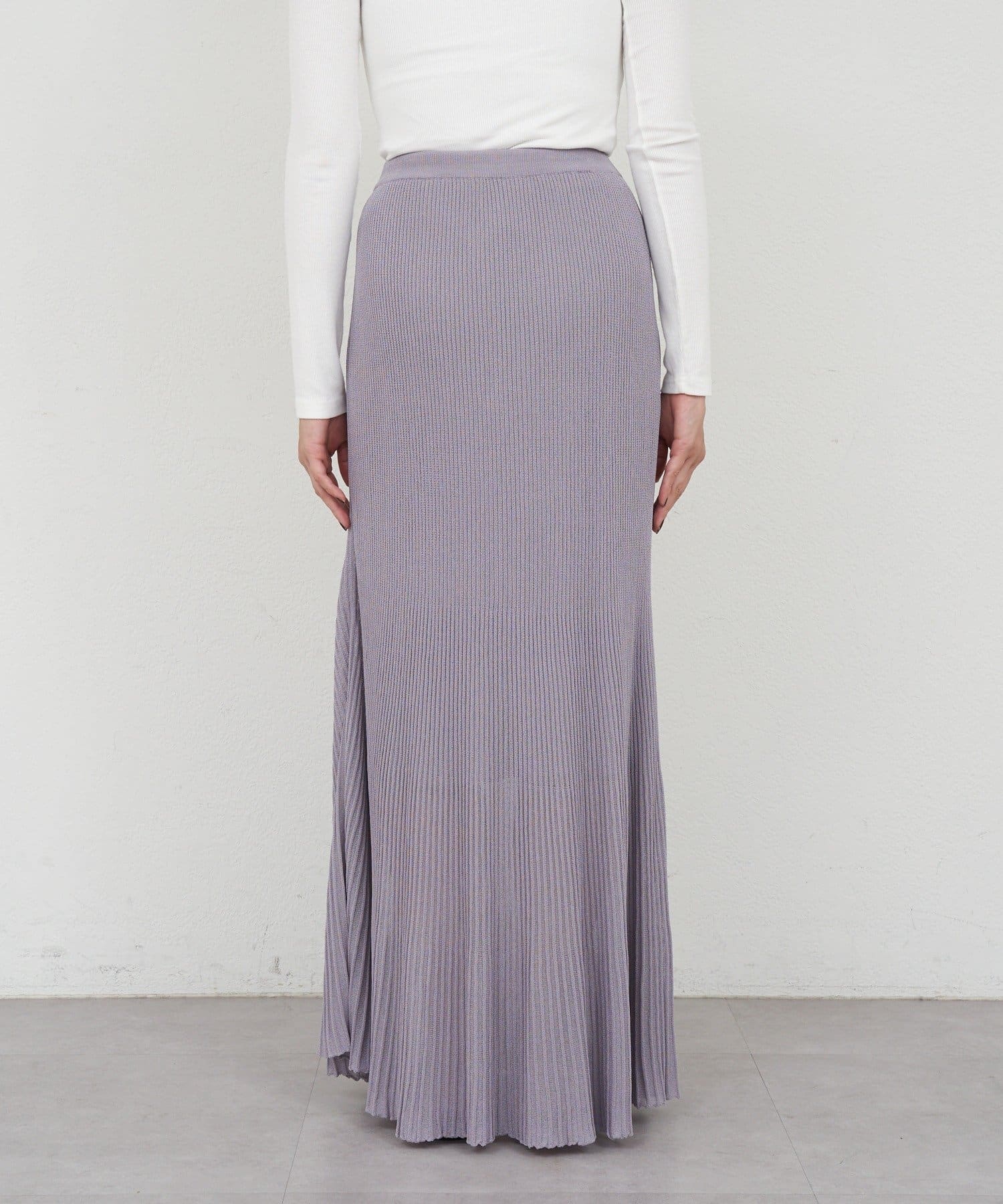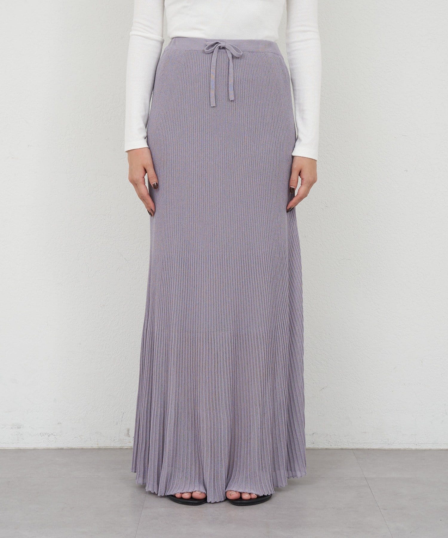 夏のTシャツスタイルやカジュアルなトップスと合わせて着たい、夏用のプリーツシアーニットスカート。軽やかな透け感のあるシアー編地にプリーツ加工をかけており、動くたびにゆらゆらと裾回りが広がる、気分の上がる1着です。中には共糸の編地で膝上丈の裏地を付けているので、腰回りは透けずに安心感のあるデザインです。