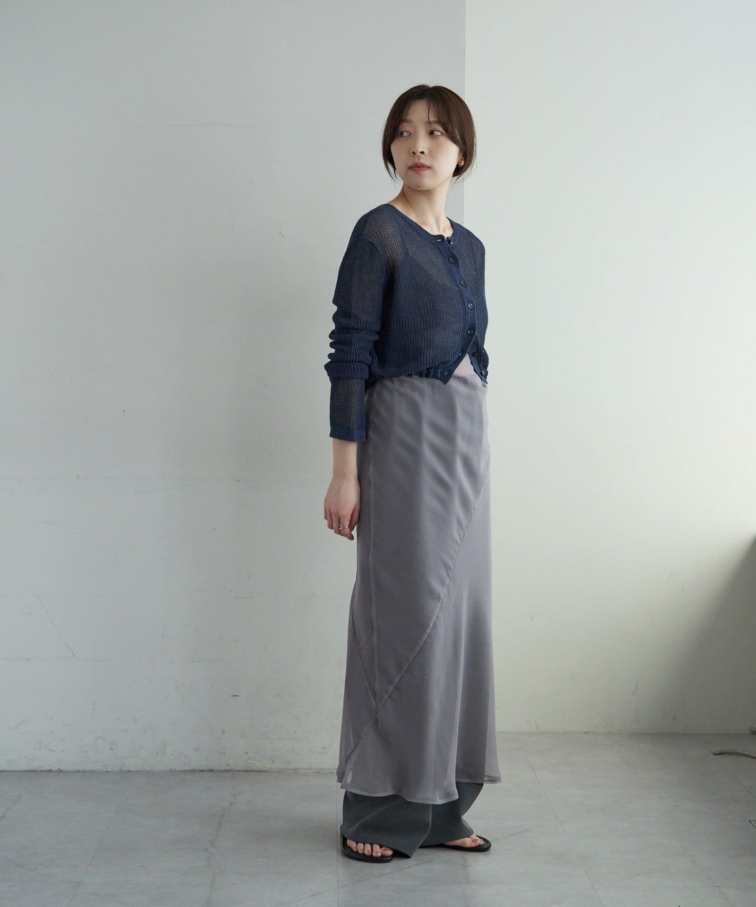 バックデザインペーパーメッシュカーディガン