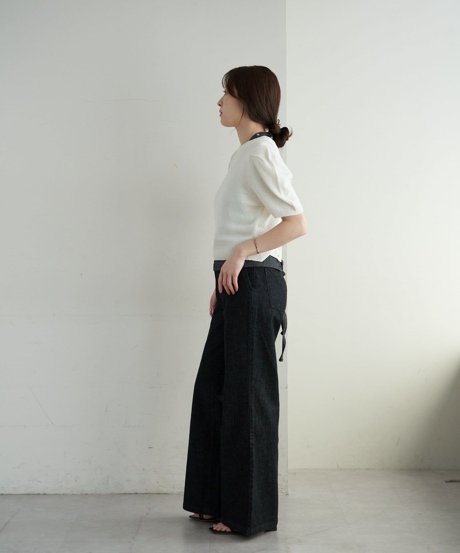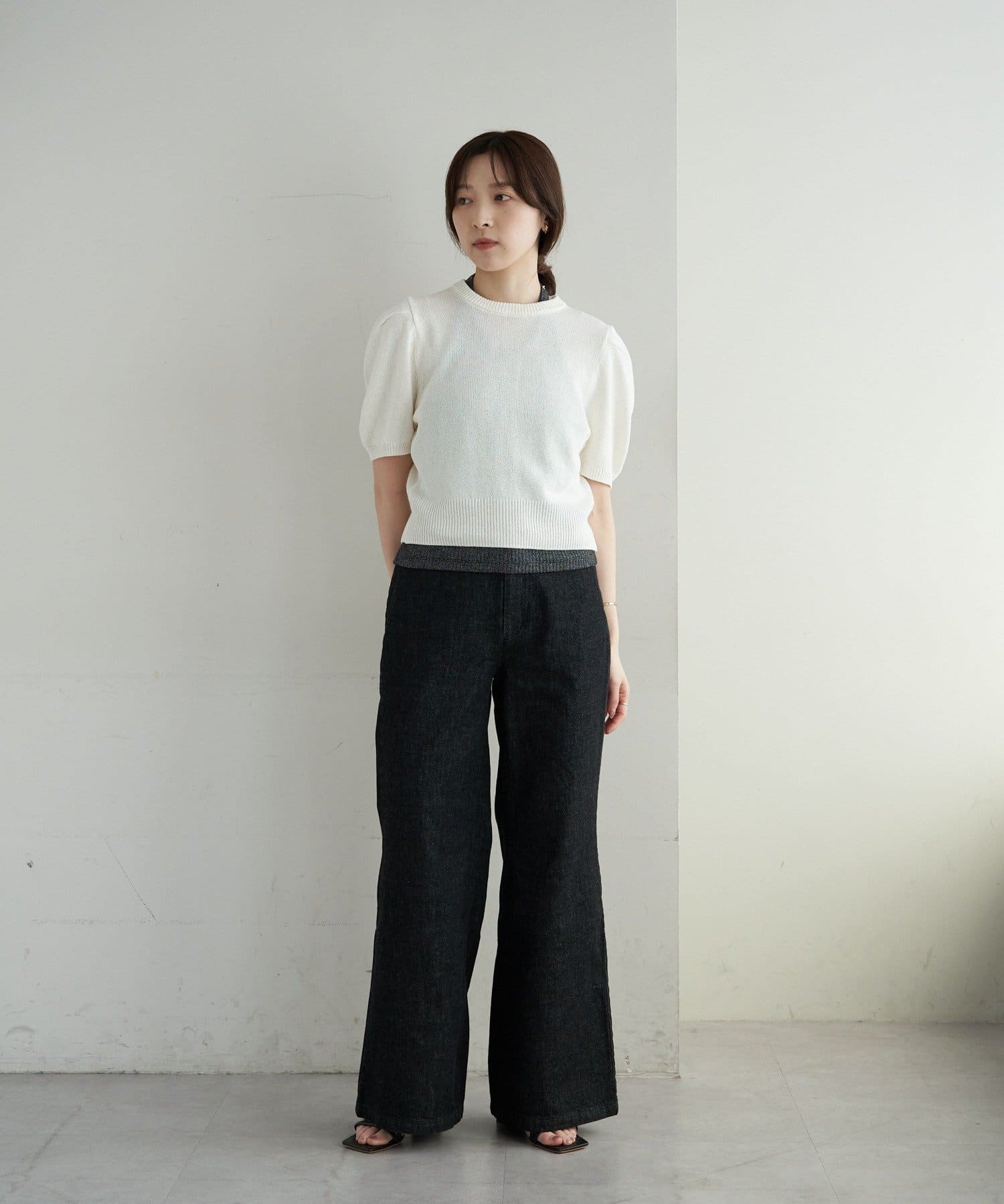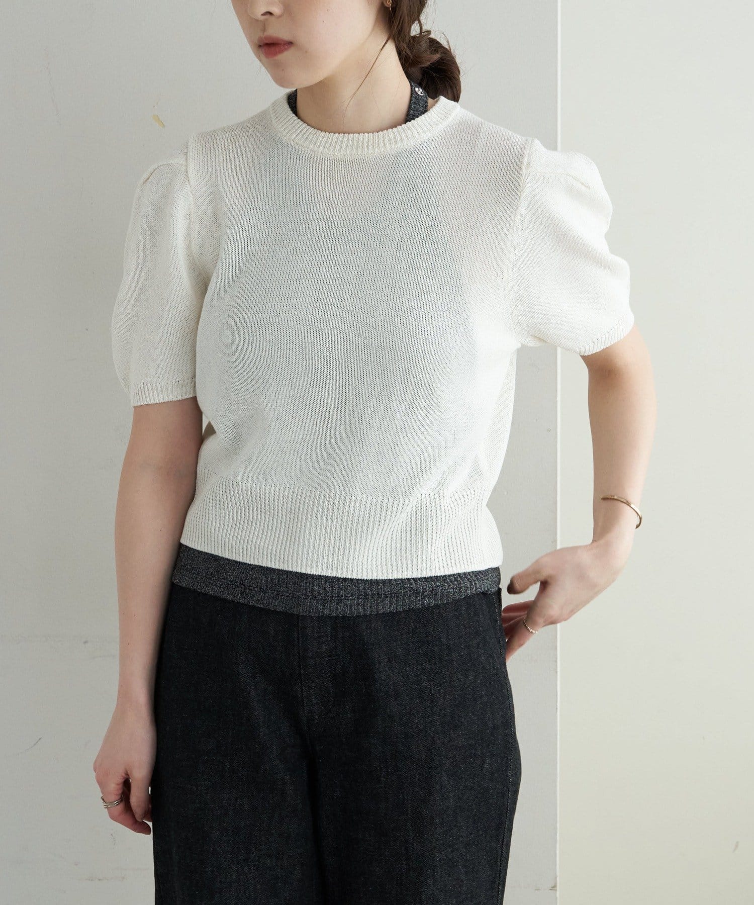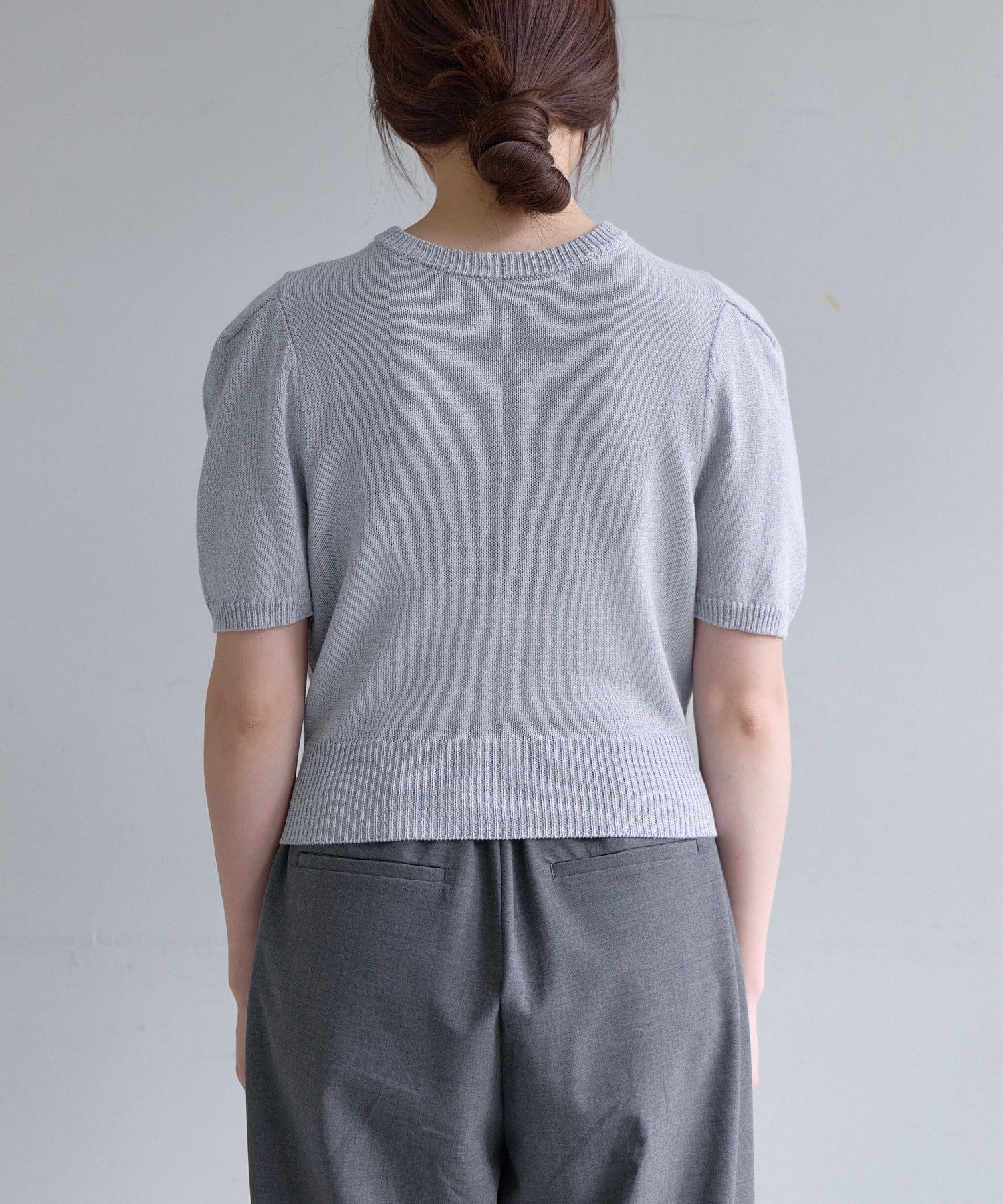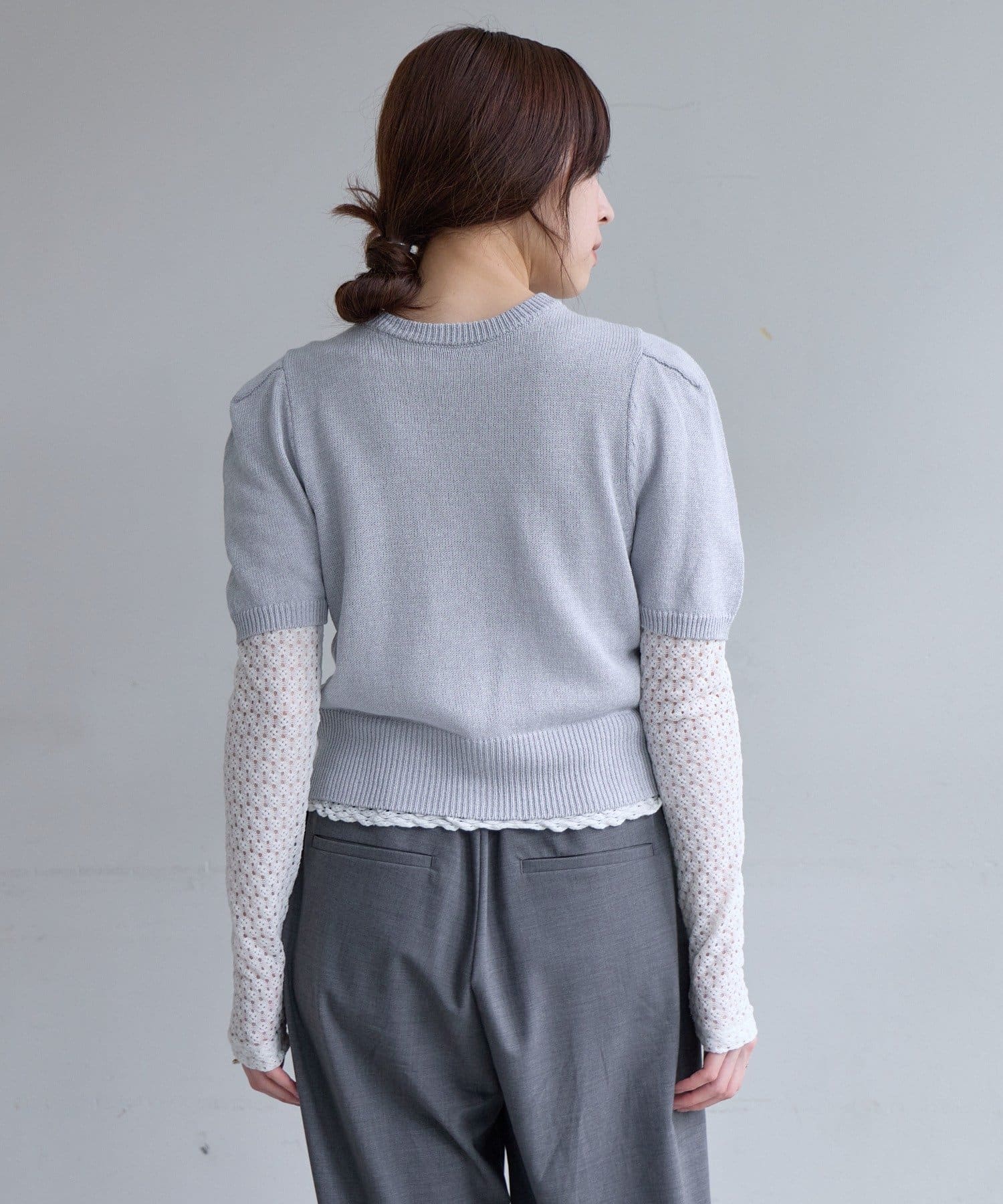 ペーパーヤーン半袖パフニット