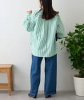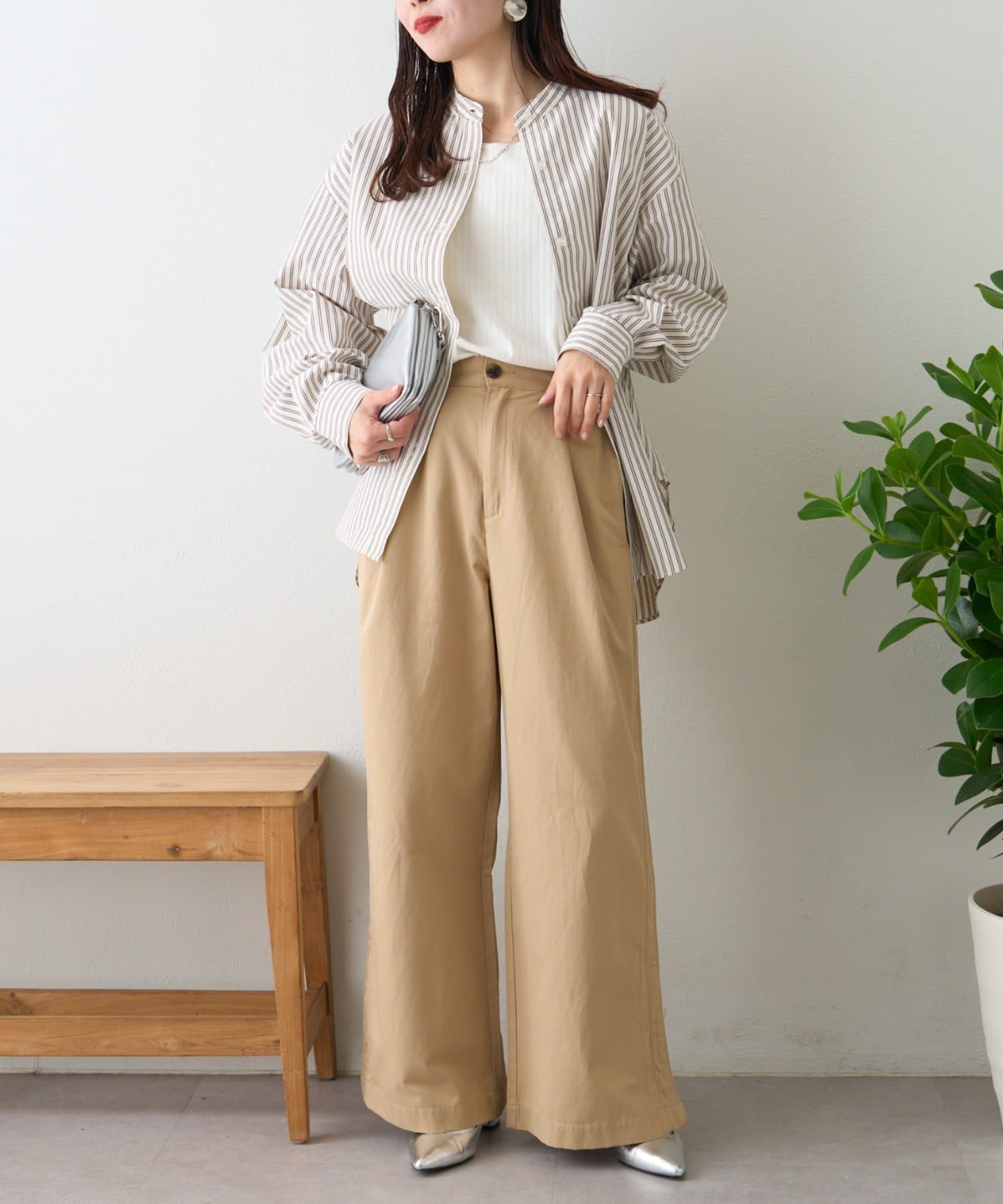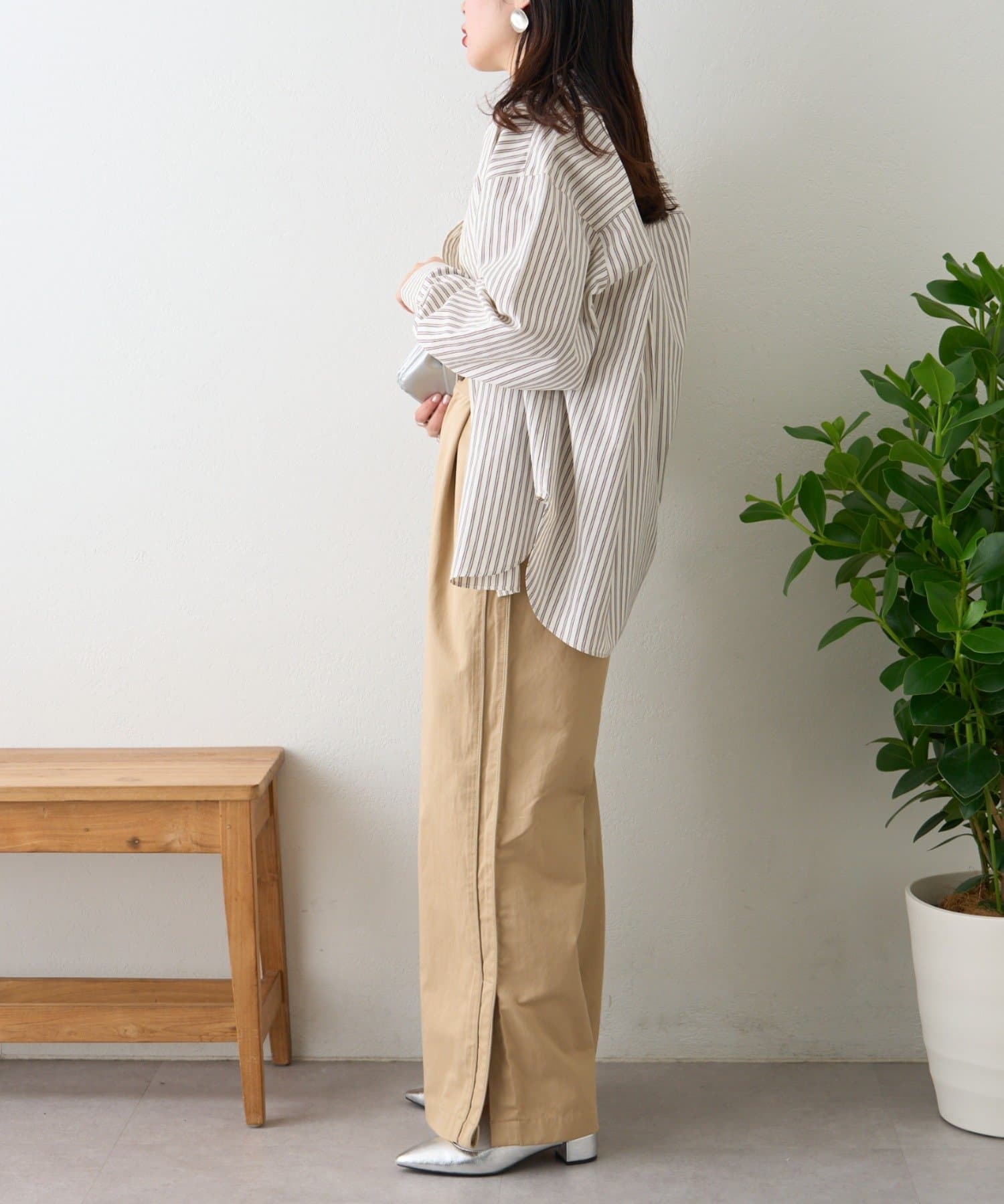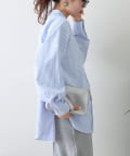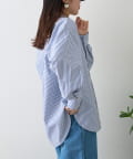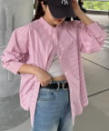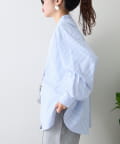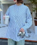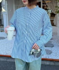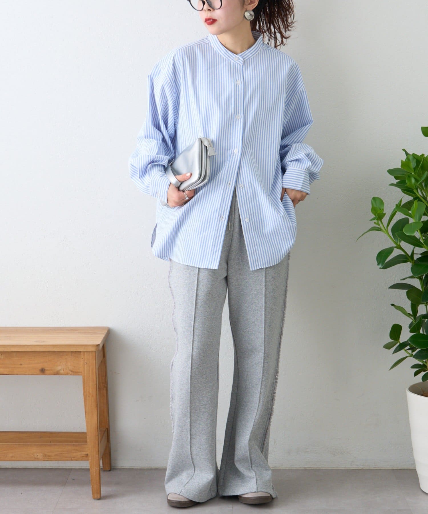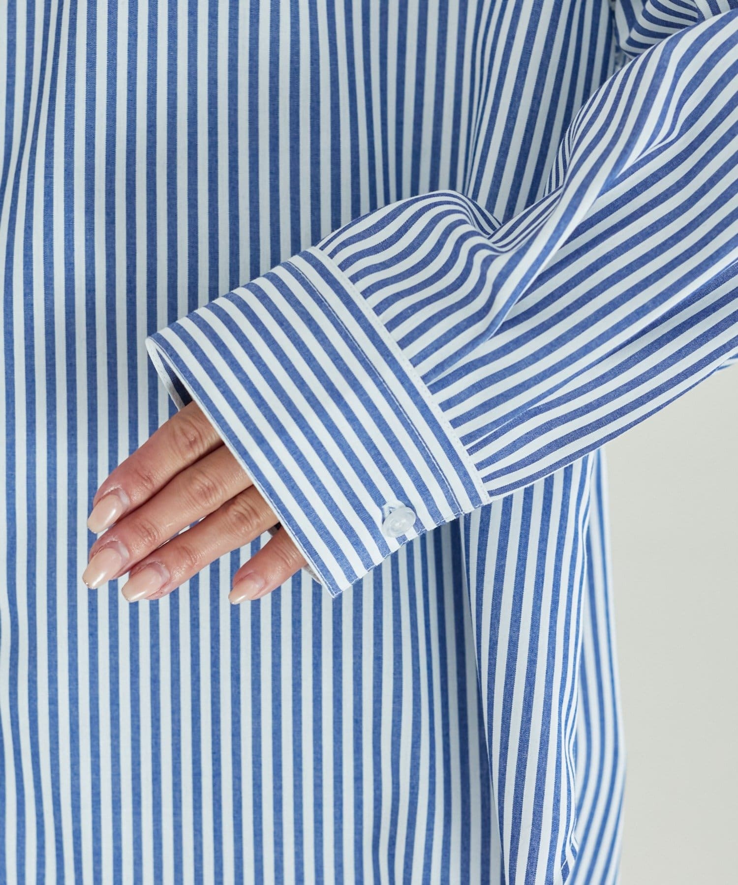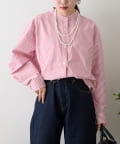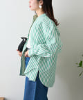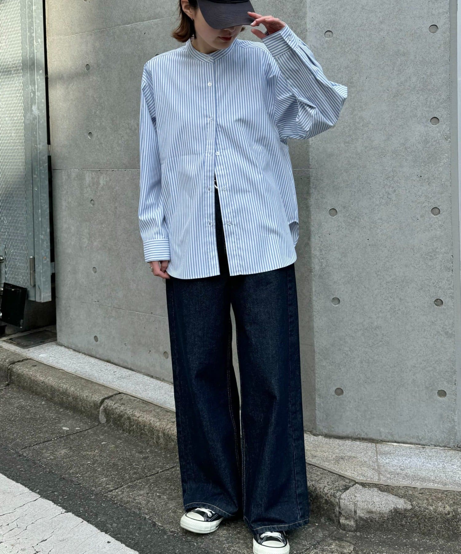 【日焼け対策・お手入れ簡単】ボリュームスリーブストライプバンドカラーシャツ