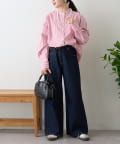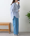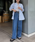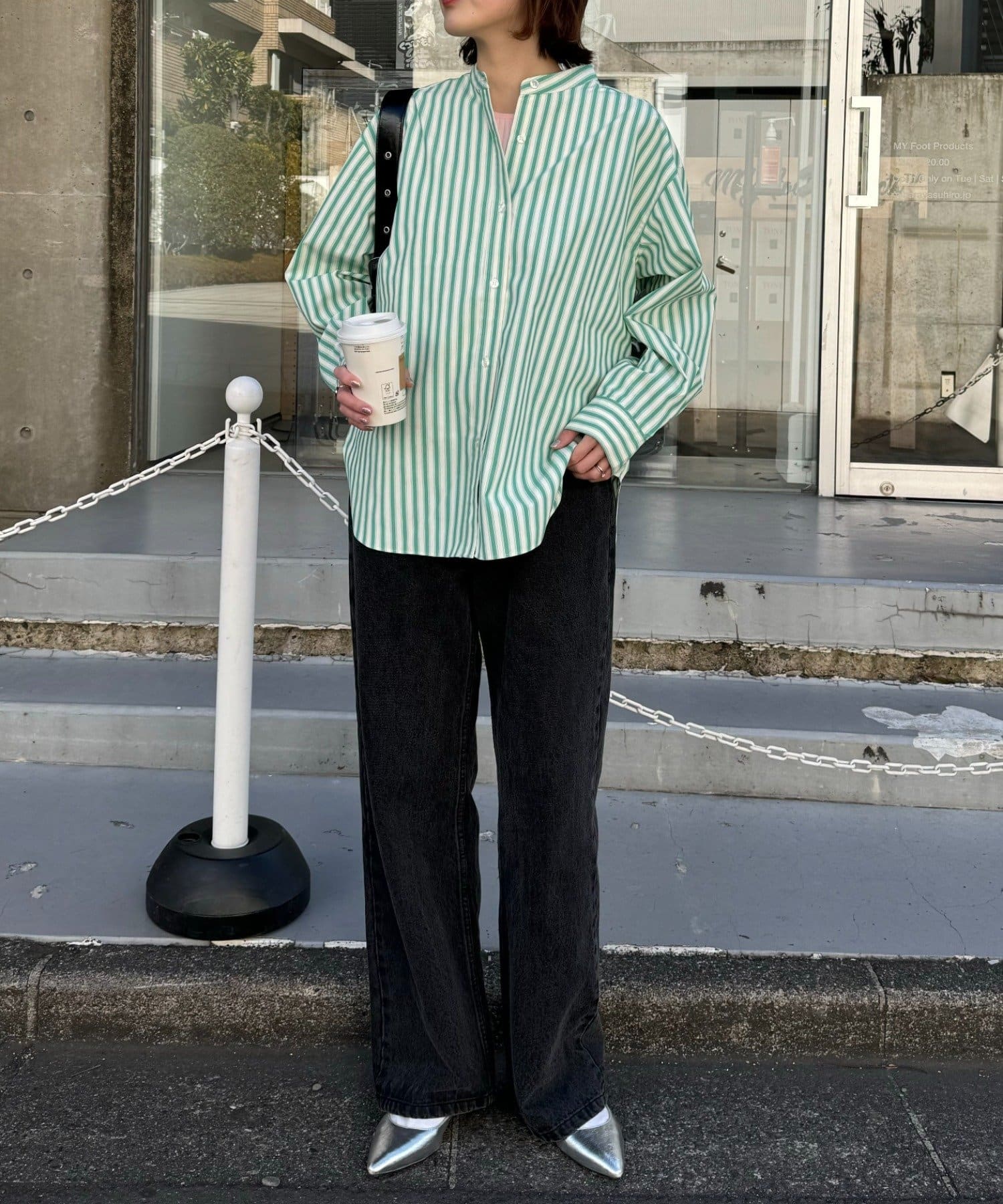 ボタンを閉めてトップスとして着用すればきちんと感のあるコーデに。