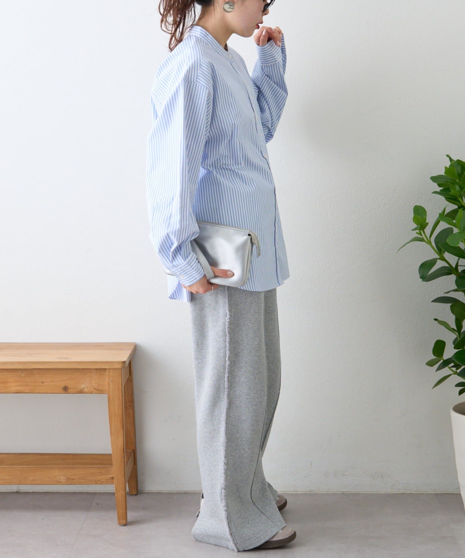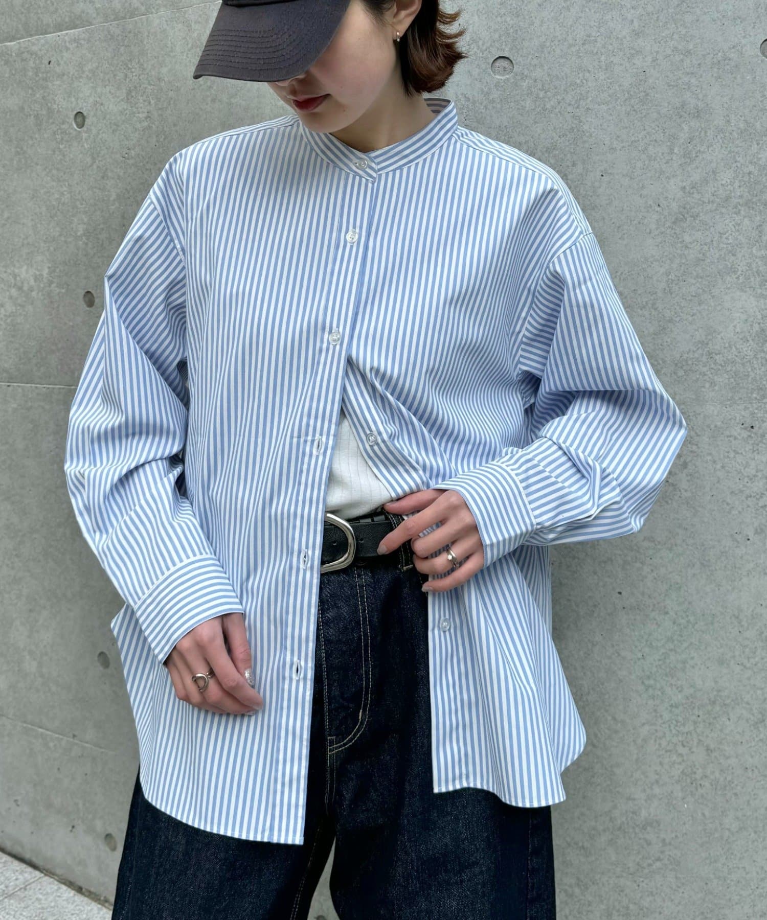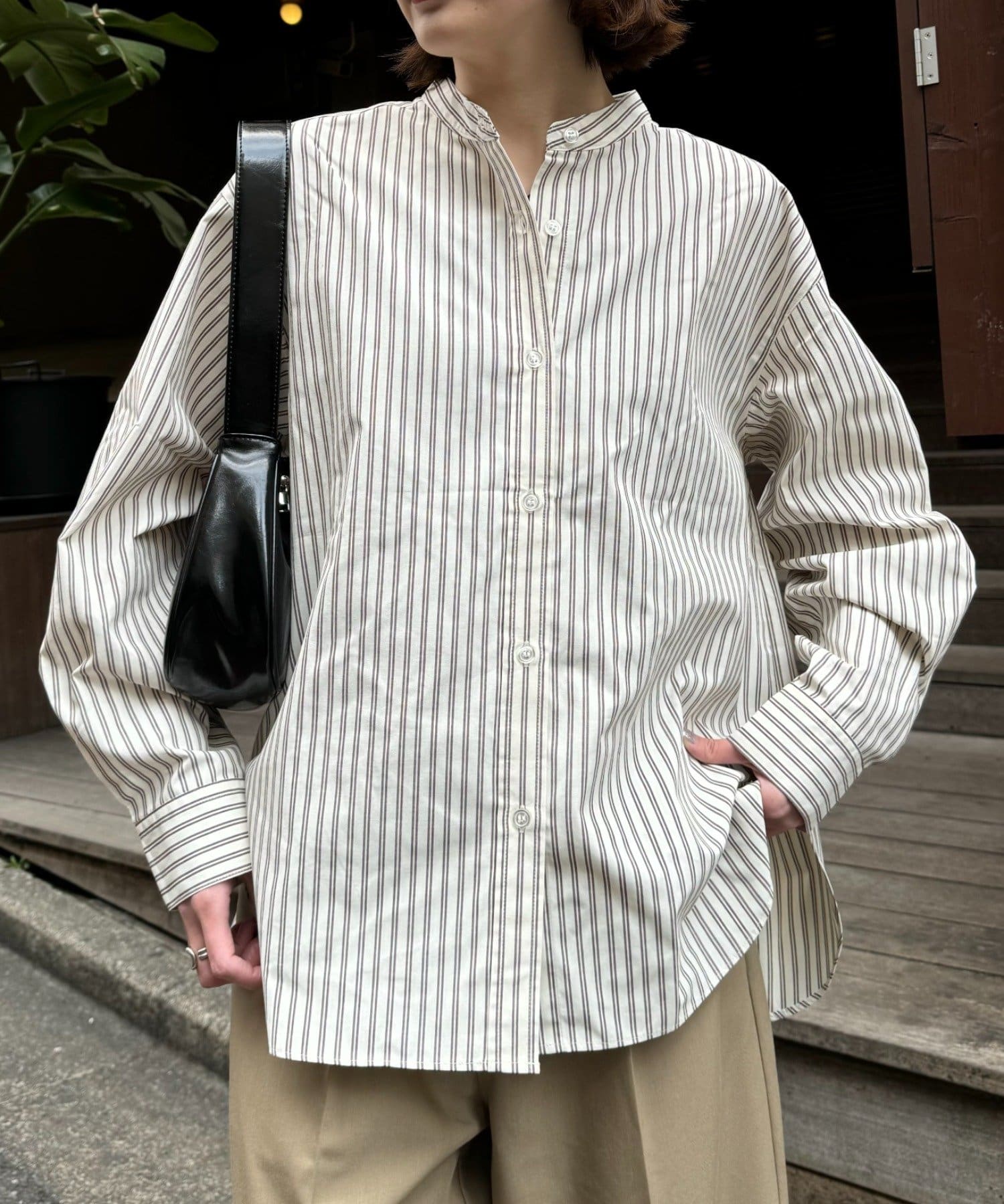 バンドカラーは顔周りをすっきり見せてくれ、レイヤードスタイルにも使いやすいデザイン。