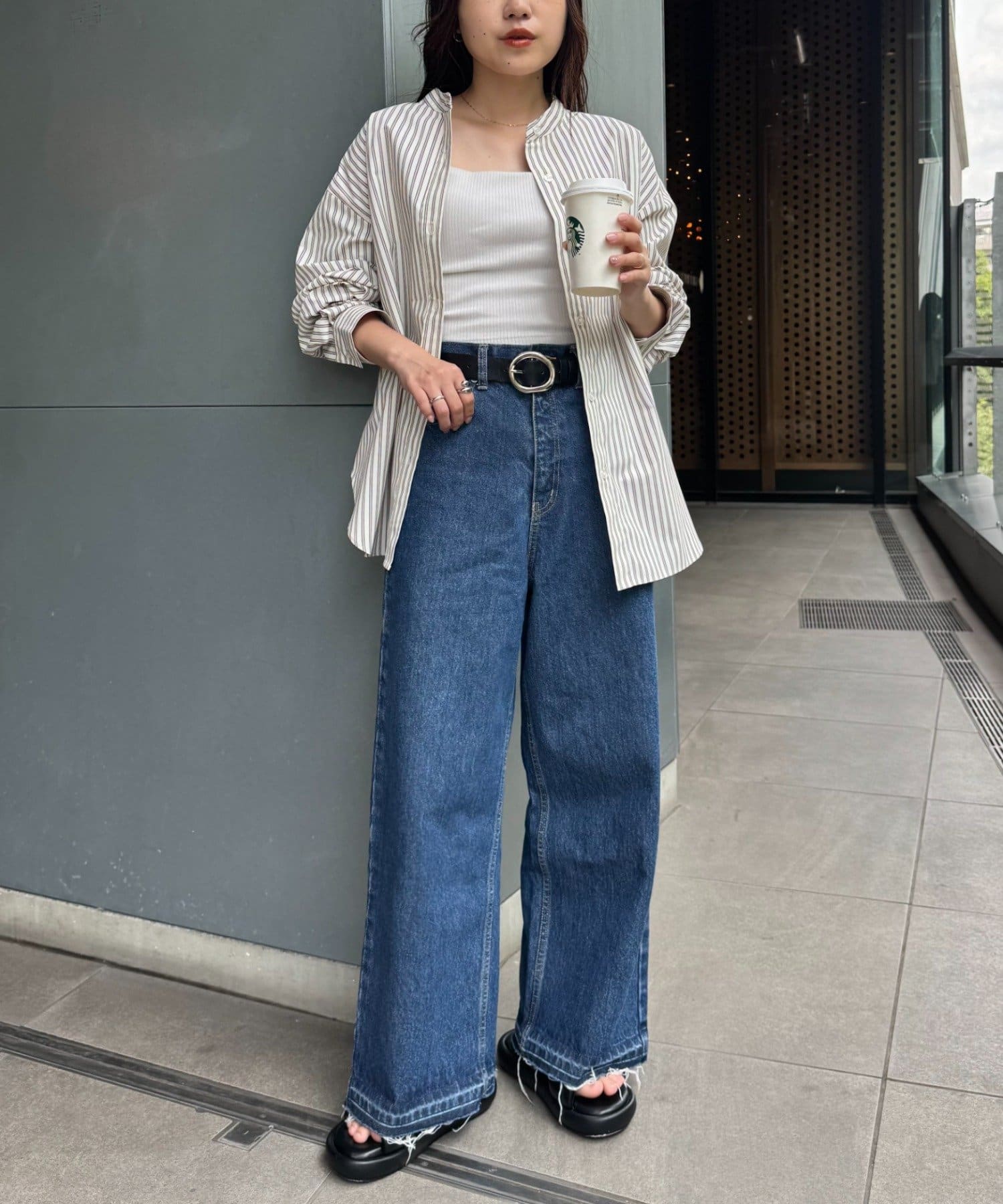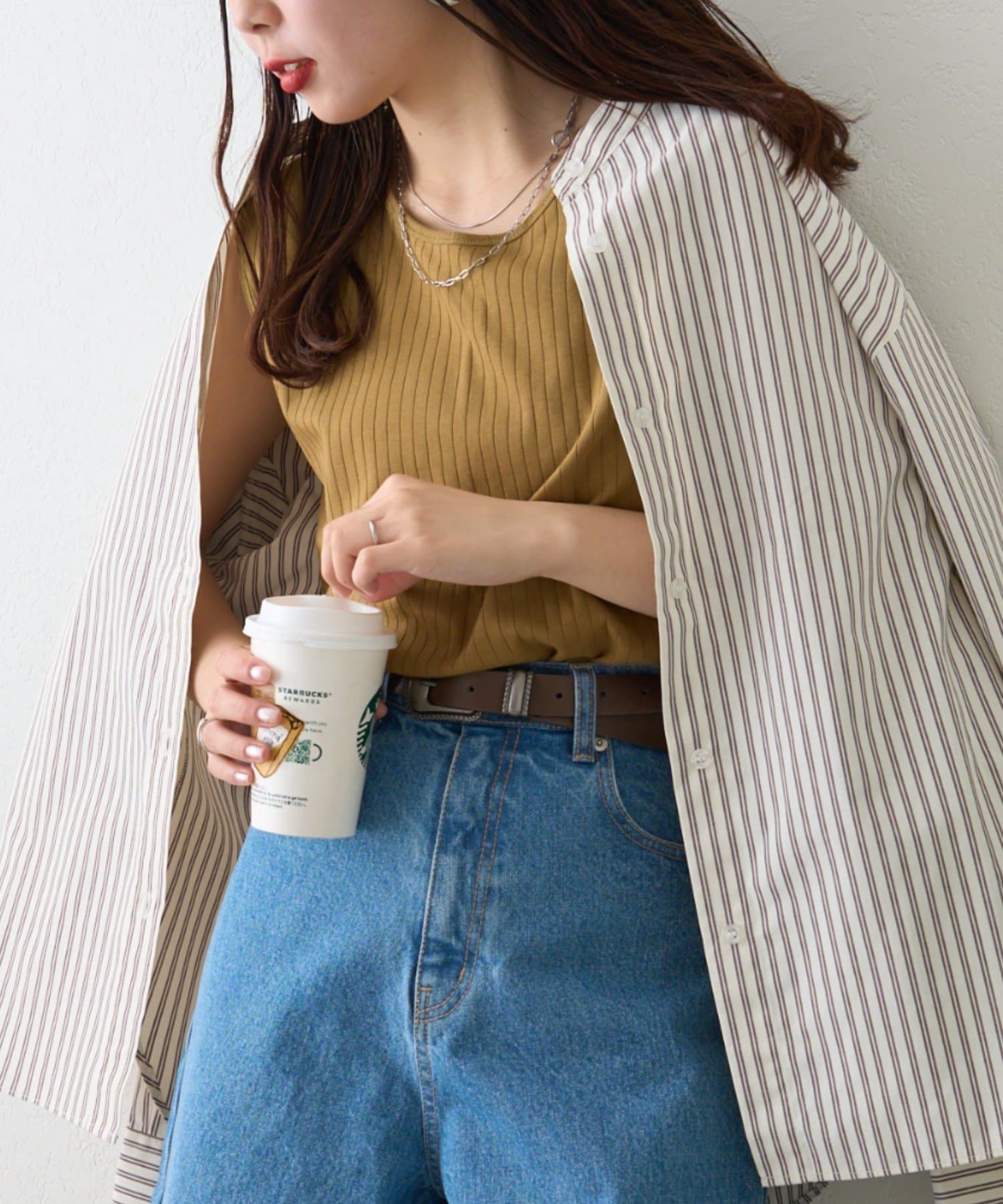 羽織として、Tシャツやタンクトップの上から着るのも程よい抜け感が出ておすすめです。