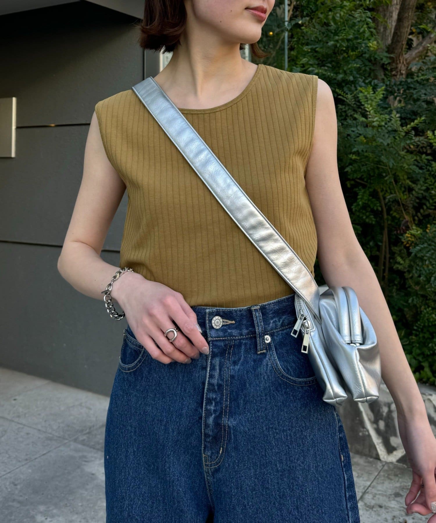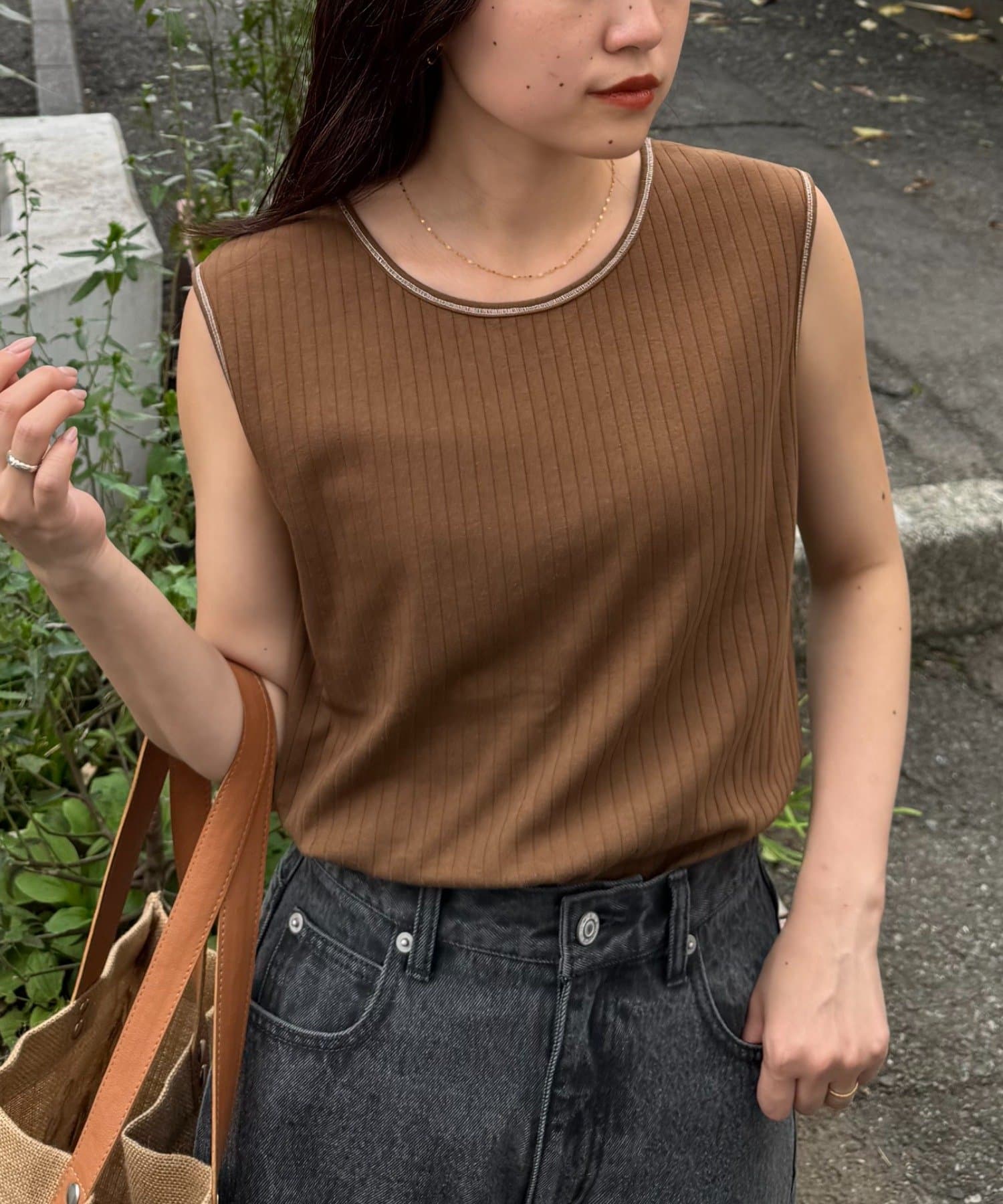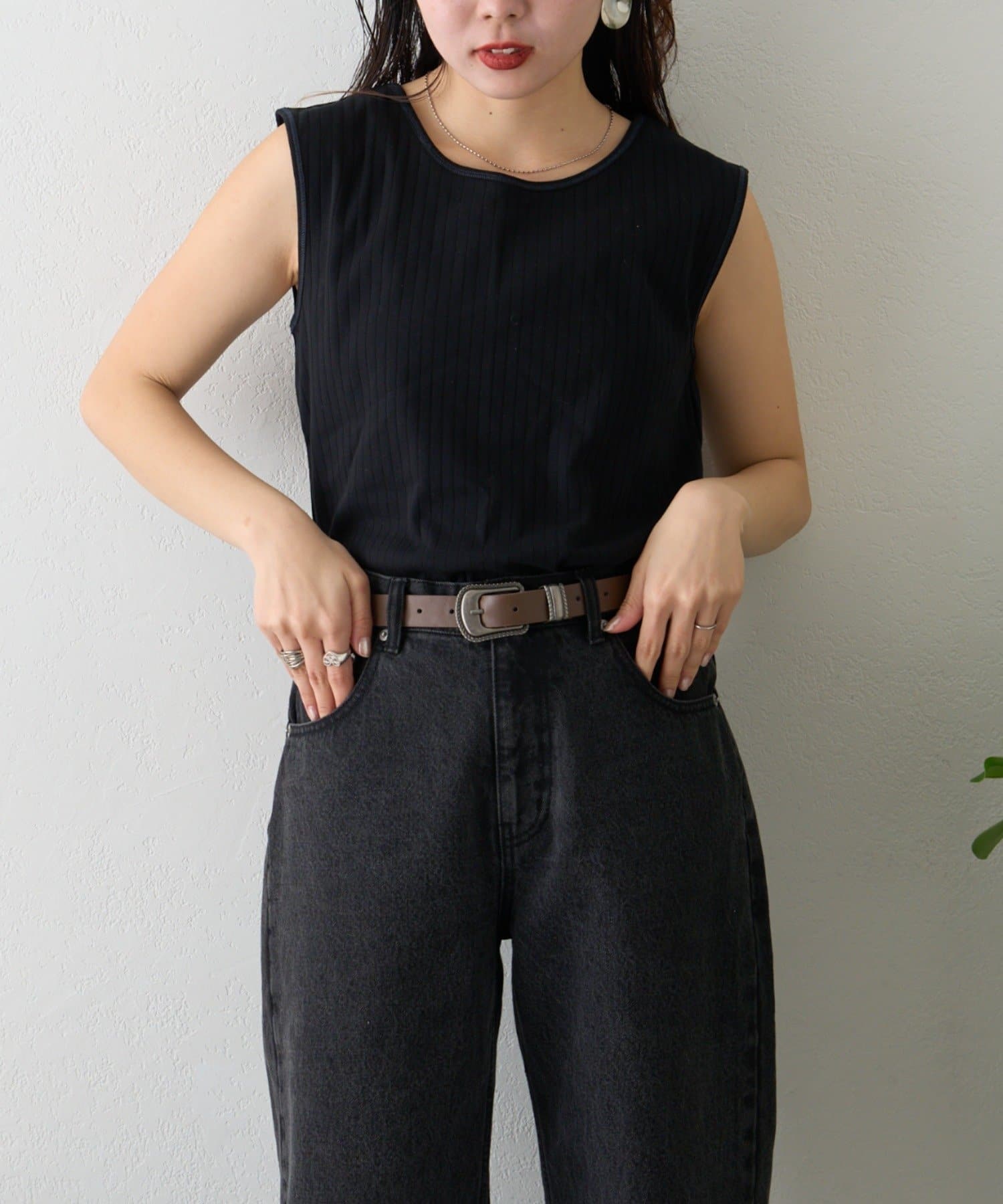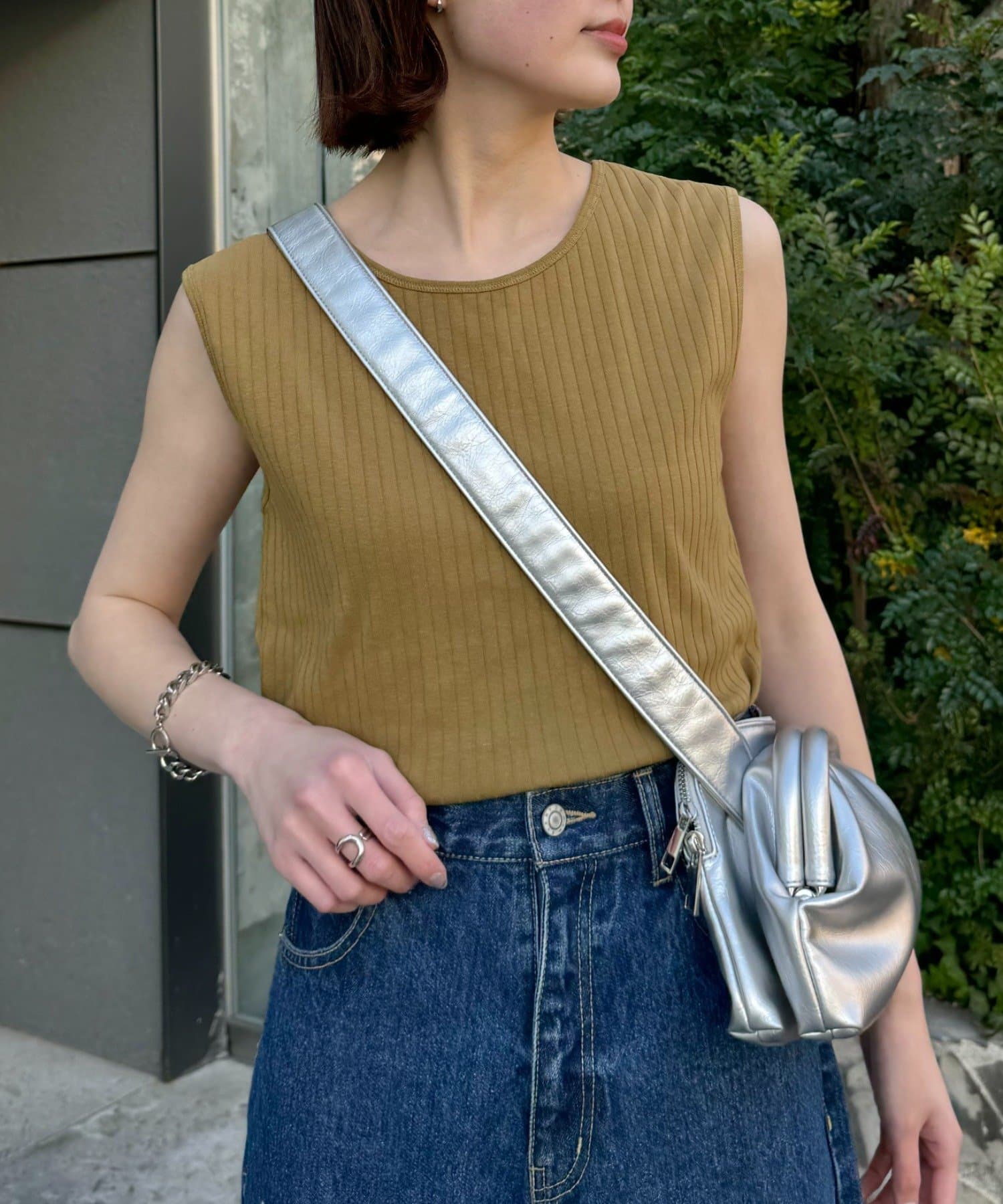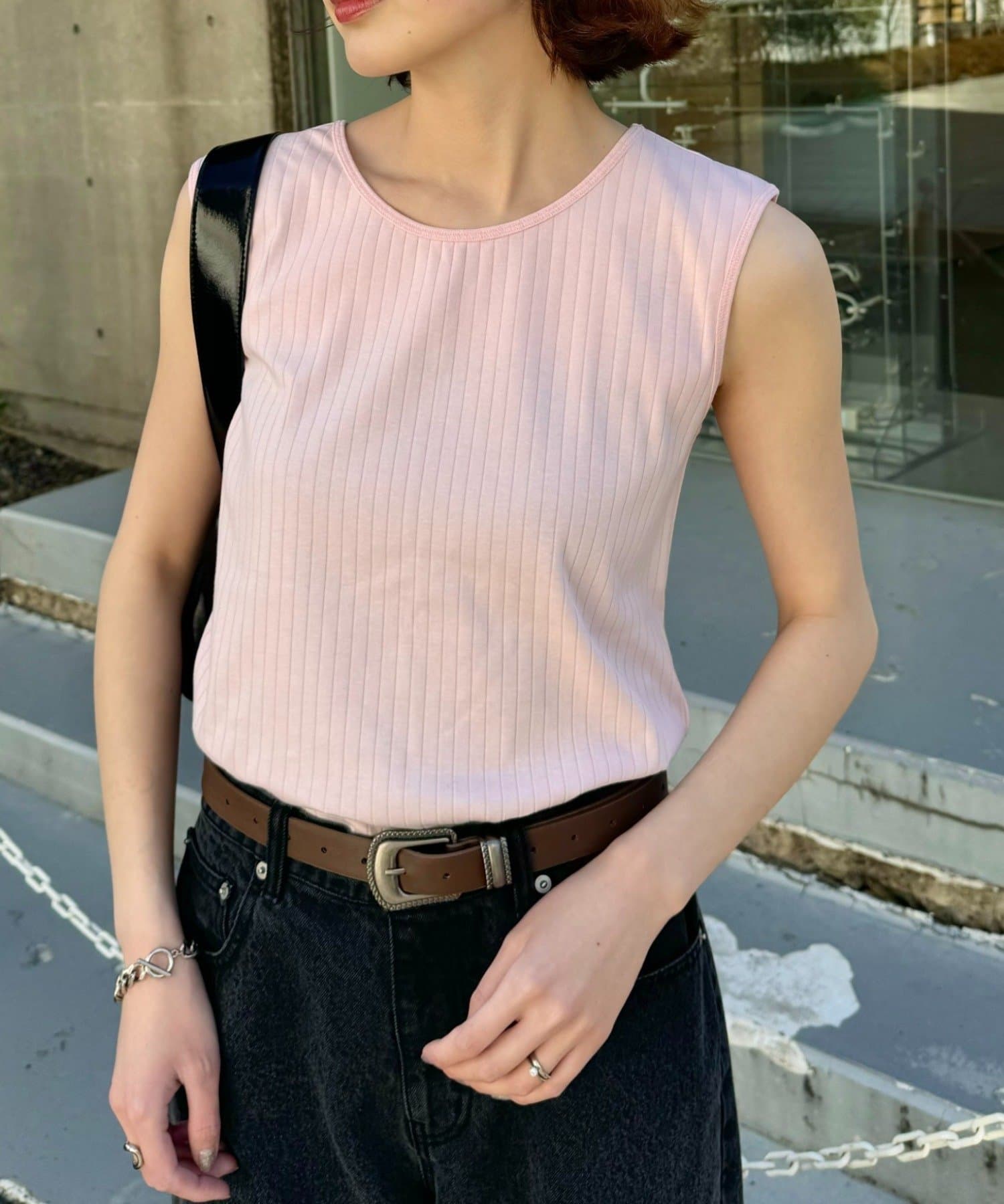 リブ素材で体に程よくフィットし、縦のラインを強調してくれるのですっきり見えシルエットに。