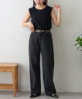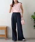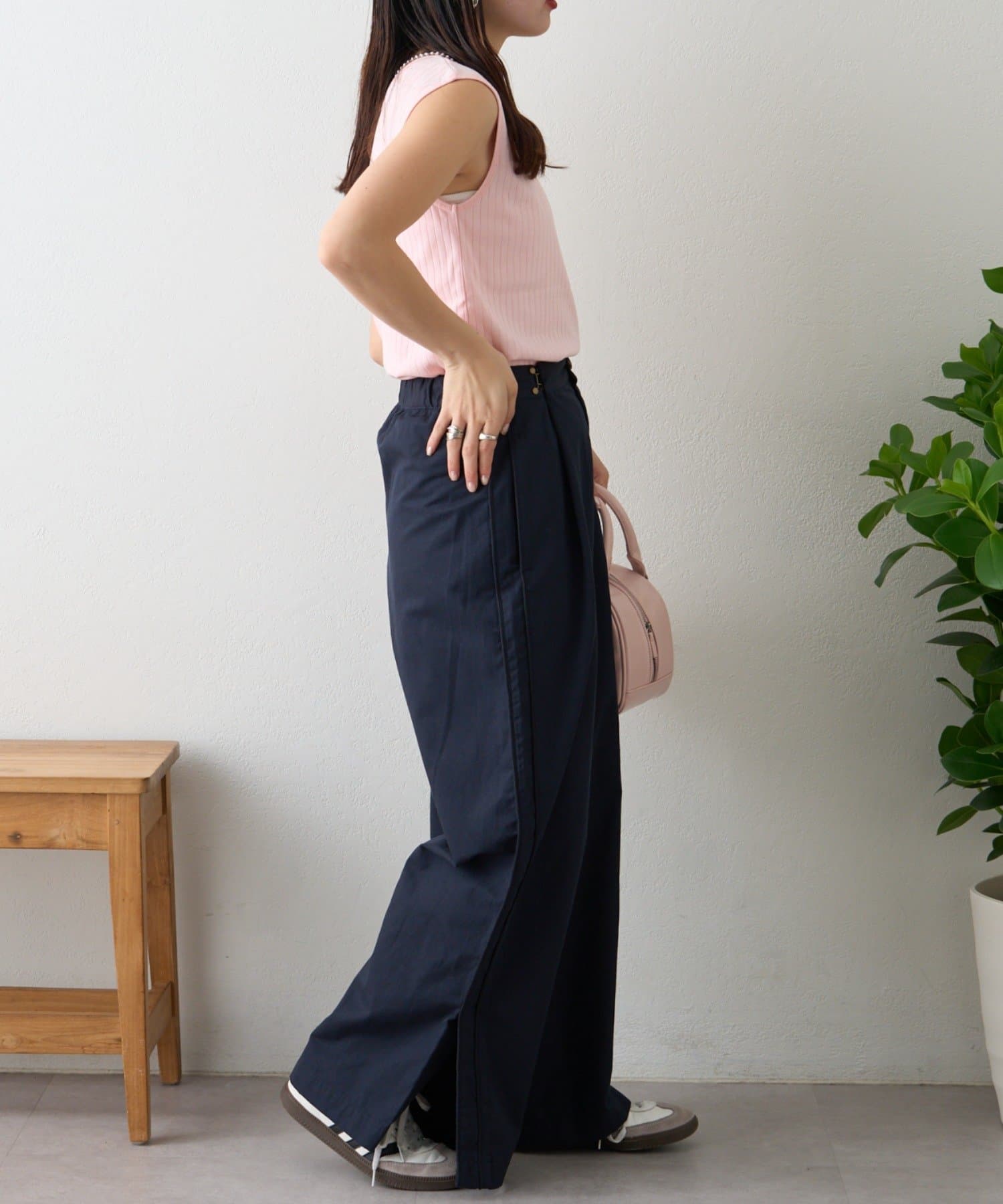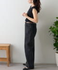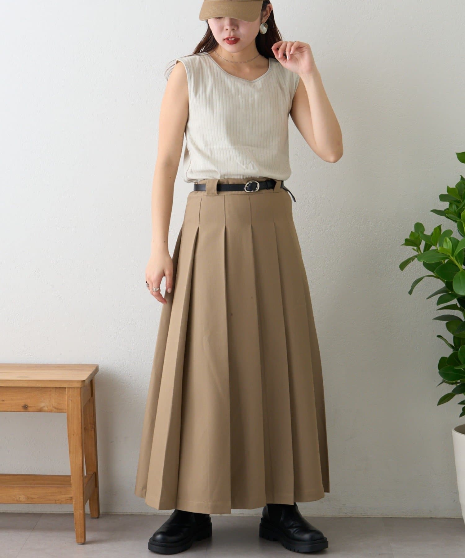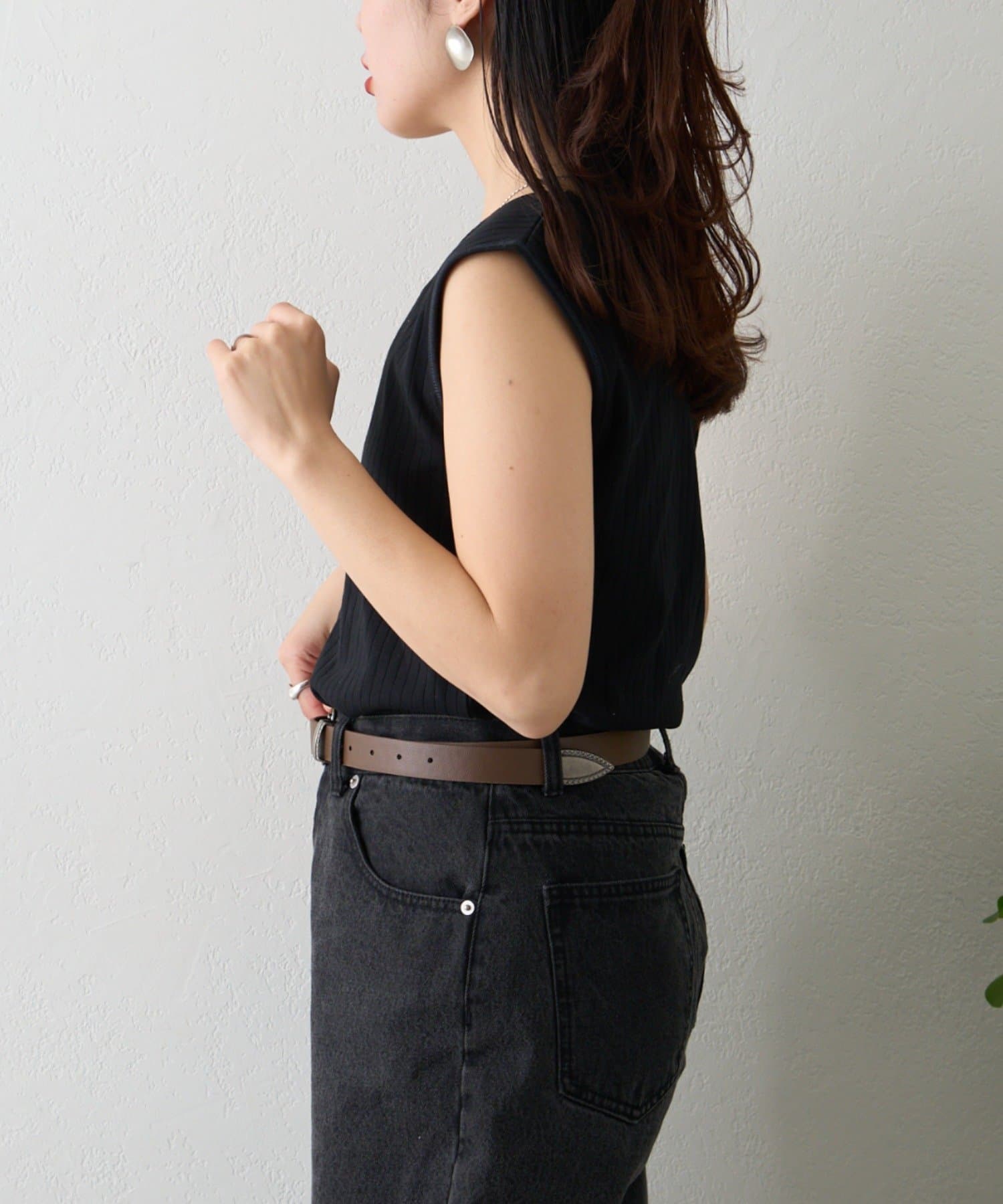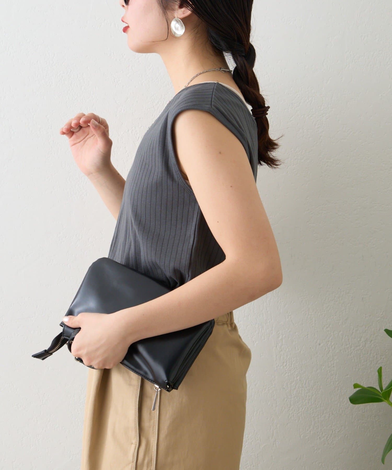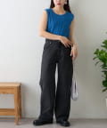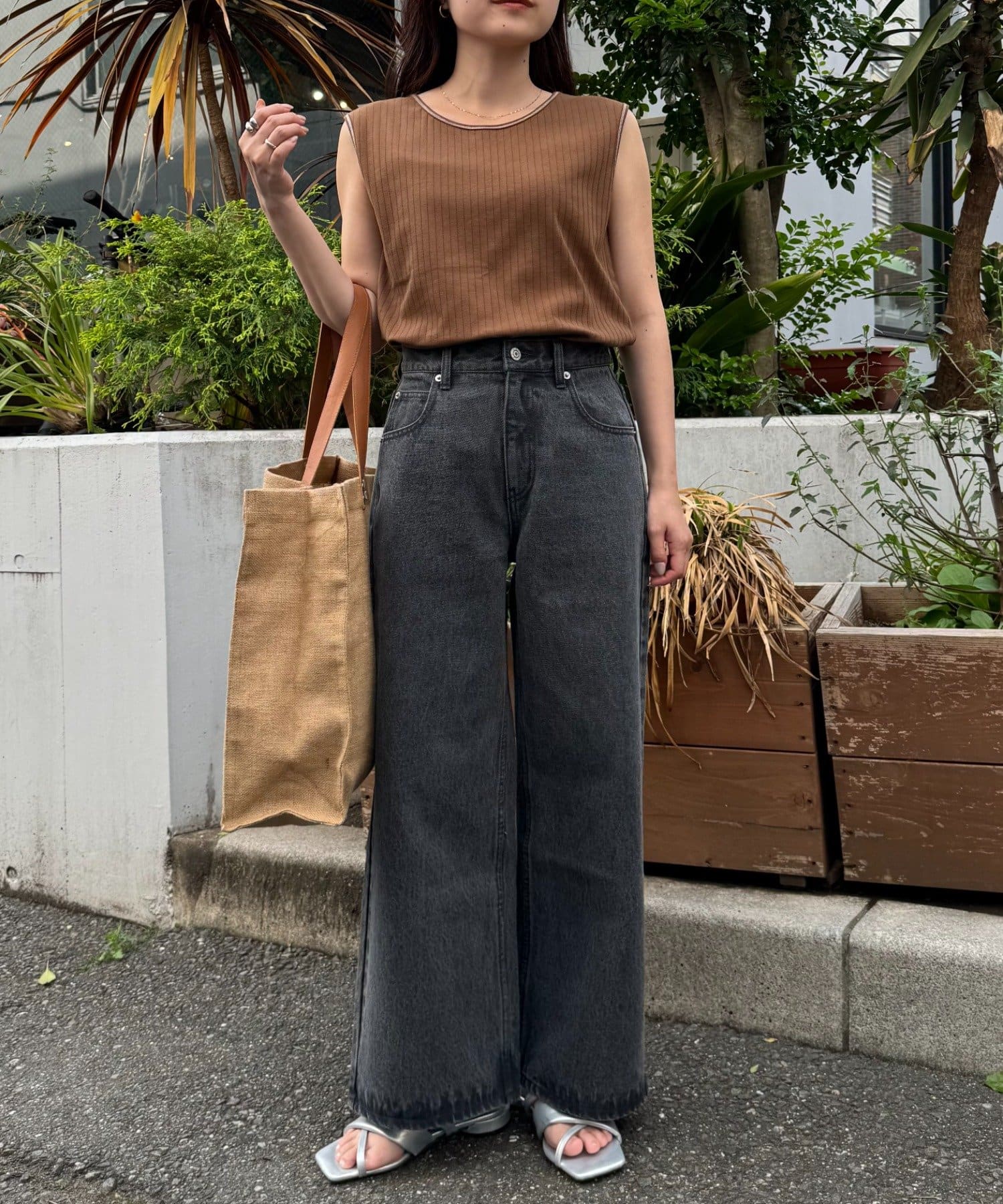 リブ素材で体に程よくフィットし、縦のラインを強調してくれるのですっきり見えシルエットに。