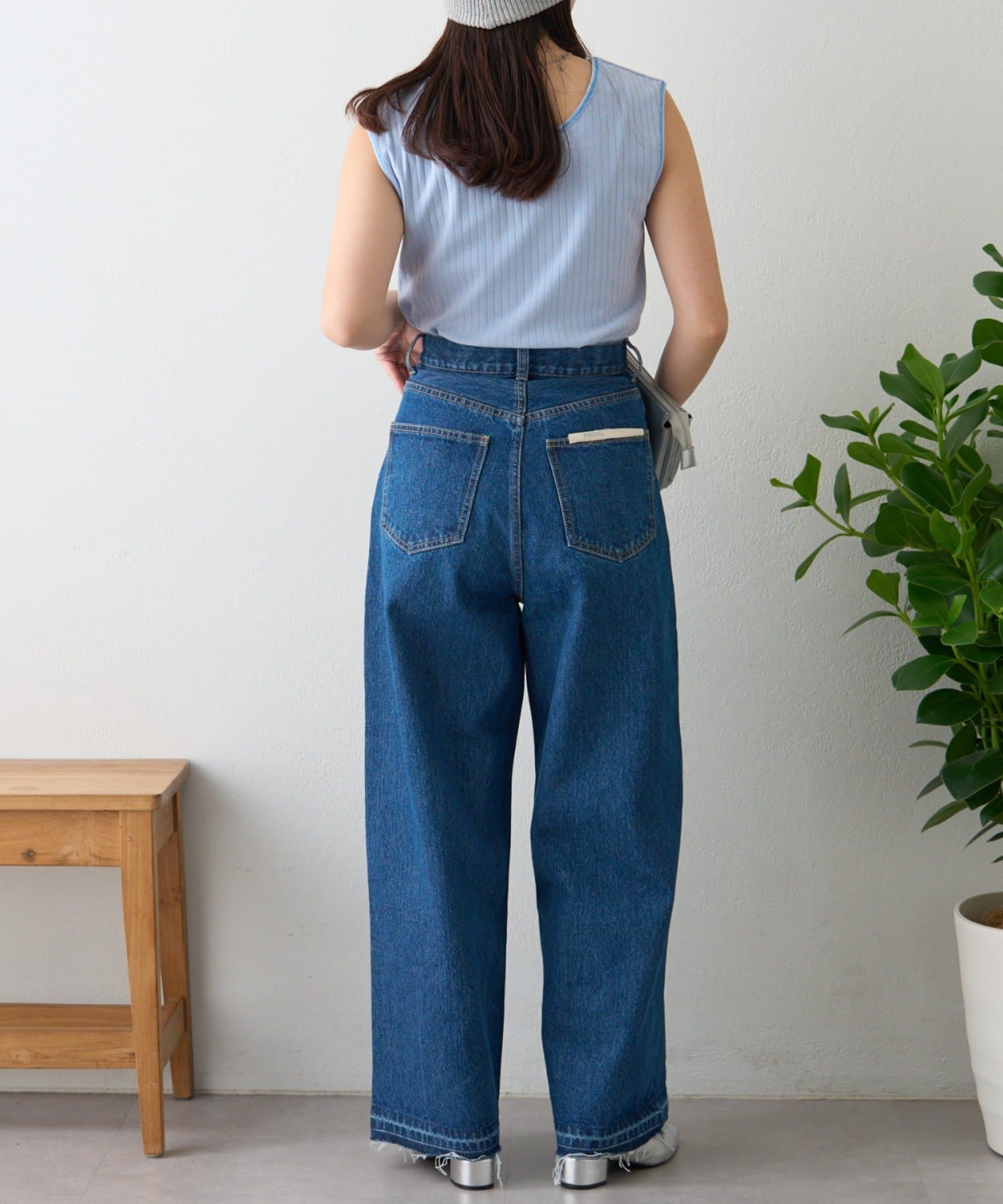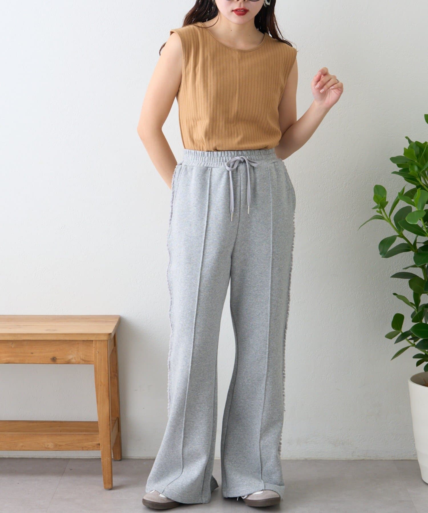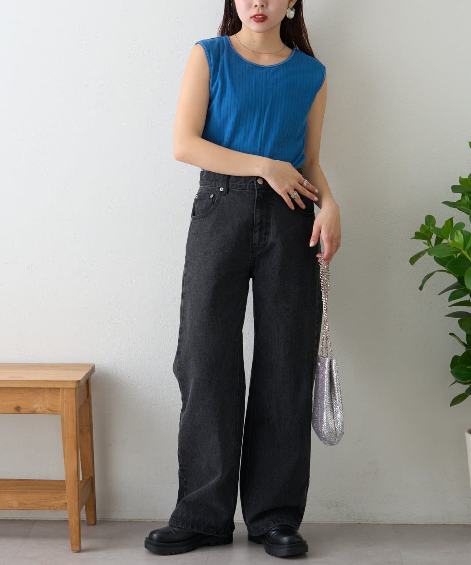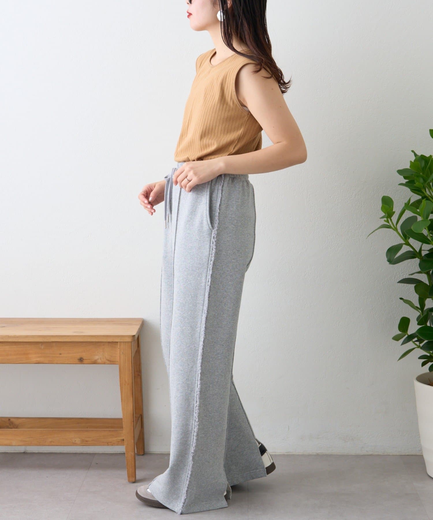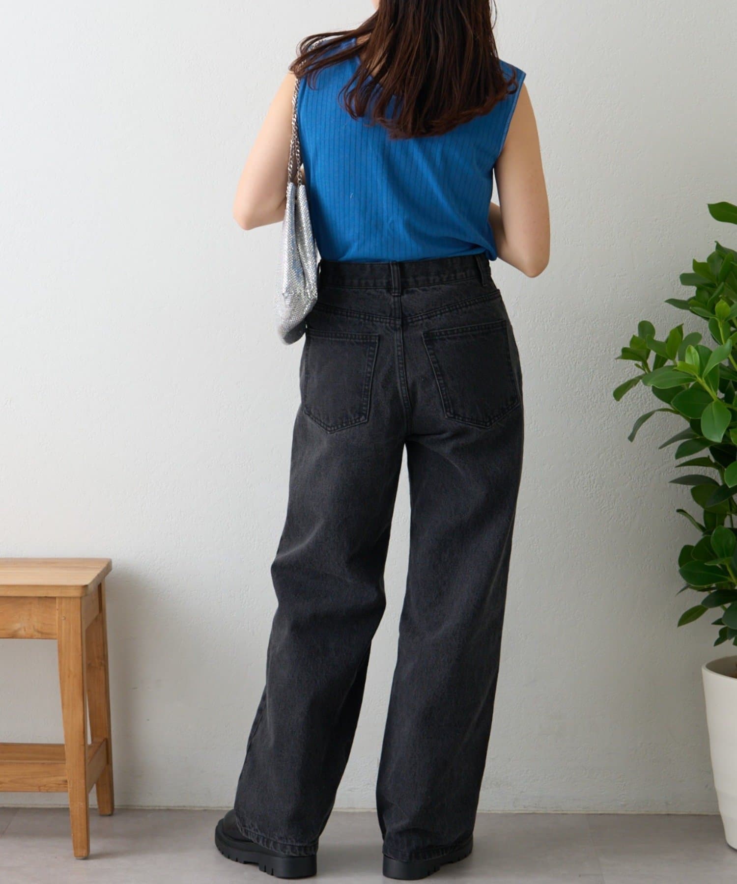 リブ素材で体に程よくフィットし、縦のラインを強調してくれるのですっきり見えシルエットに。