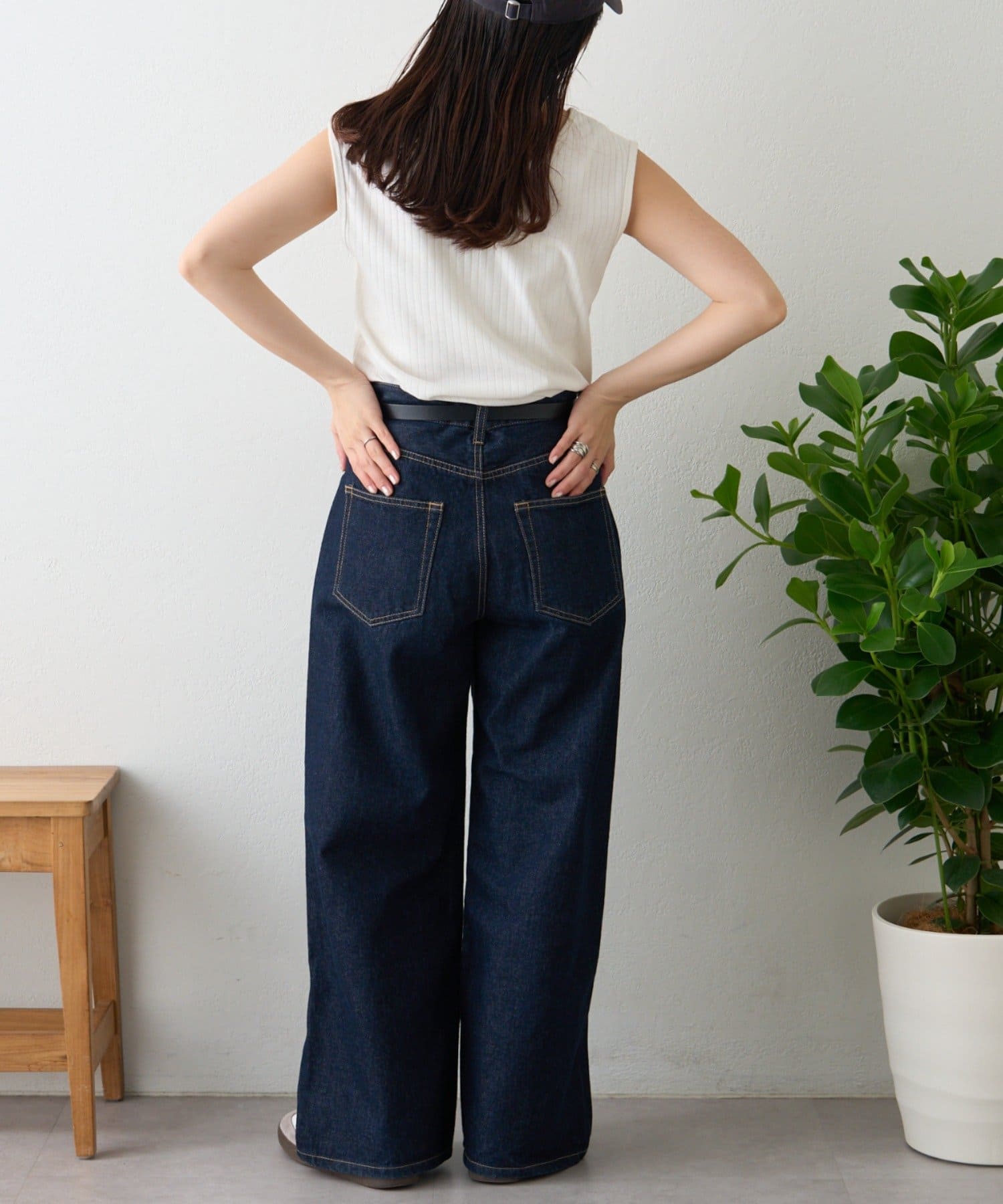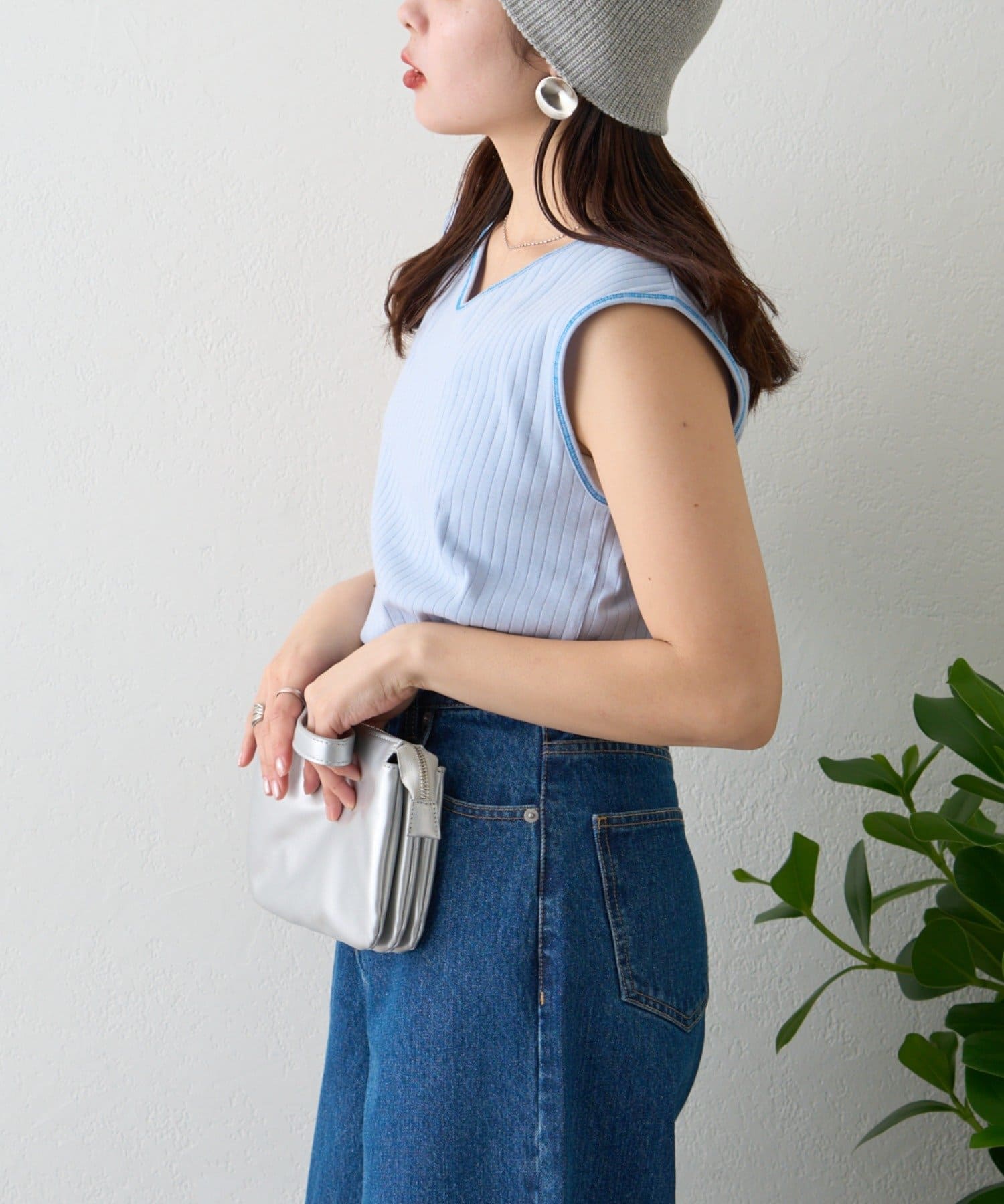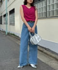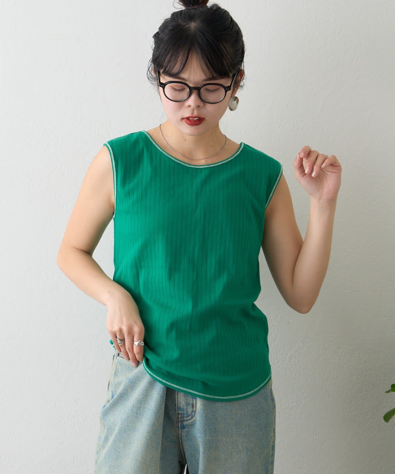 シンプルになりがちなインナーも、配色ステッチがあることでコーデのポイントになってくれます。