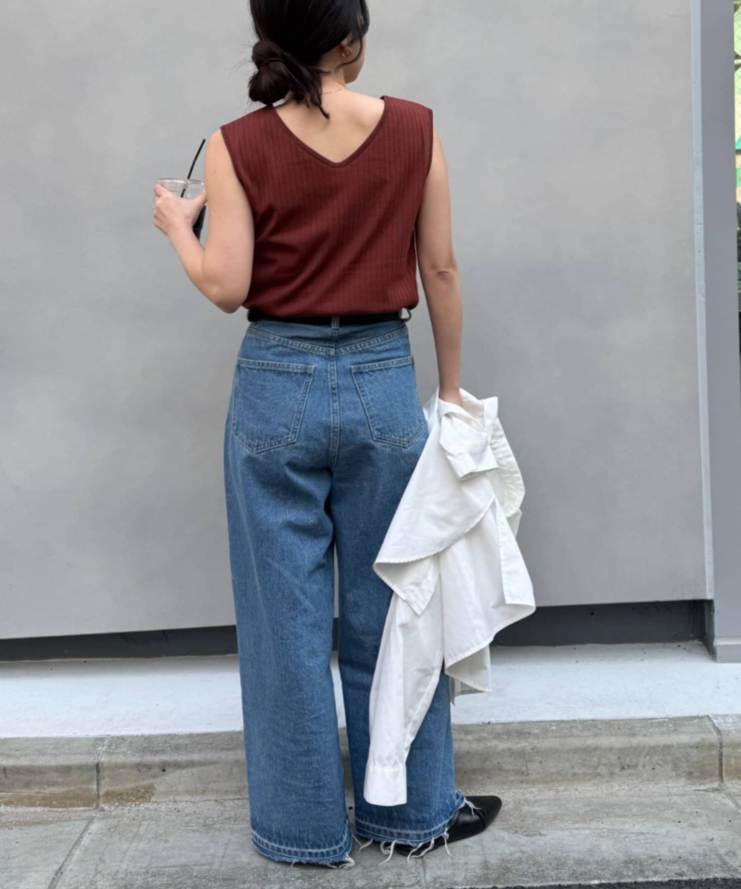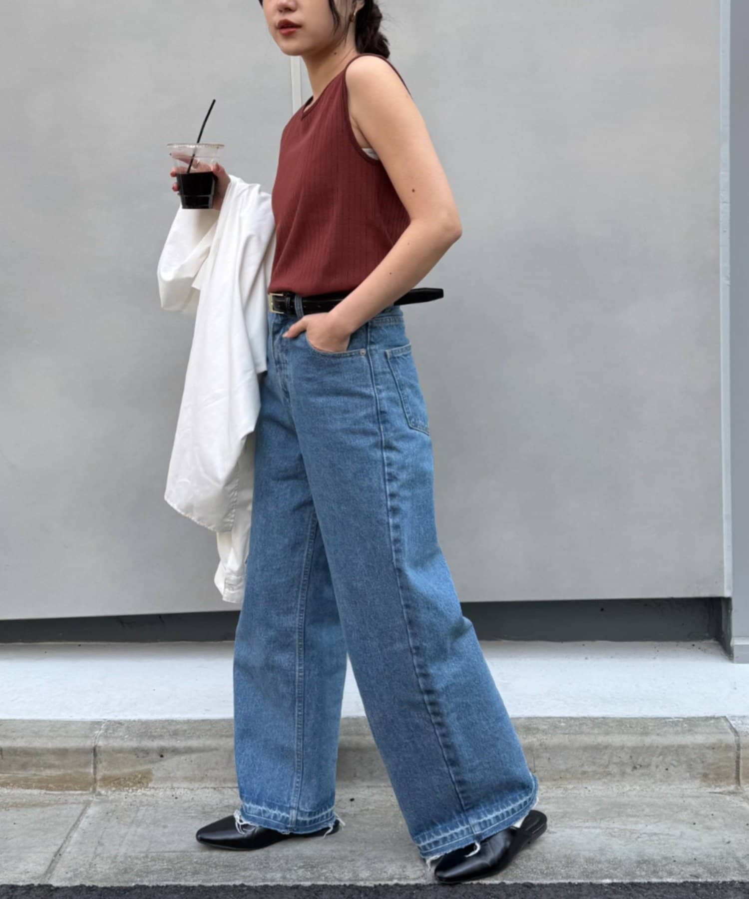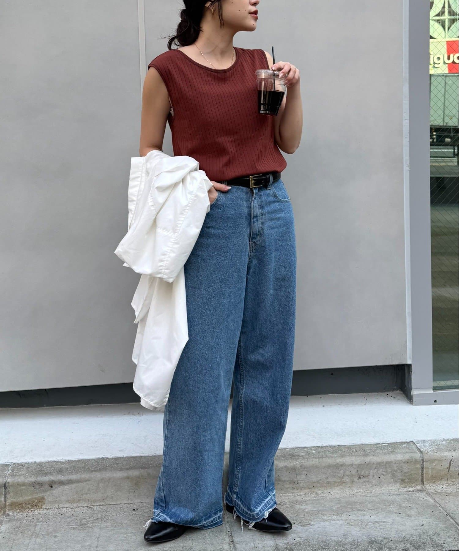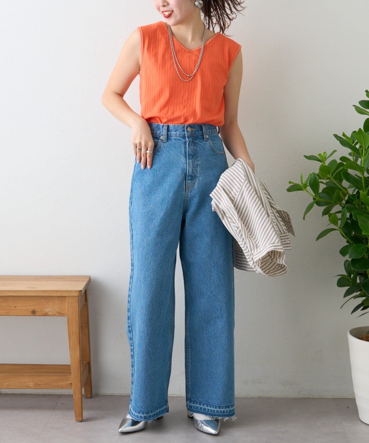 デニムやスラックス、スカートと1枚で着こなす涼し気コーデもおすすめです。