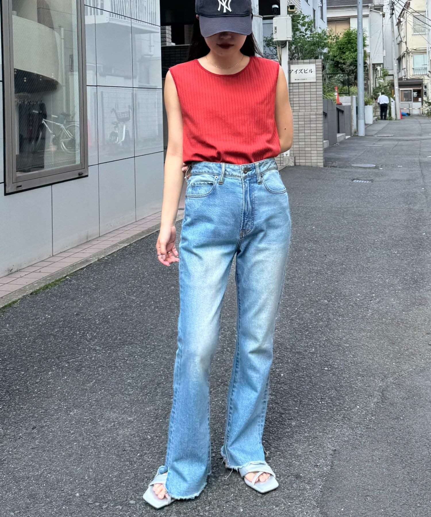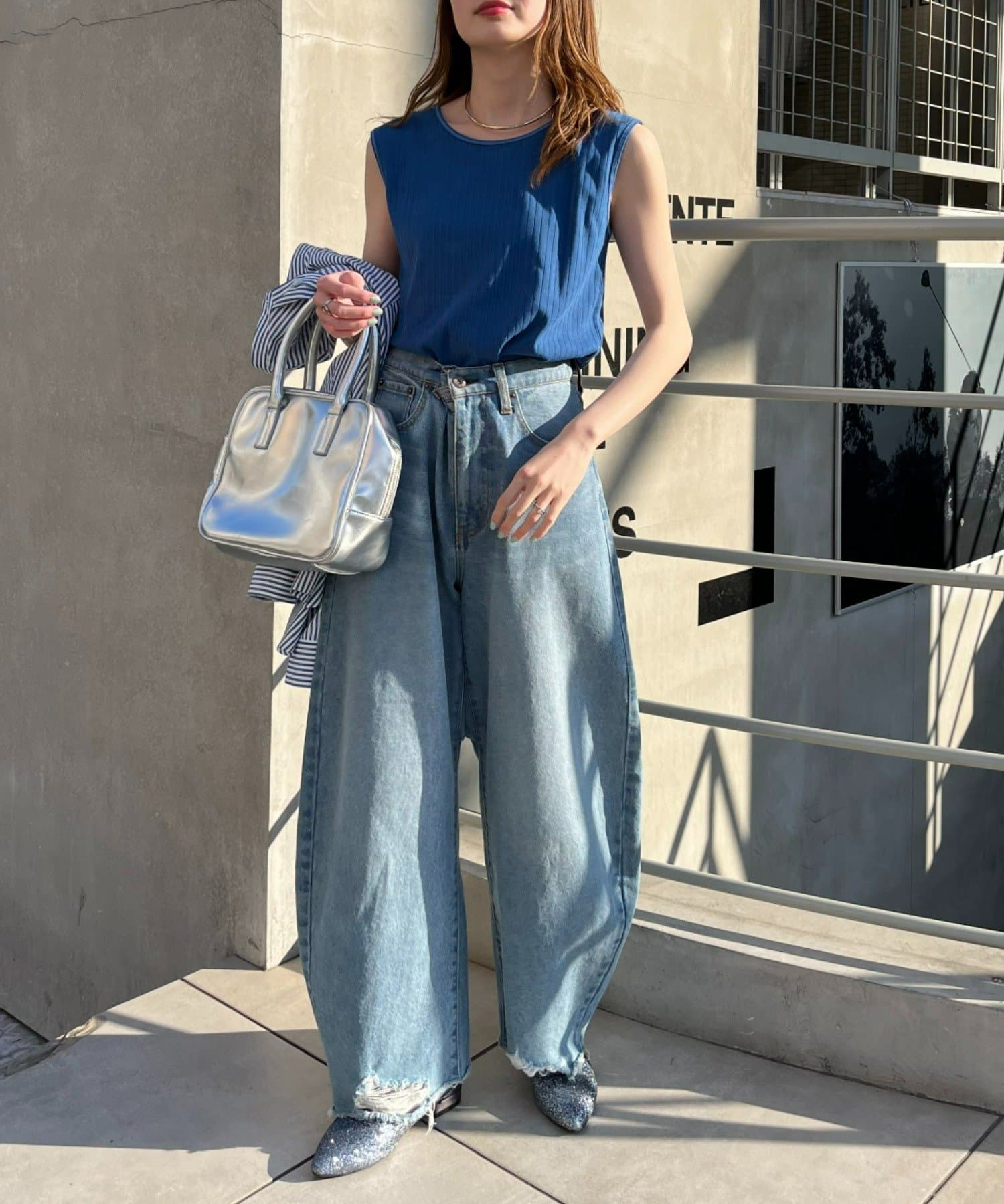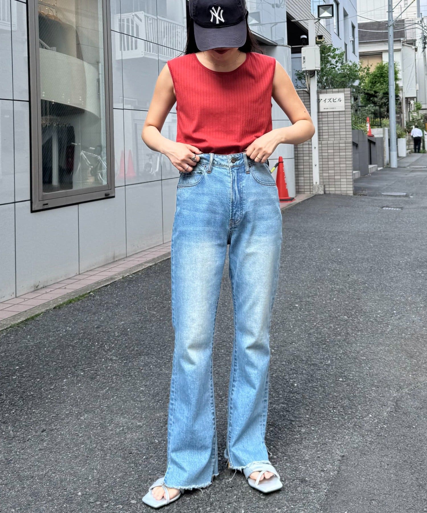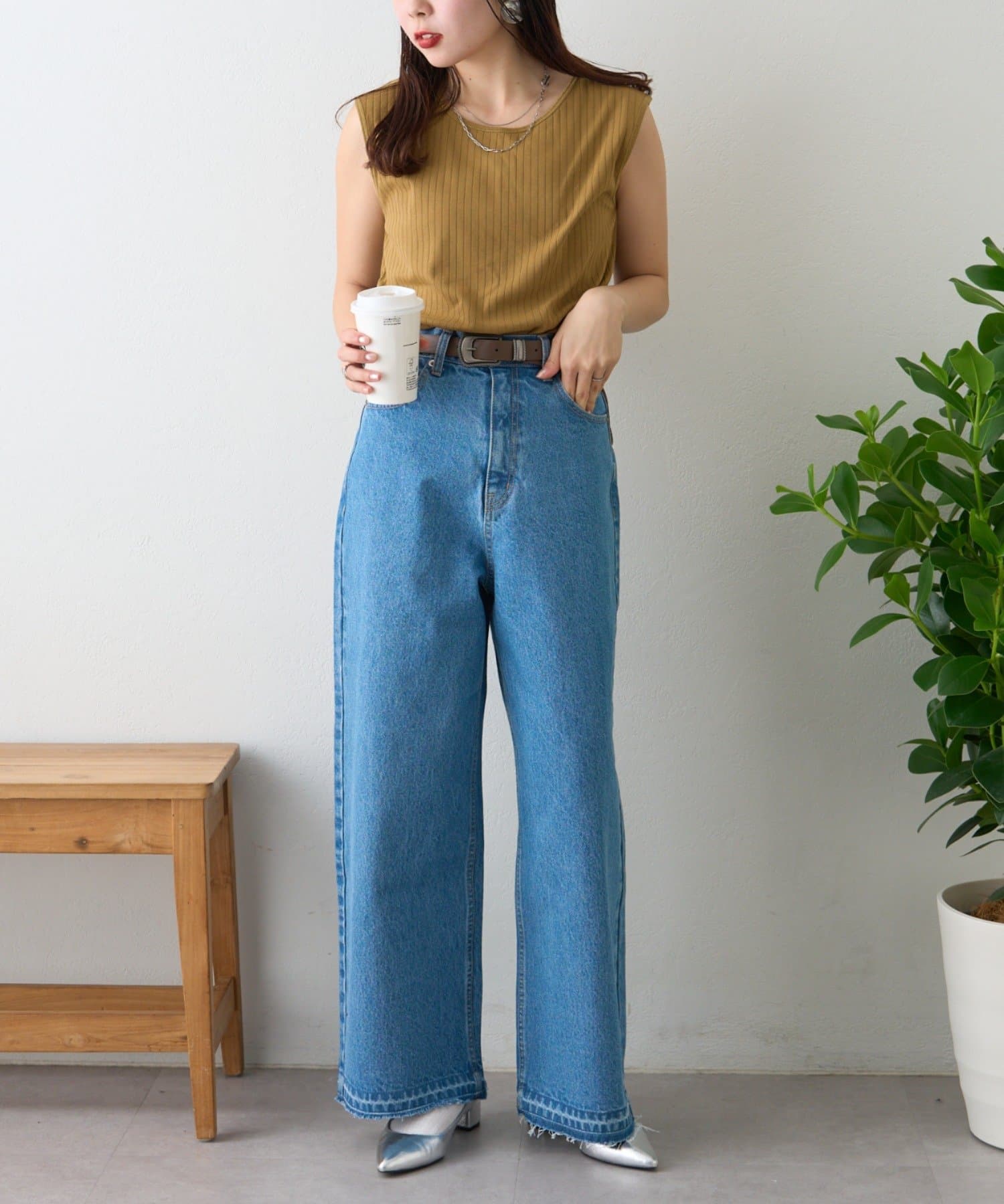デニムやスラックス、スカートと1枚で着こなす涼し気コーデもおすすめです。