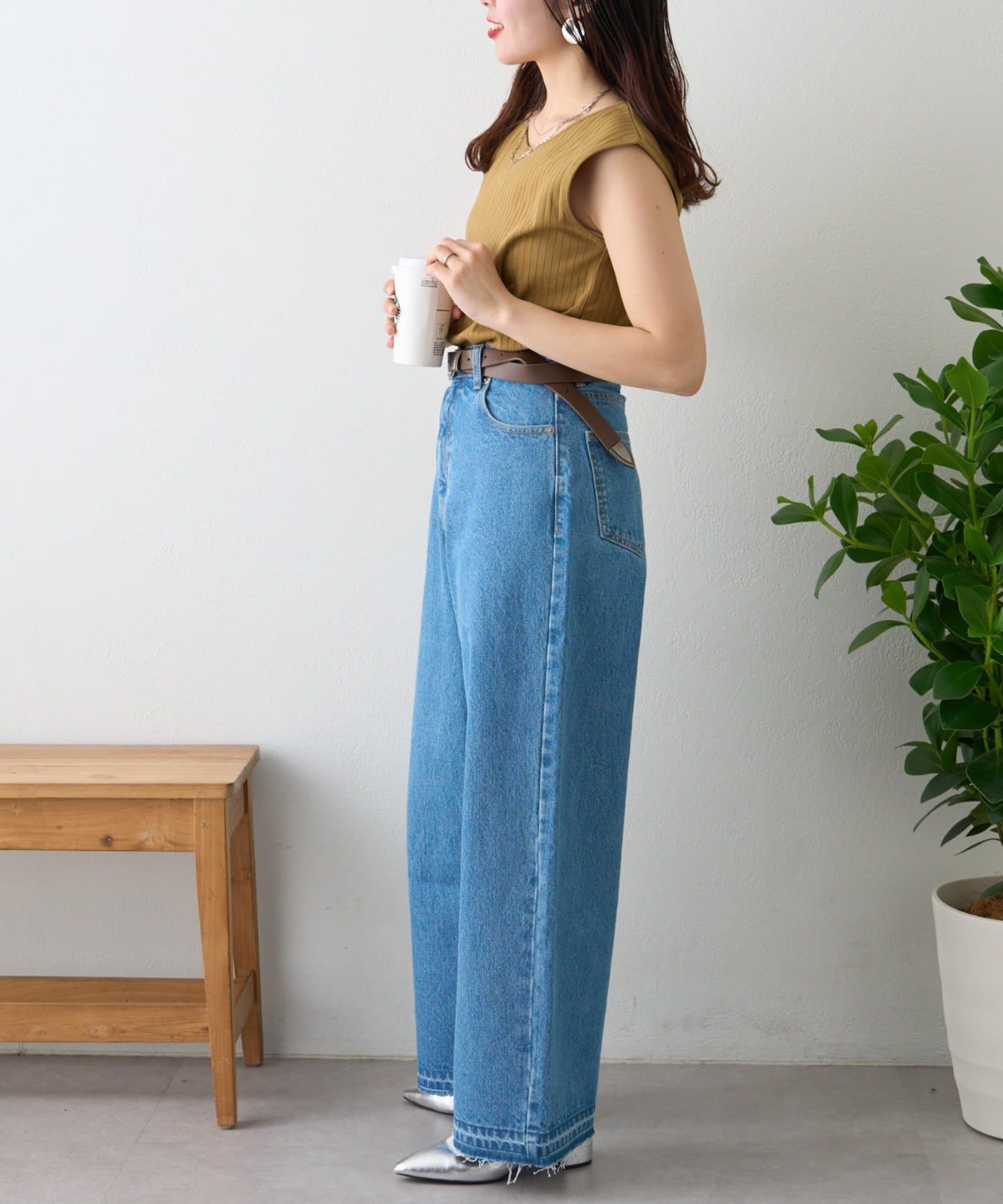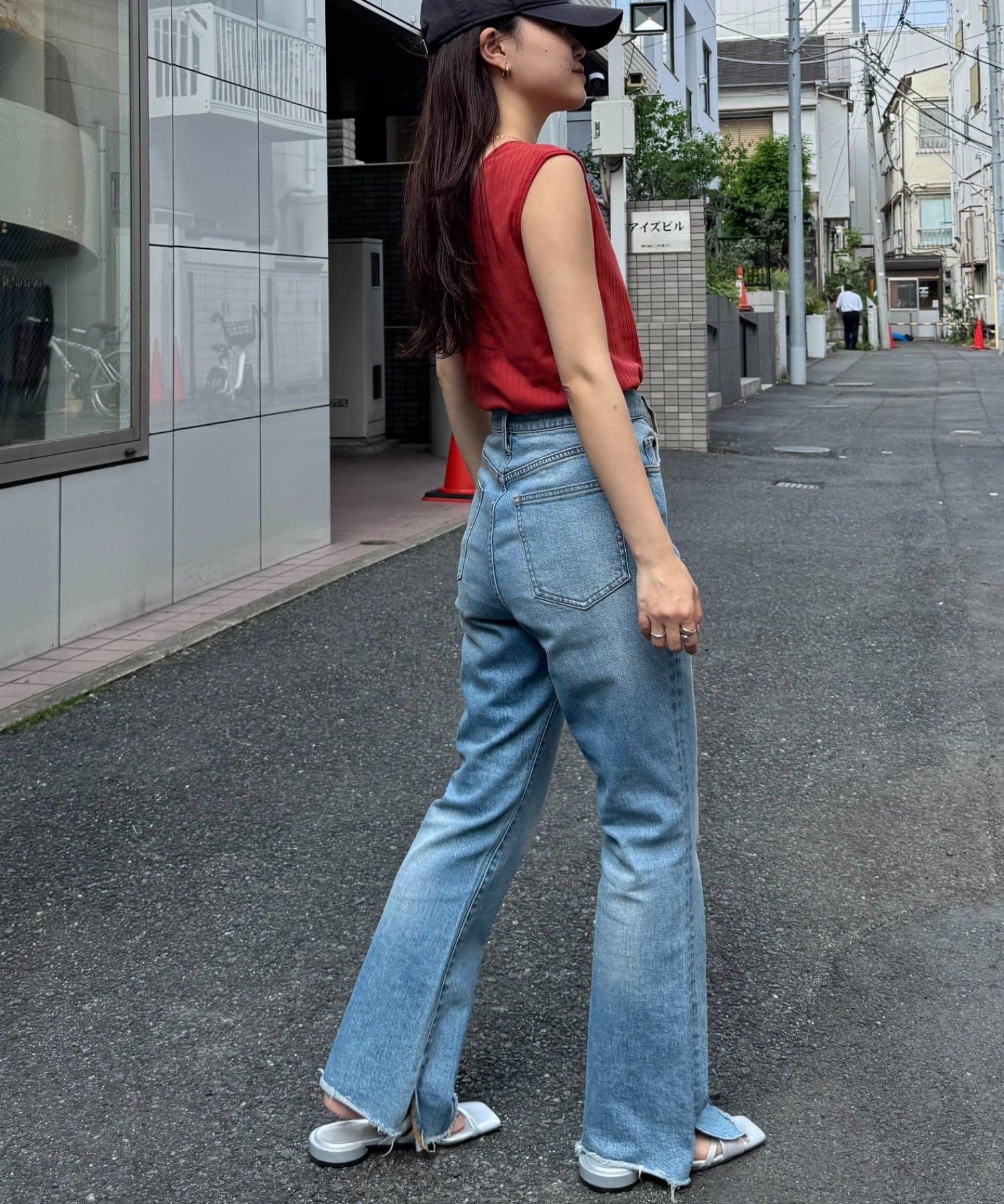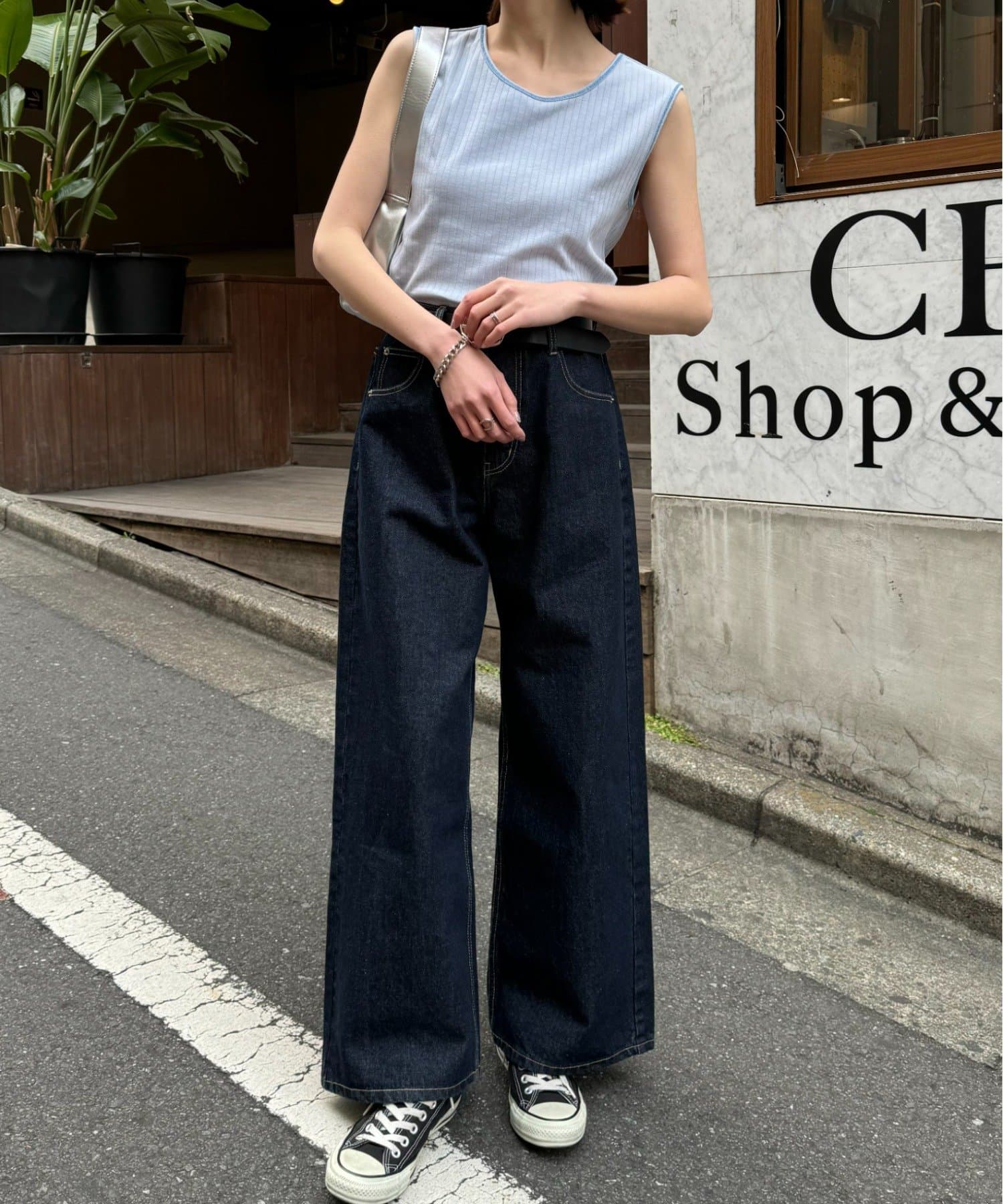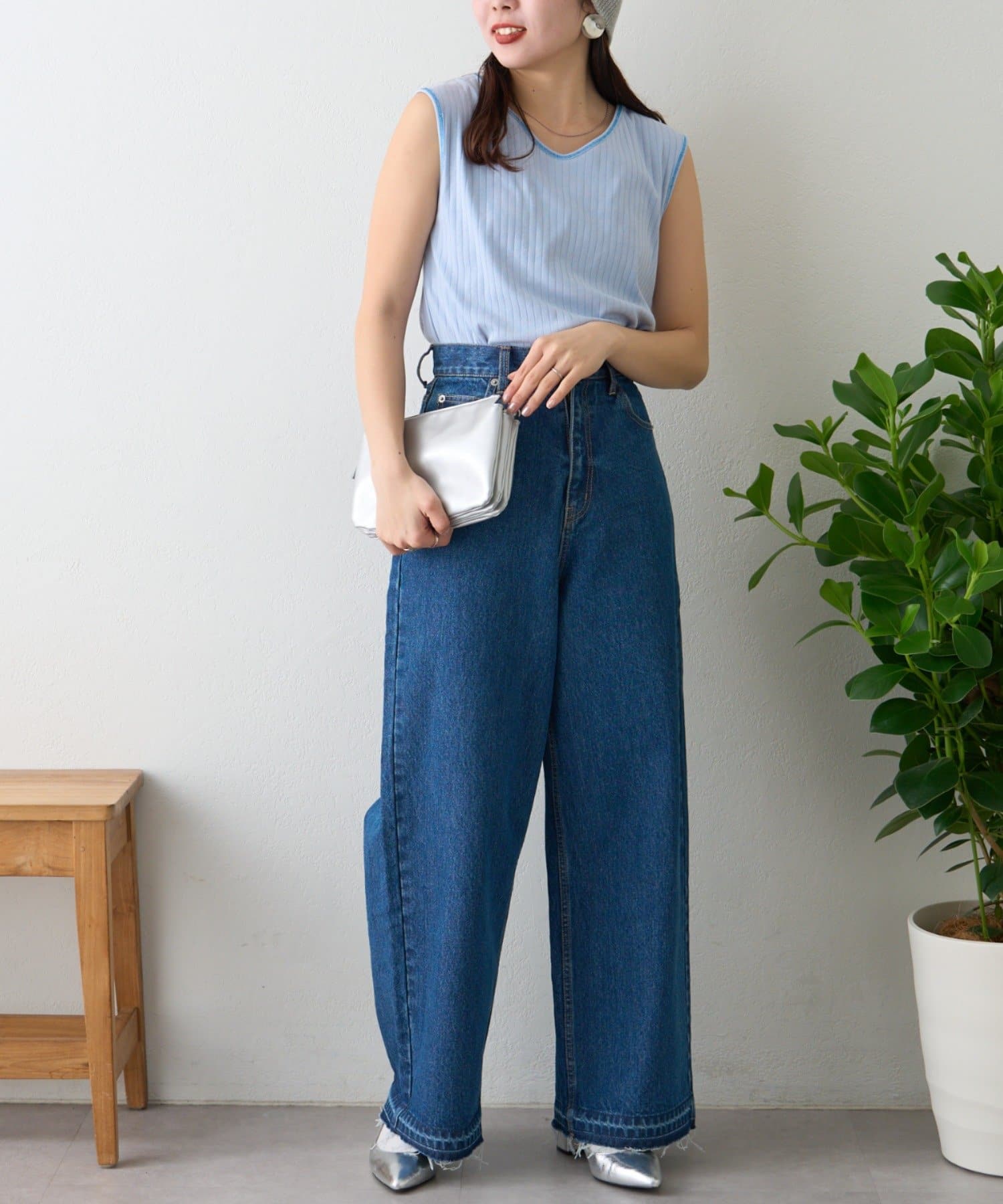 デニムやスラックス、スカートと1枚で着こなす涼し気コーデもおすすめです。
