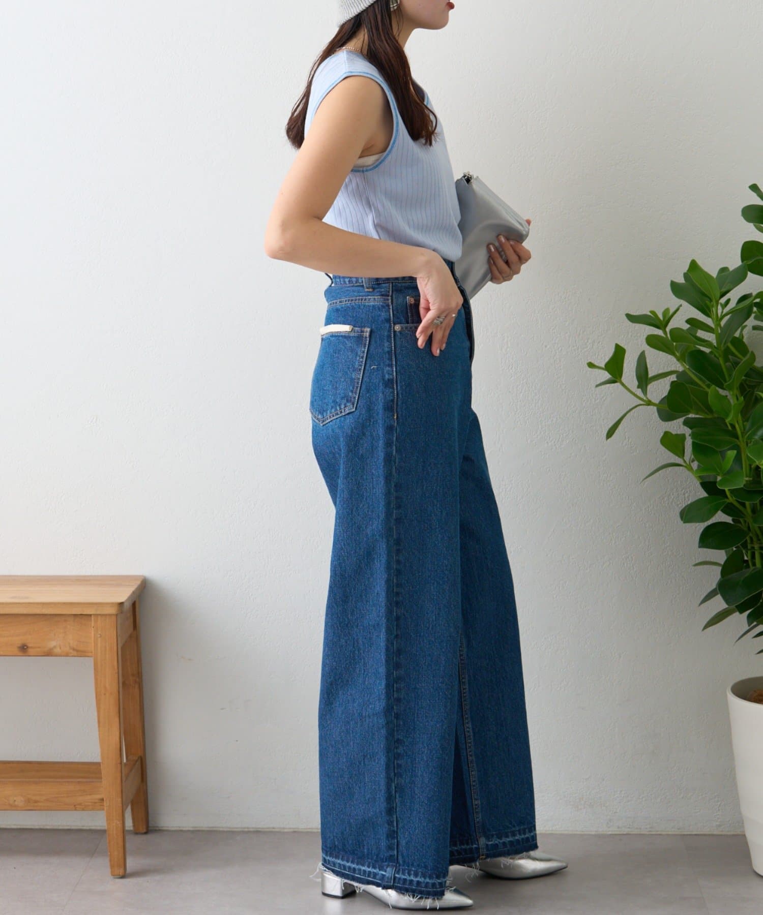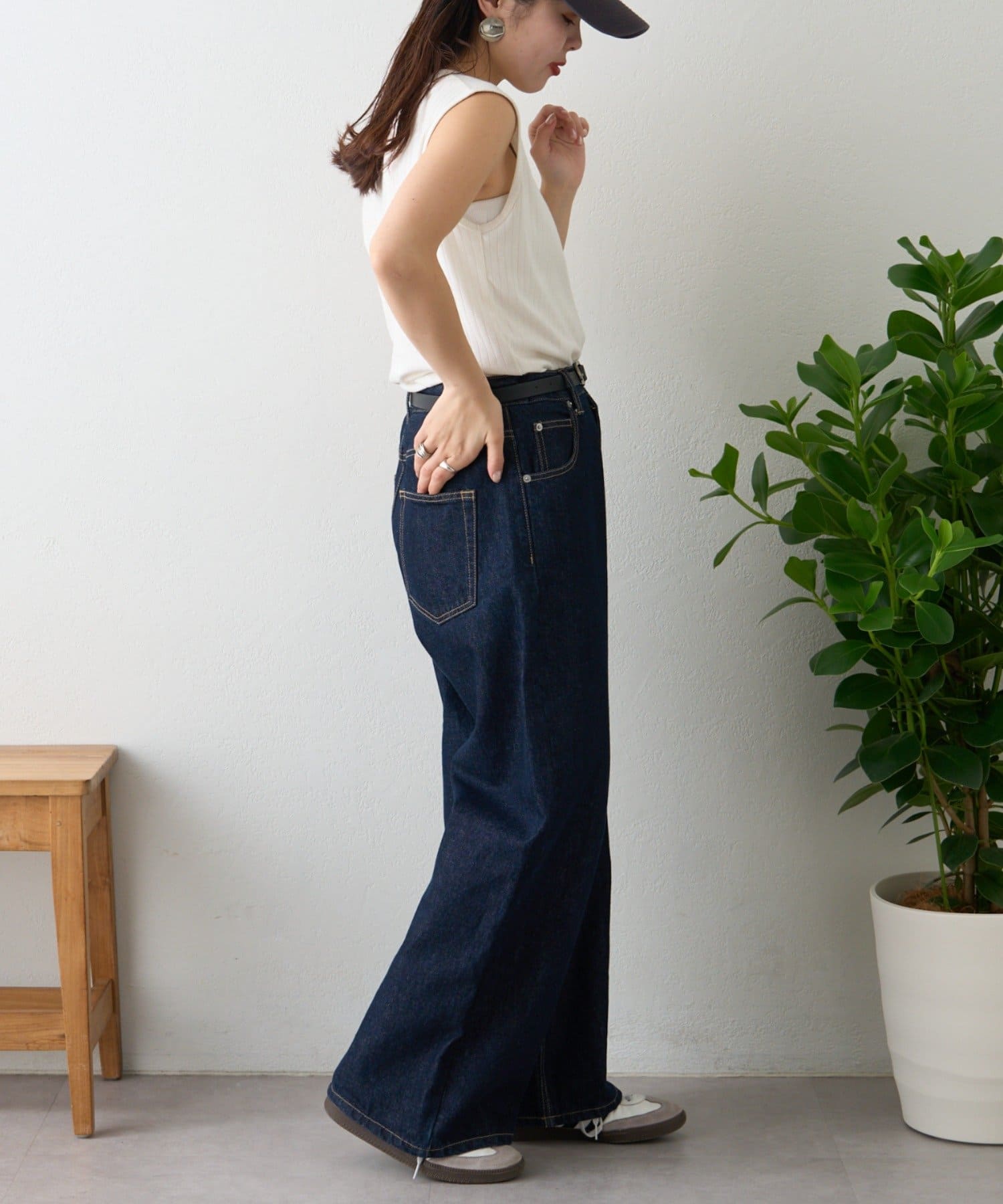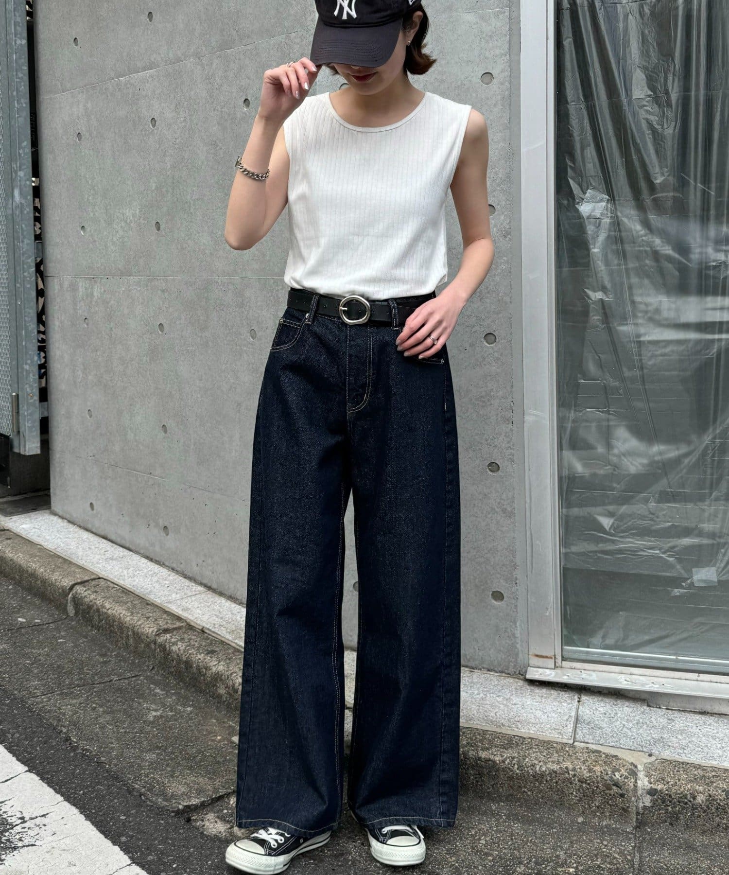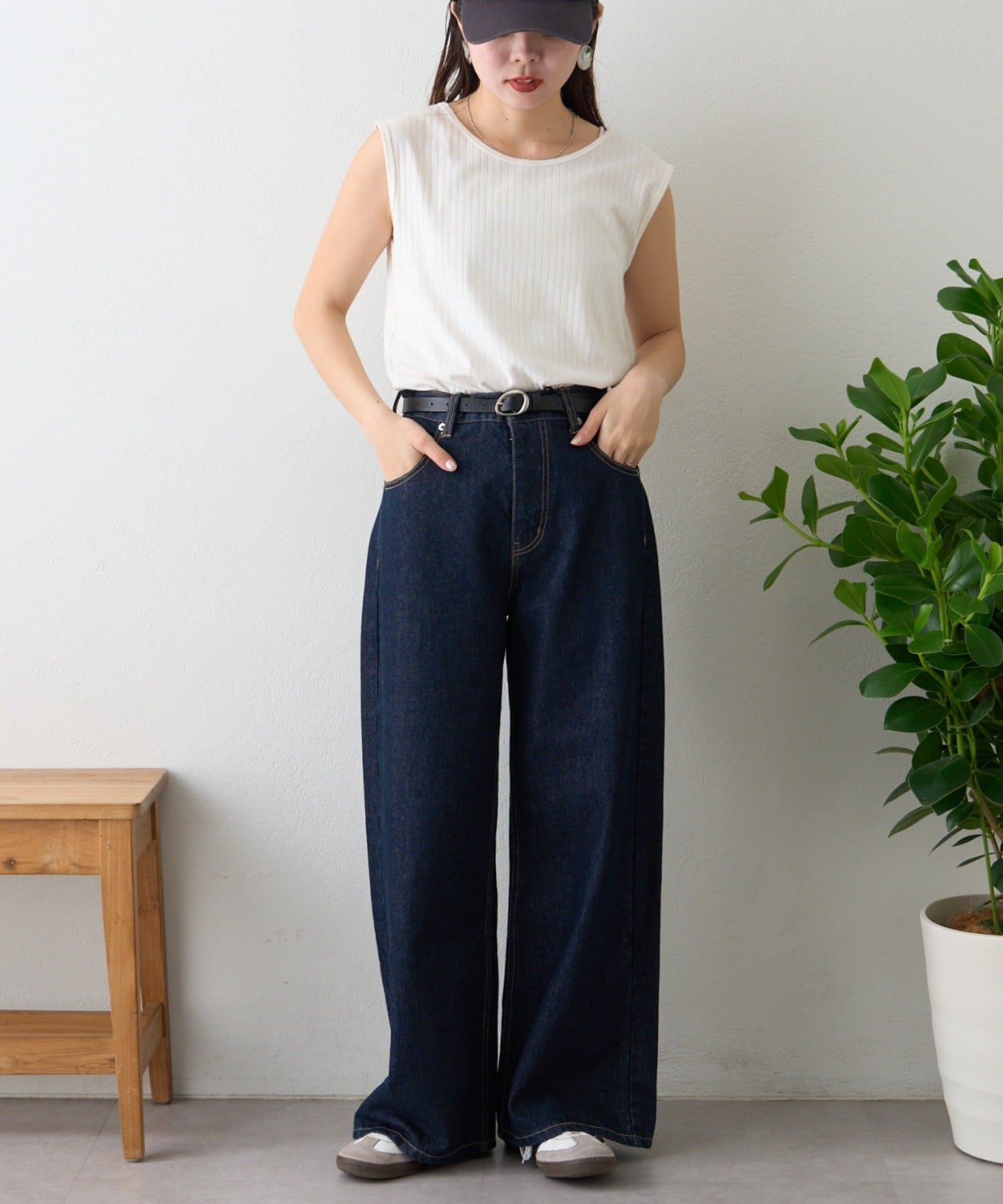 デニムやスラックス、スカートと1枚で着こなす涼し気コーデもおすすめです。