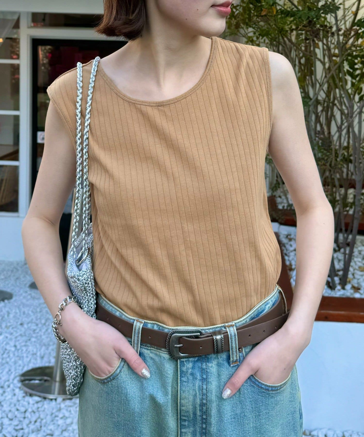 肩部分が太めになっているので安心感があり、夏は1枚で着ても◎