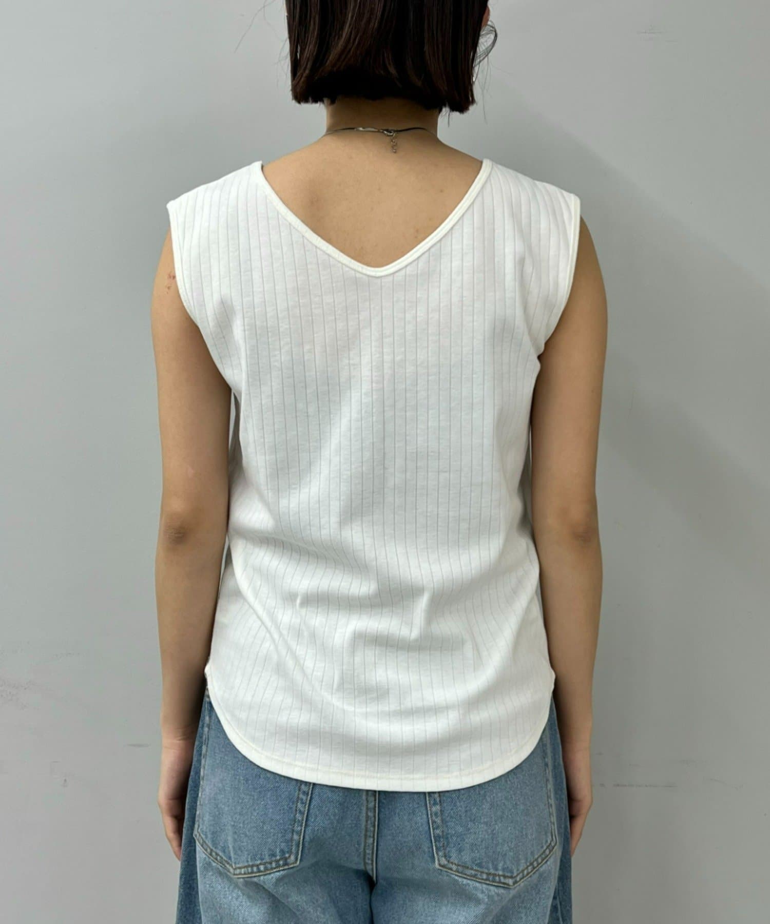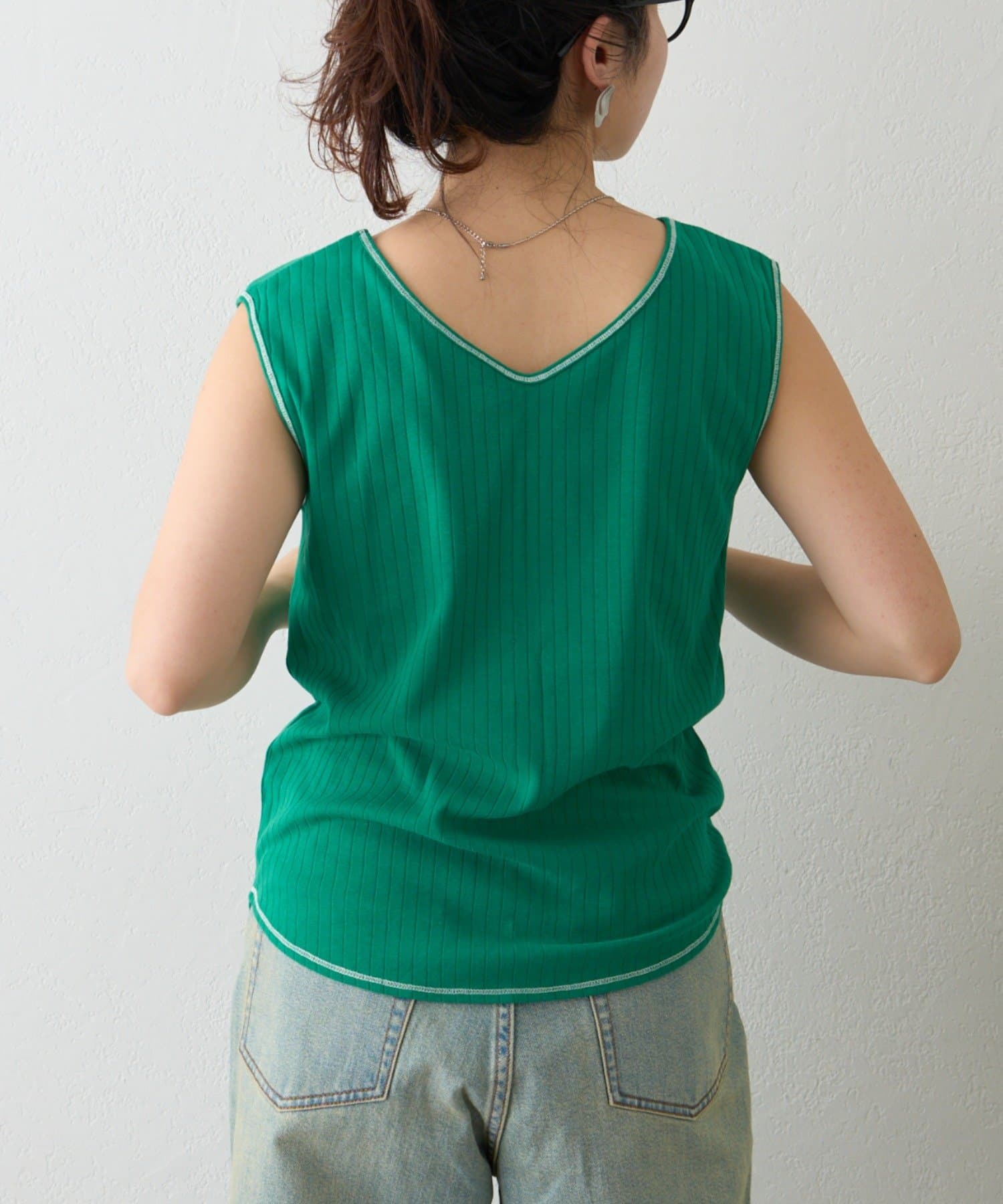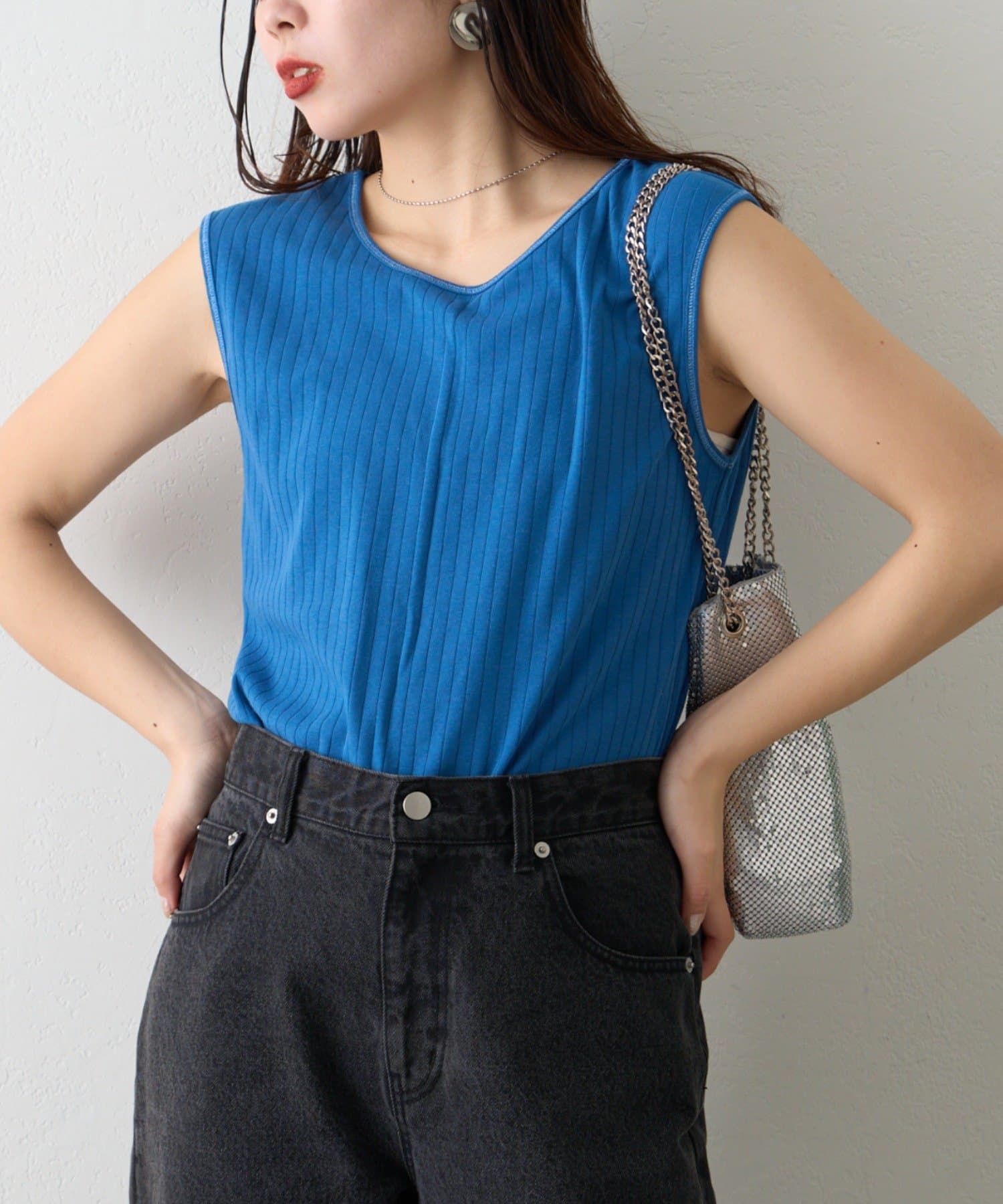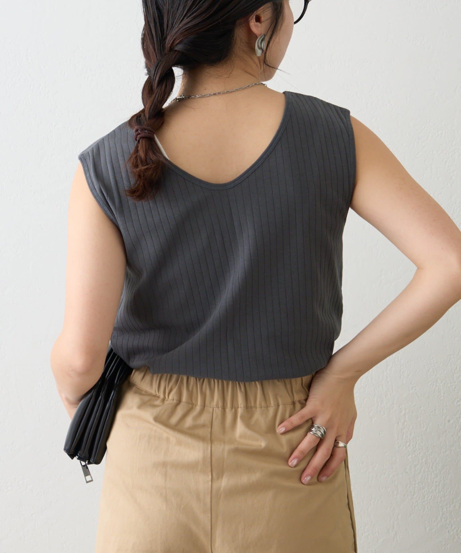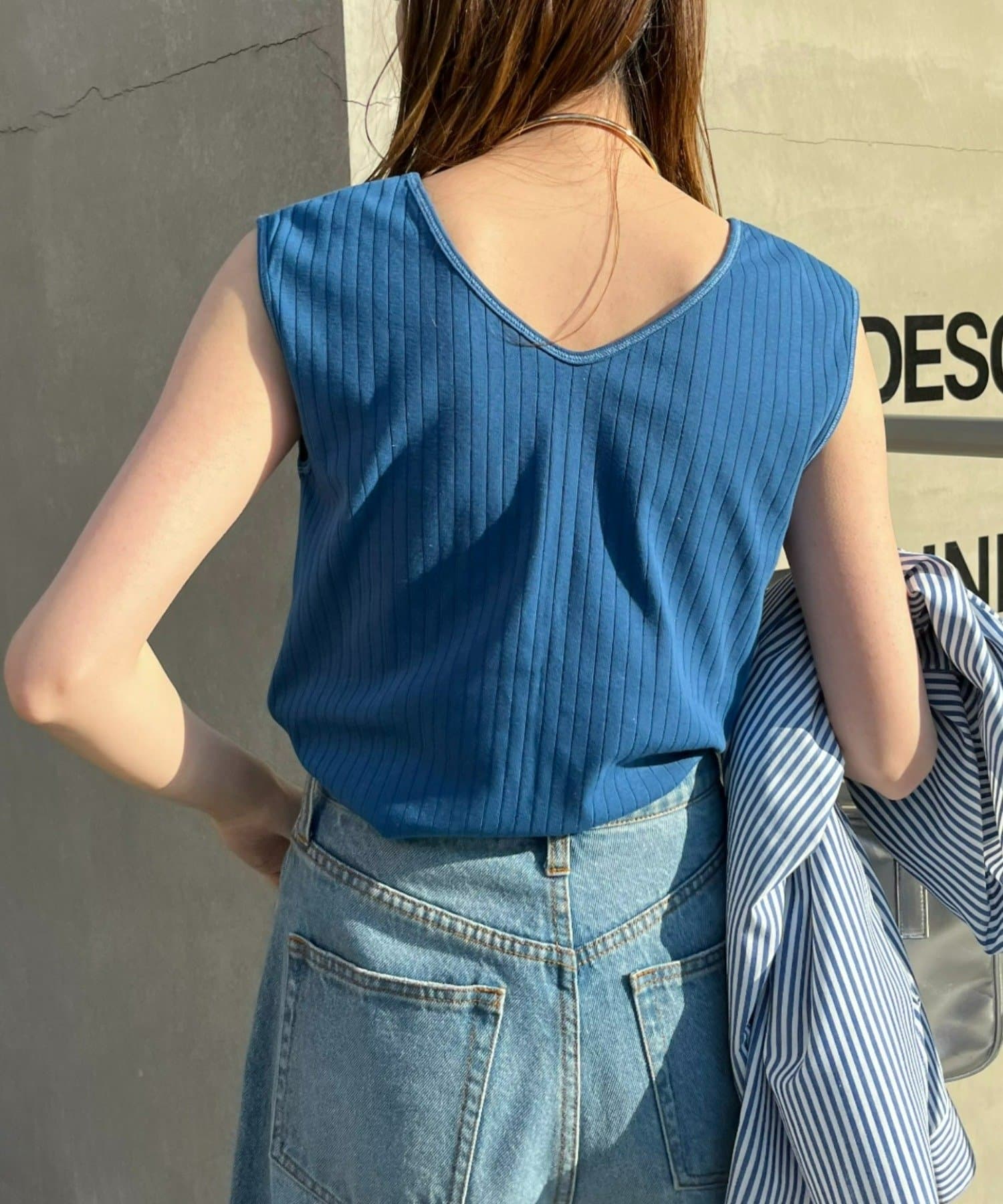 Vネックとクルーネックの前後2WAYで着用いただける便利なタンクトップ。