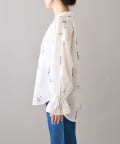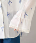 トレンドのシアーシャツに花柄の刺繍を施し、女性らしい印象に。