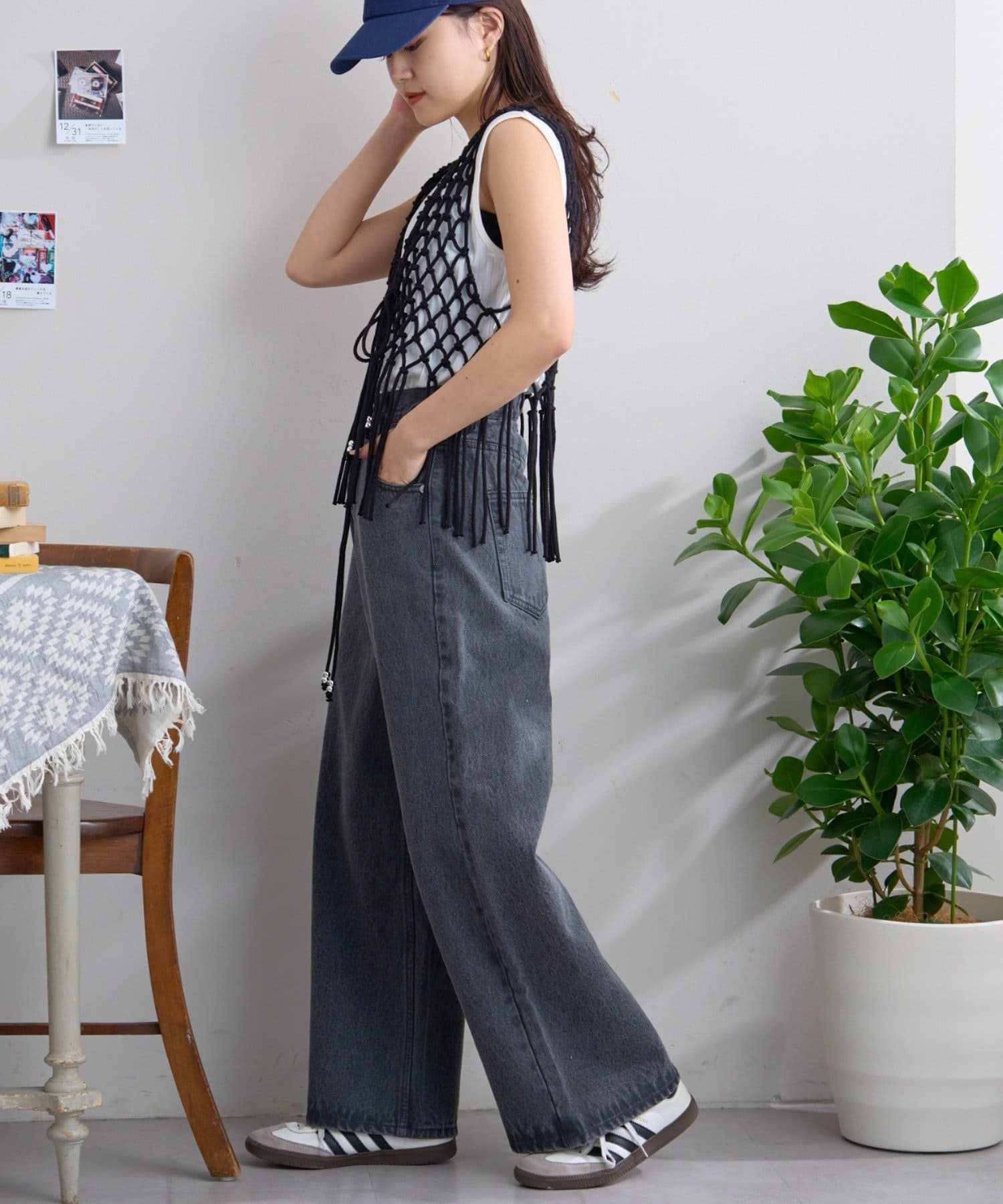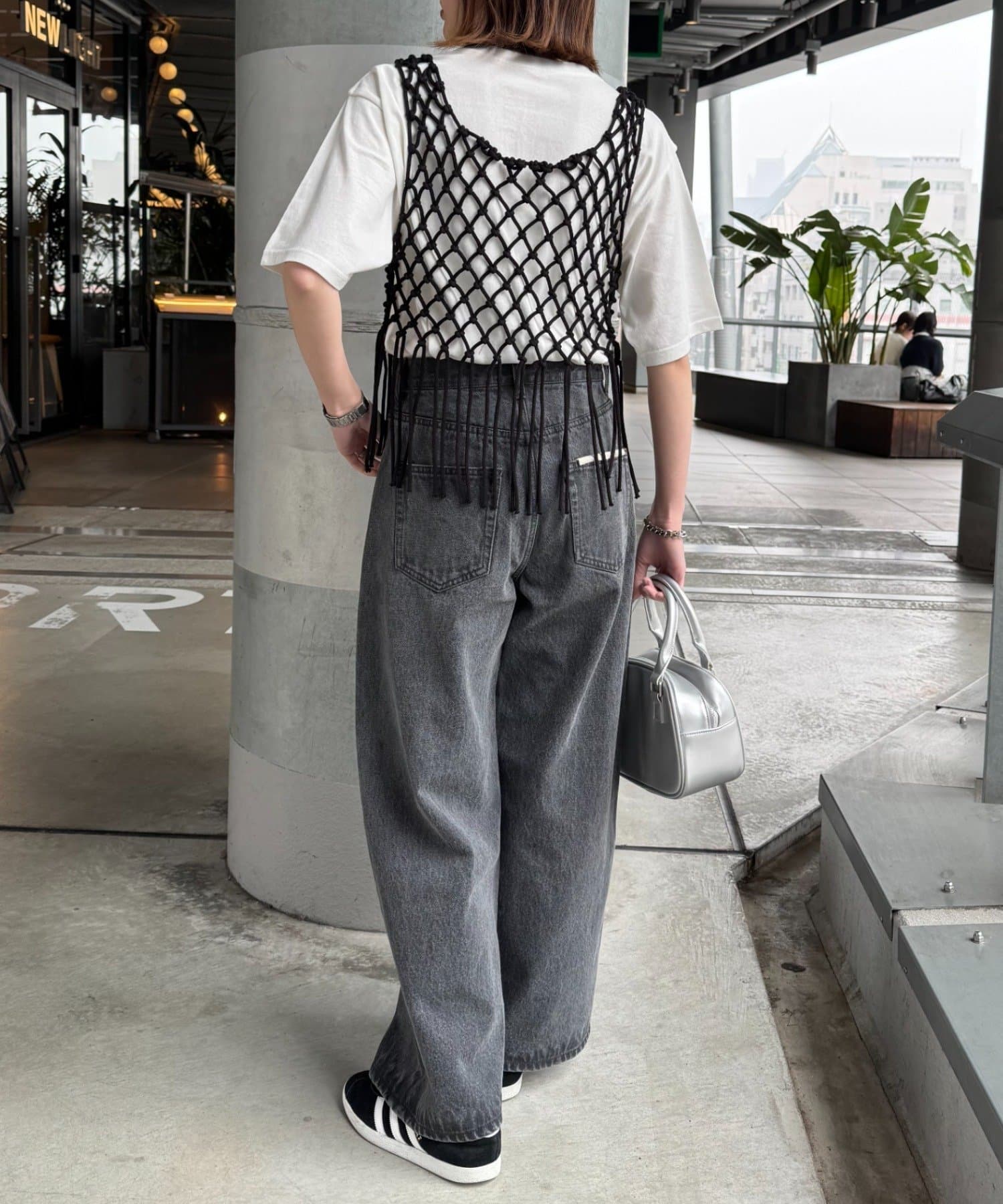 裾部分の長めにフリンジが、コーデのアクセントにぴったり!