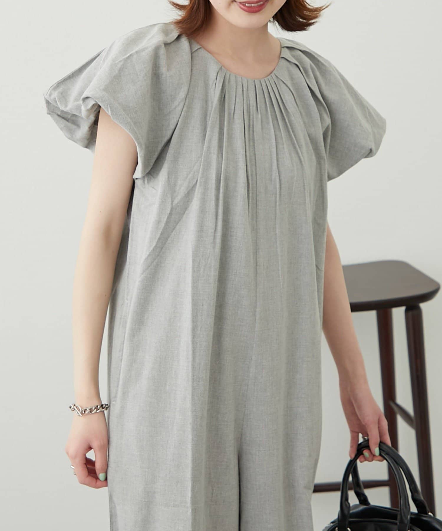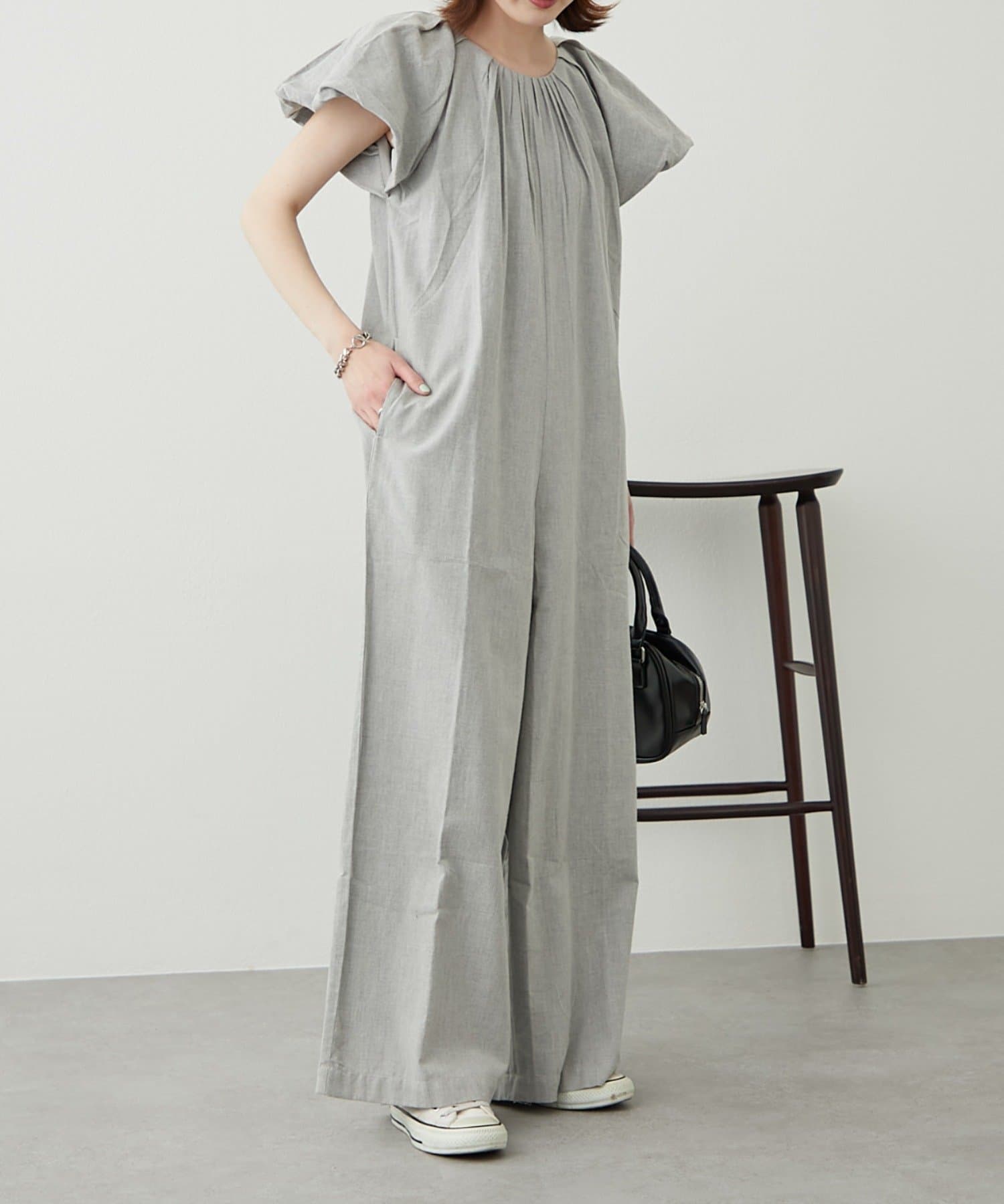 バルーンスリーブが大人可愛い♪ゆったりシルエットオールインワン