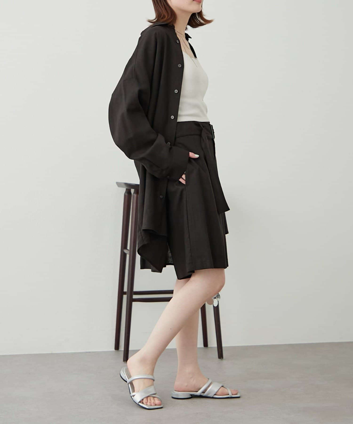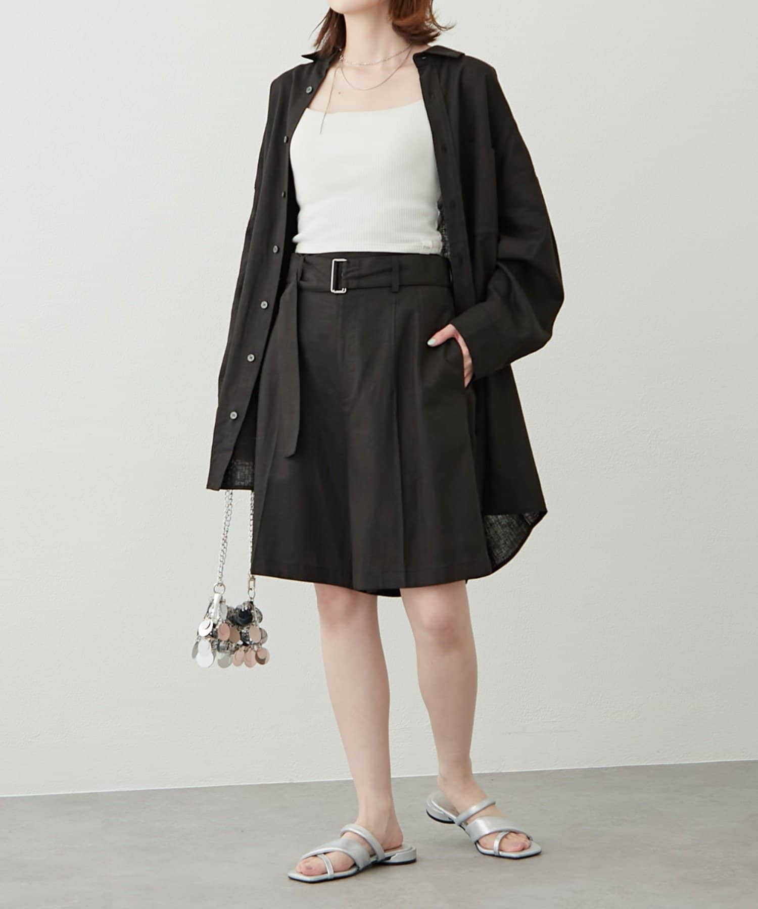 タンクトップやキャミに、セットアップのチュニックシャツを羽織ると