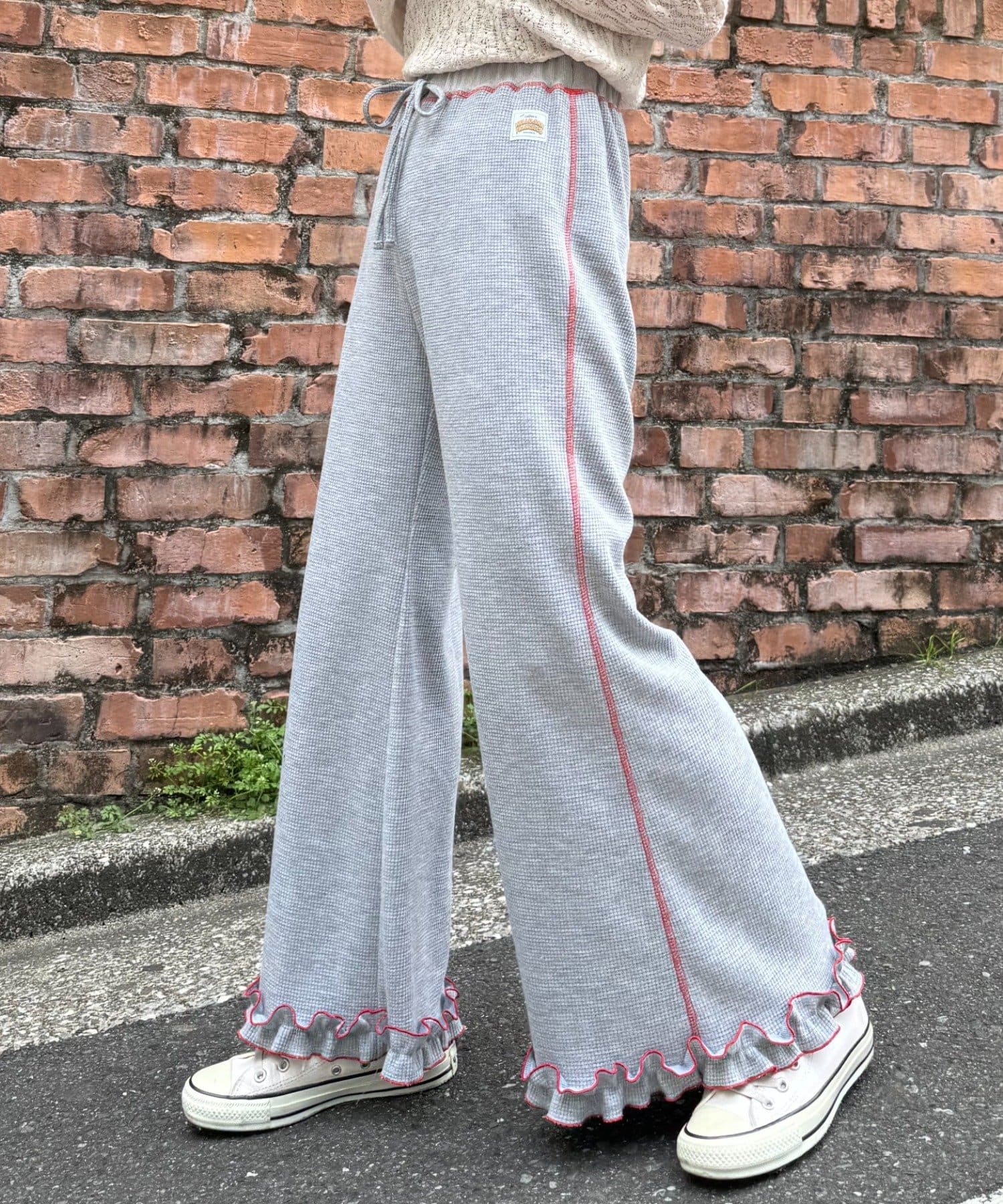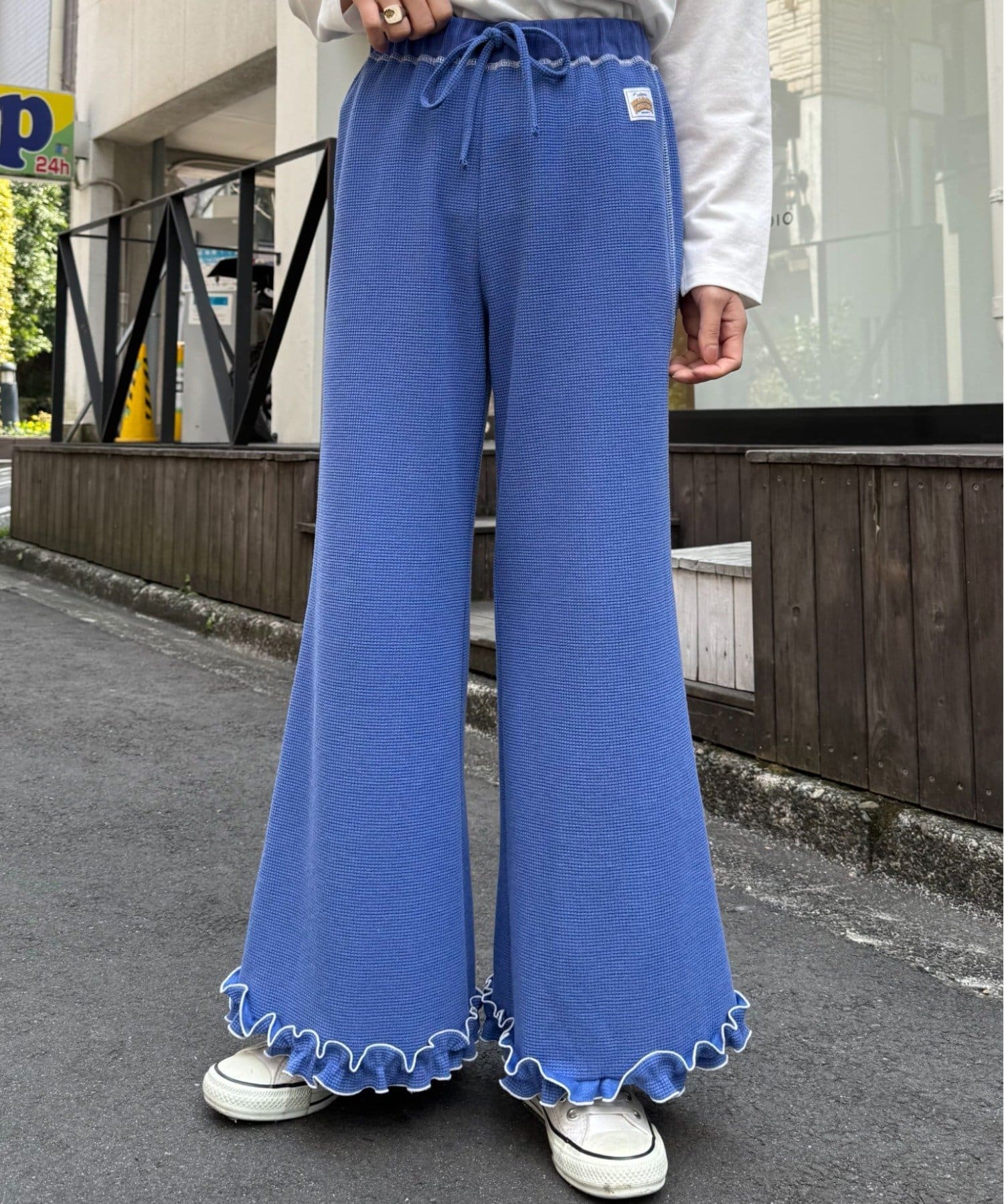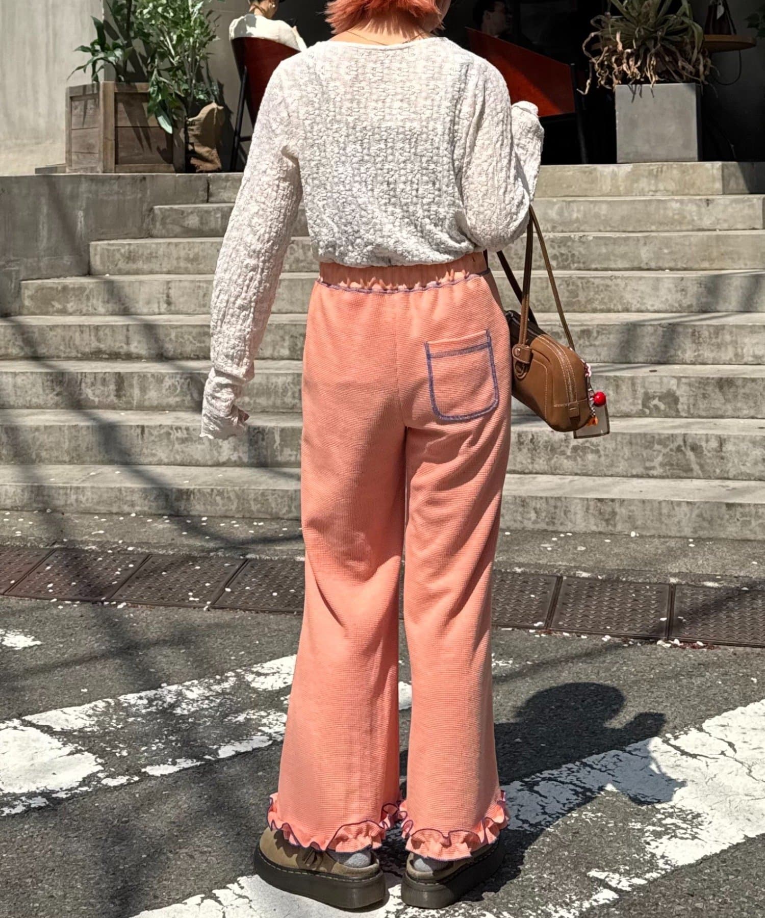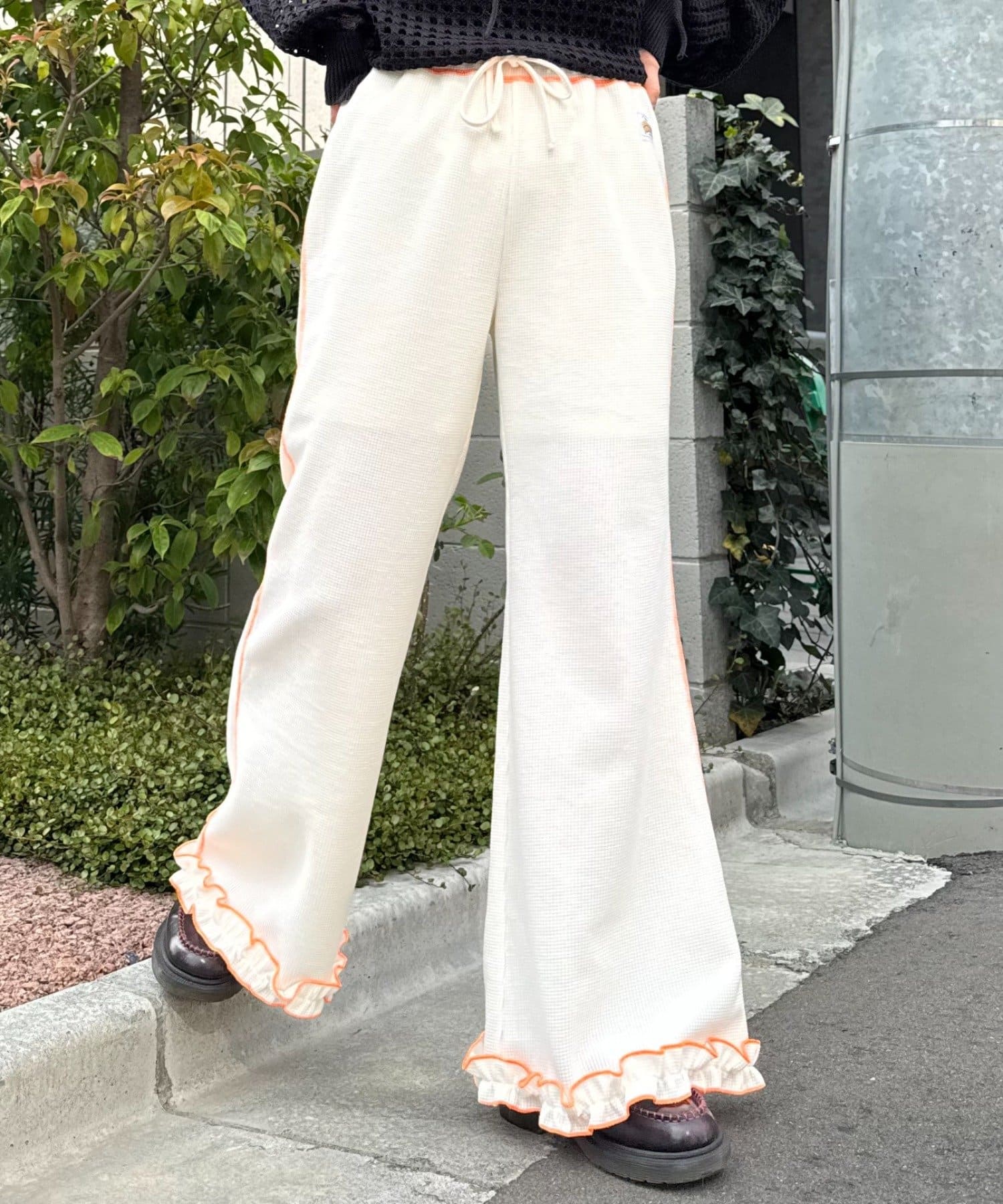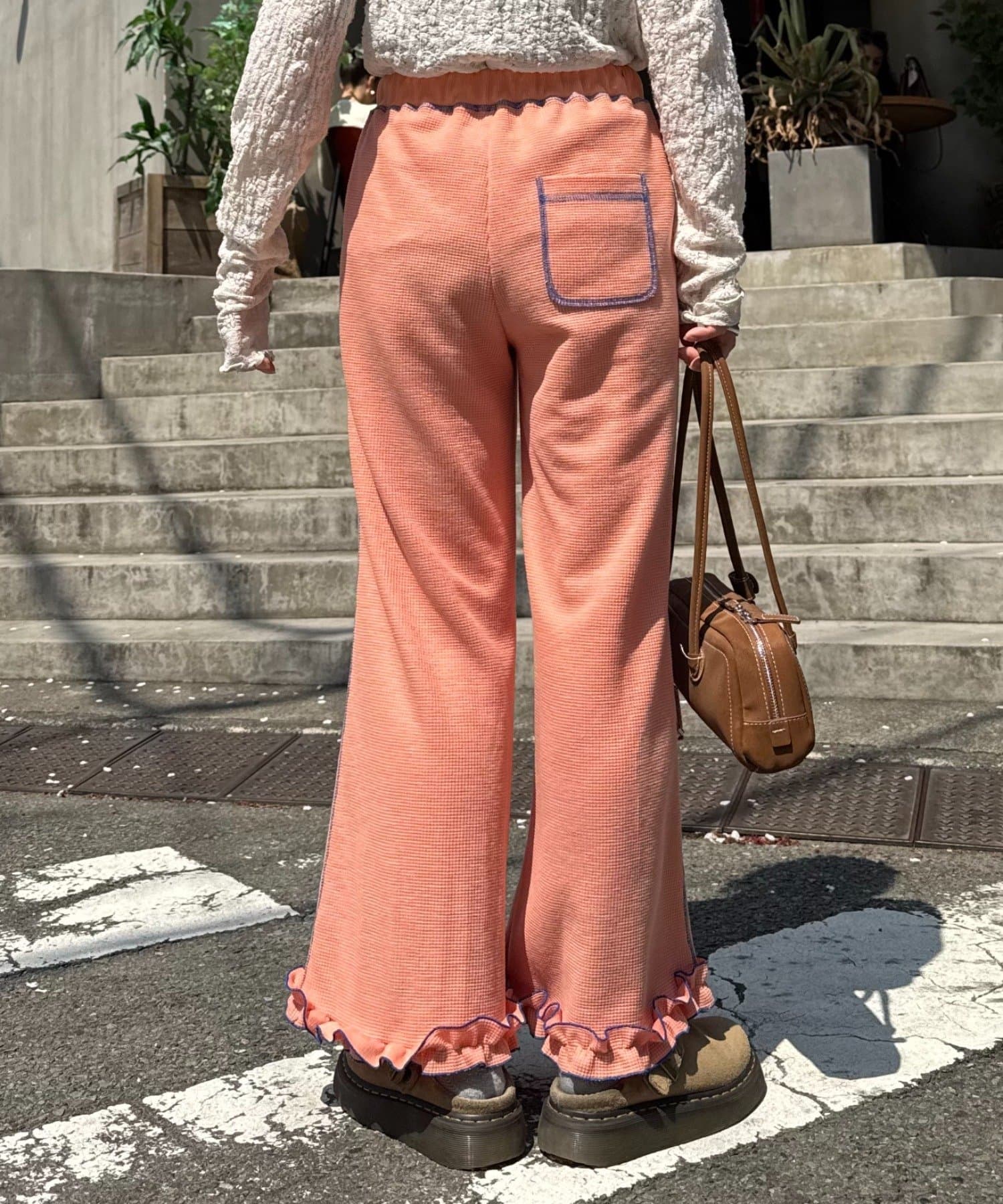 SSの定番、ワッフル生地にフリルをプラス!履き心地とデザイン性どちらも叶えるパンツができました♪