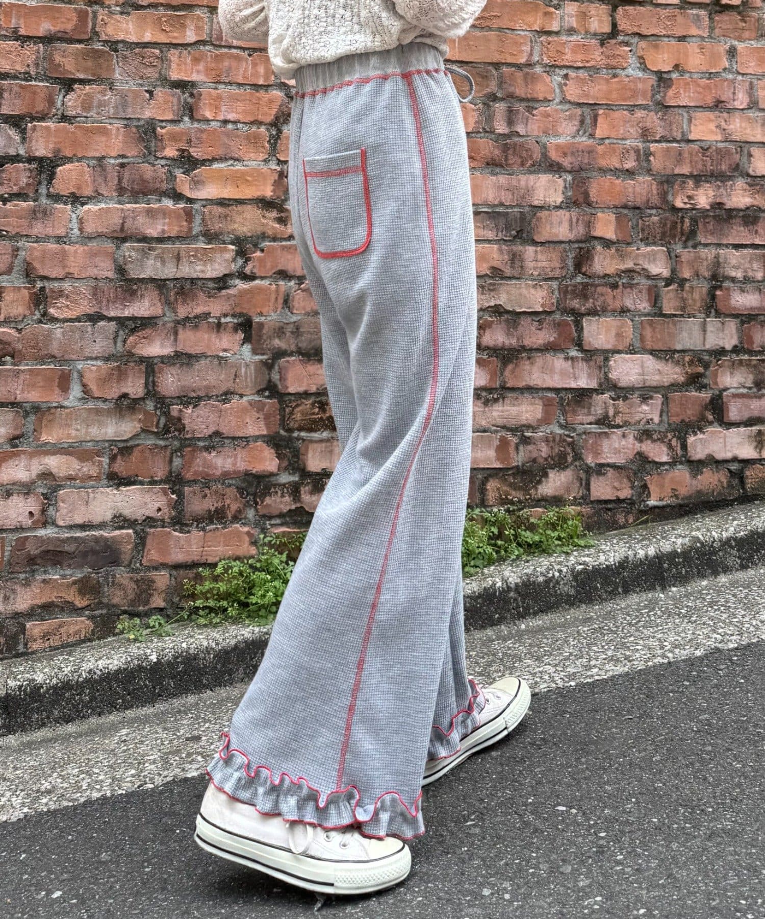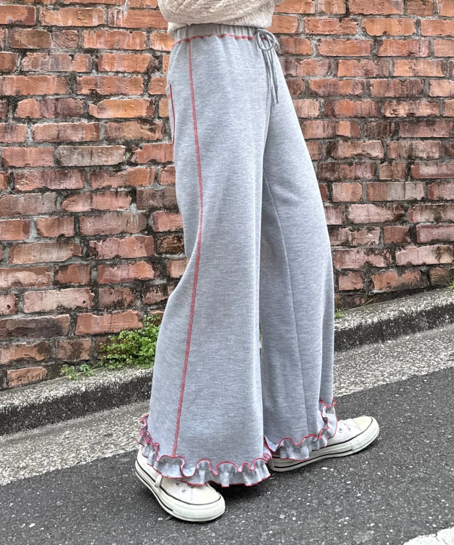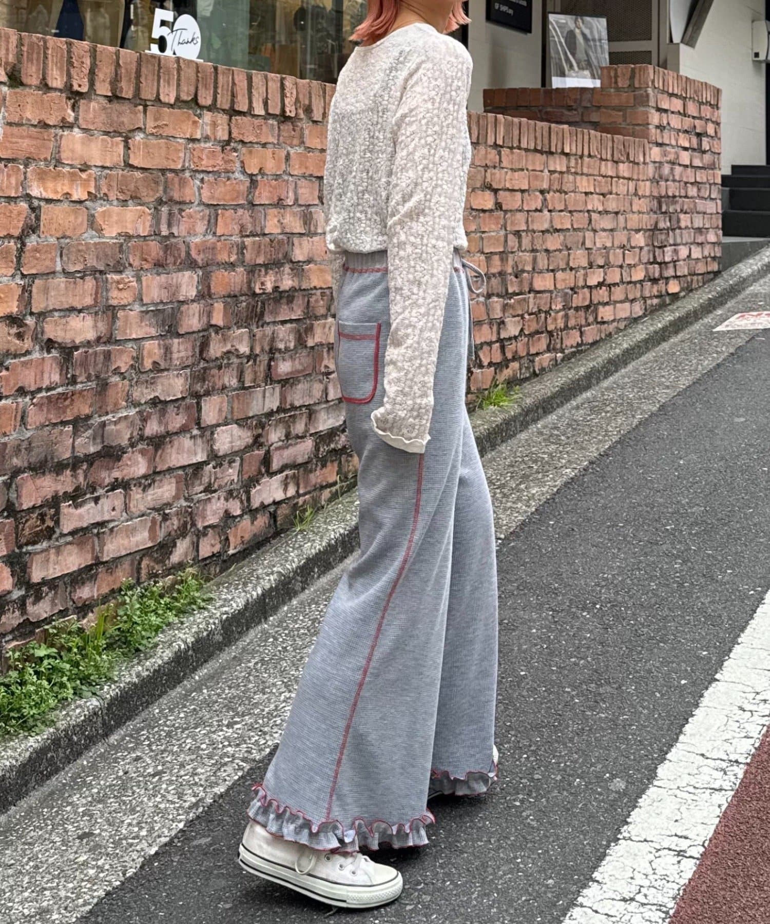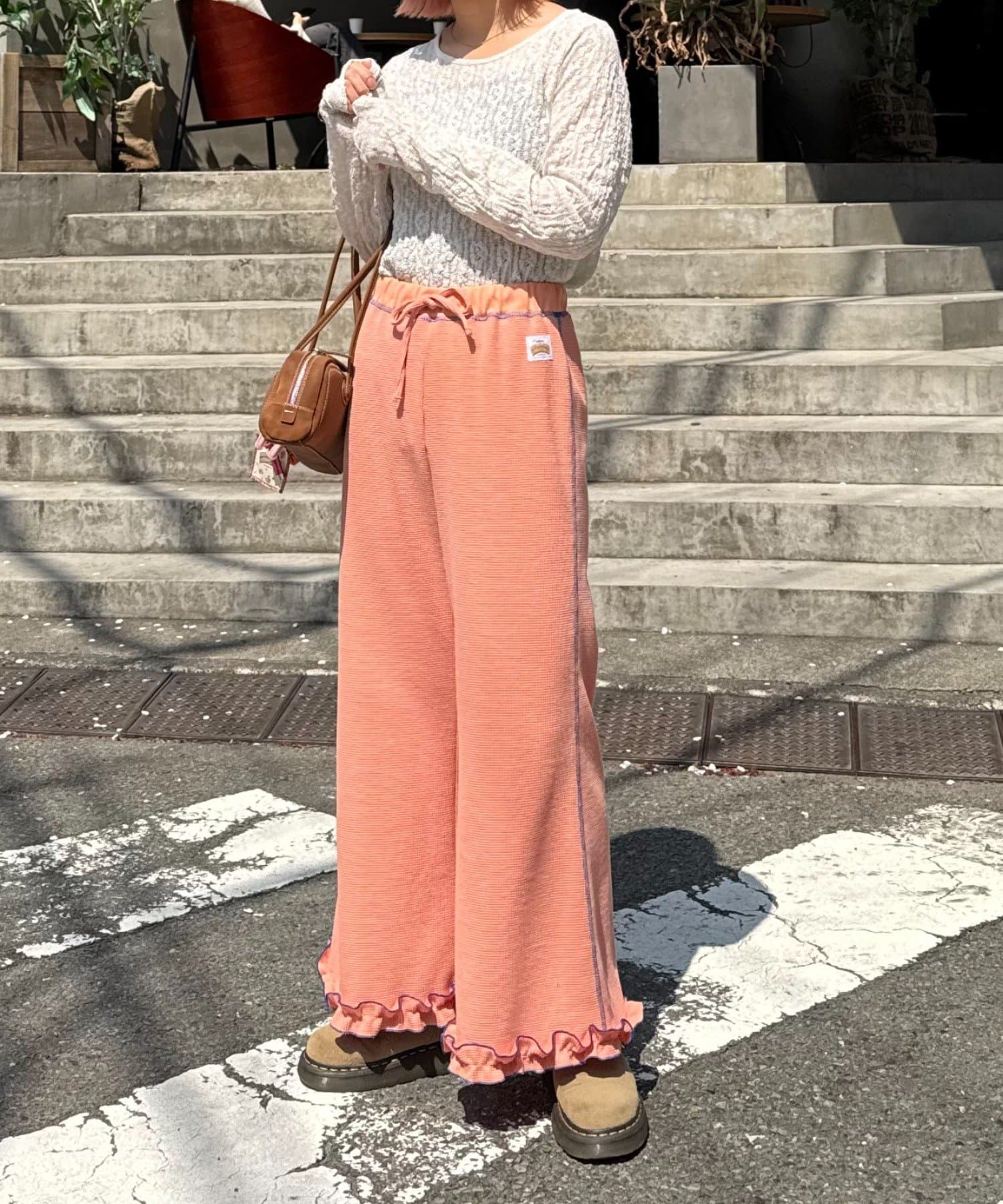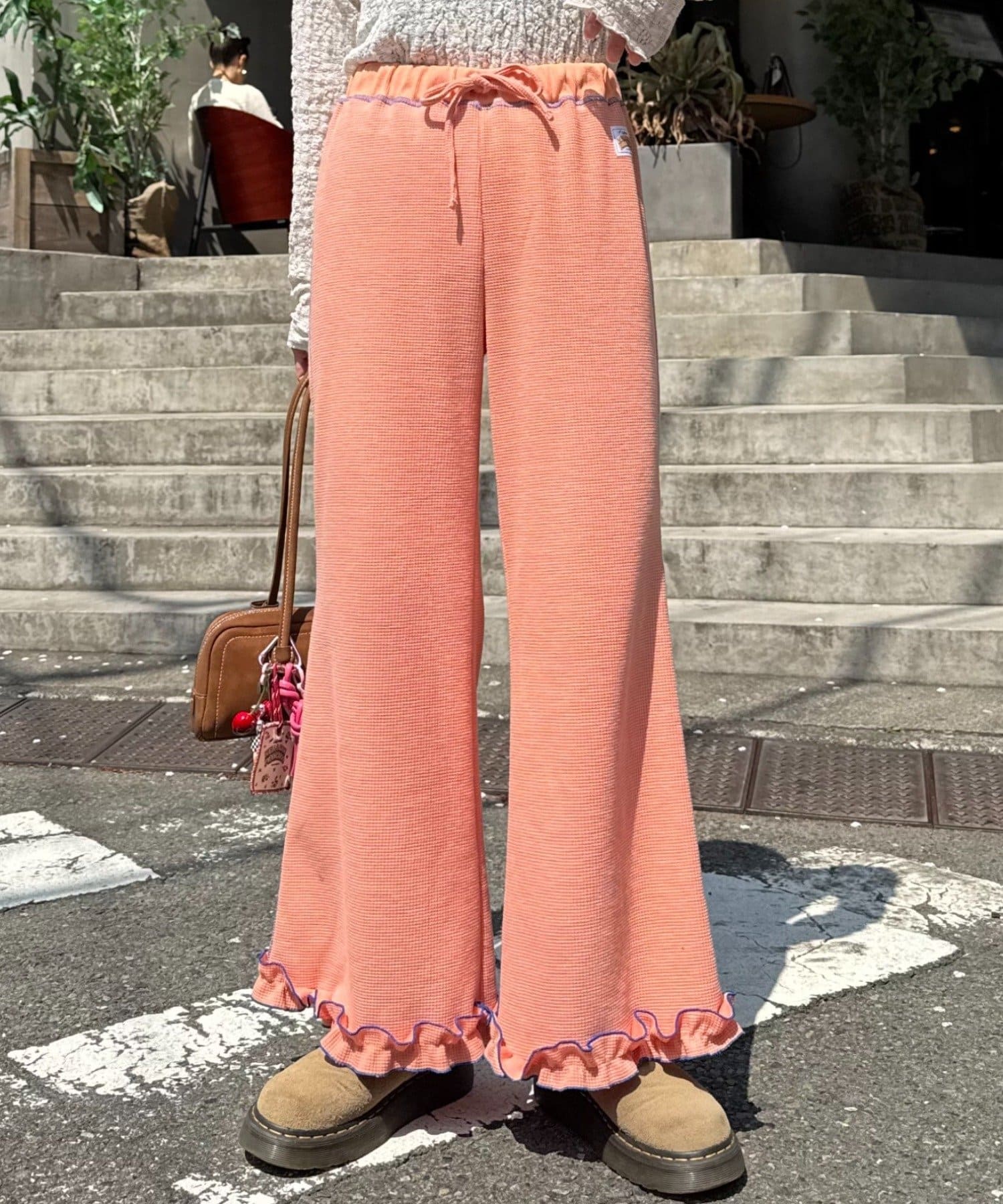 SSの定番、ワッフル生地にフリルをプラス!履き心地とデザイン性どちらも叶えるパンツができました♪