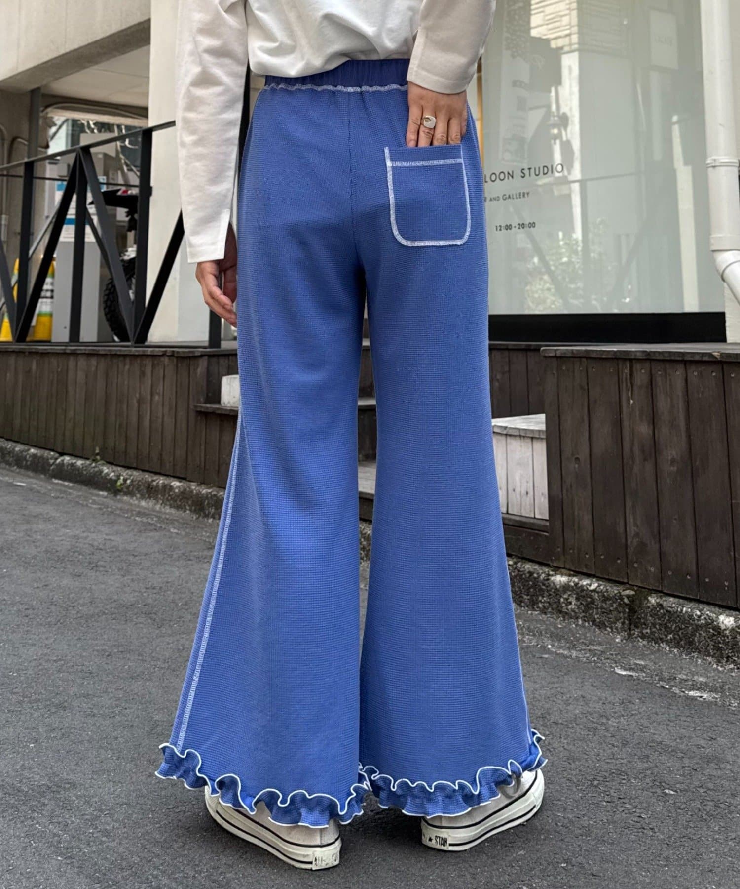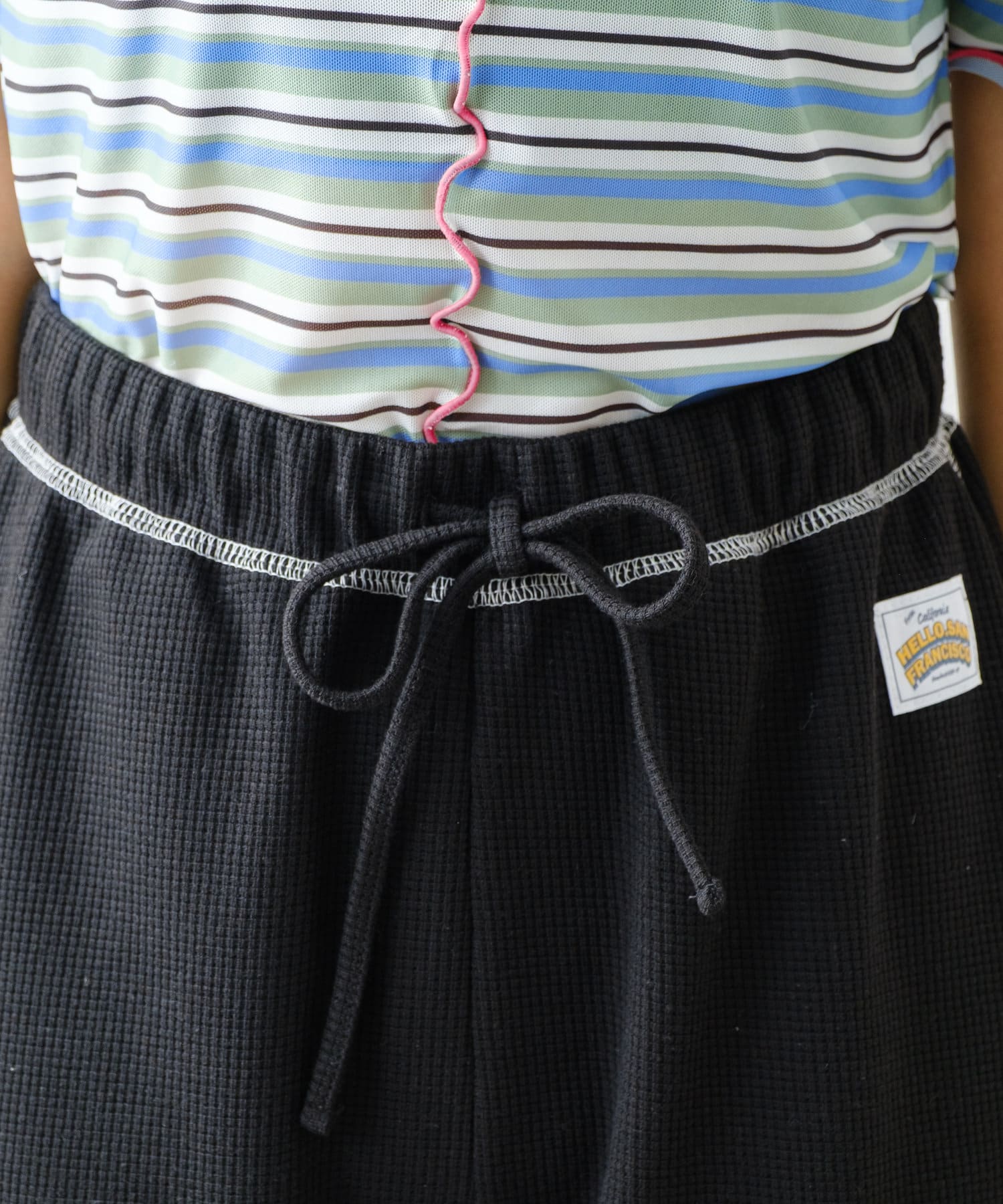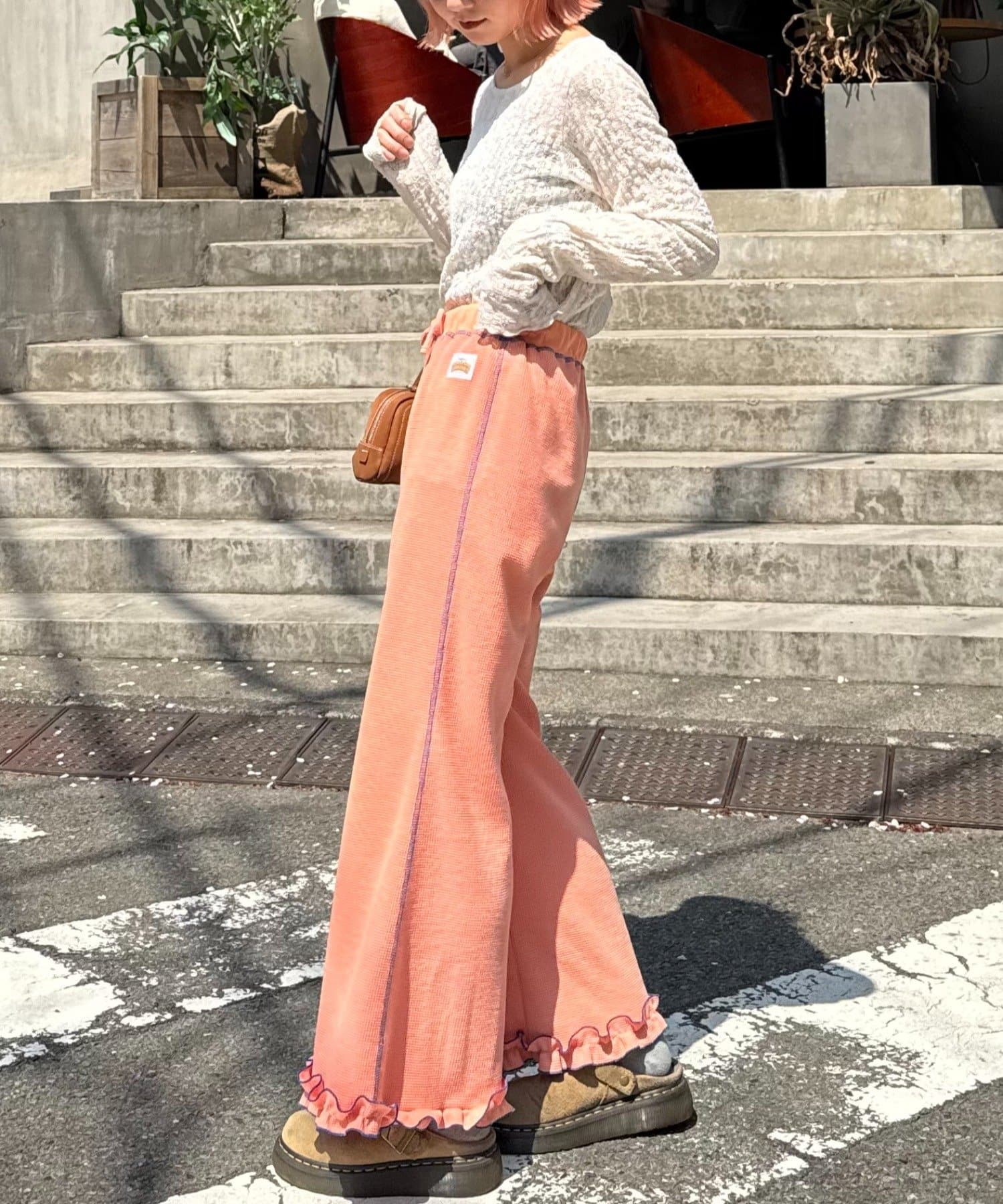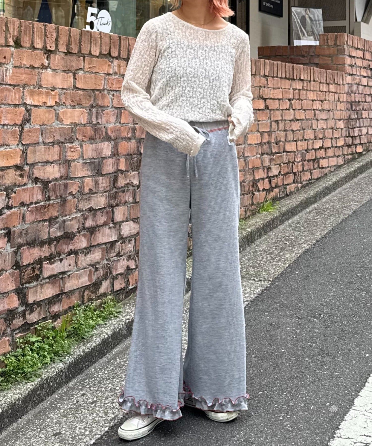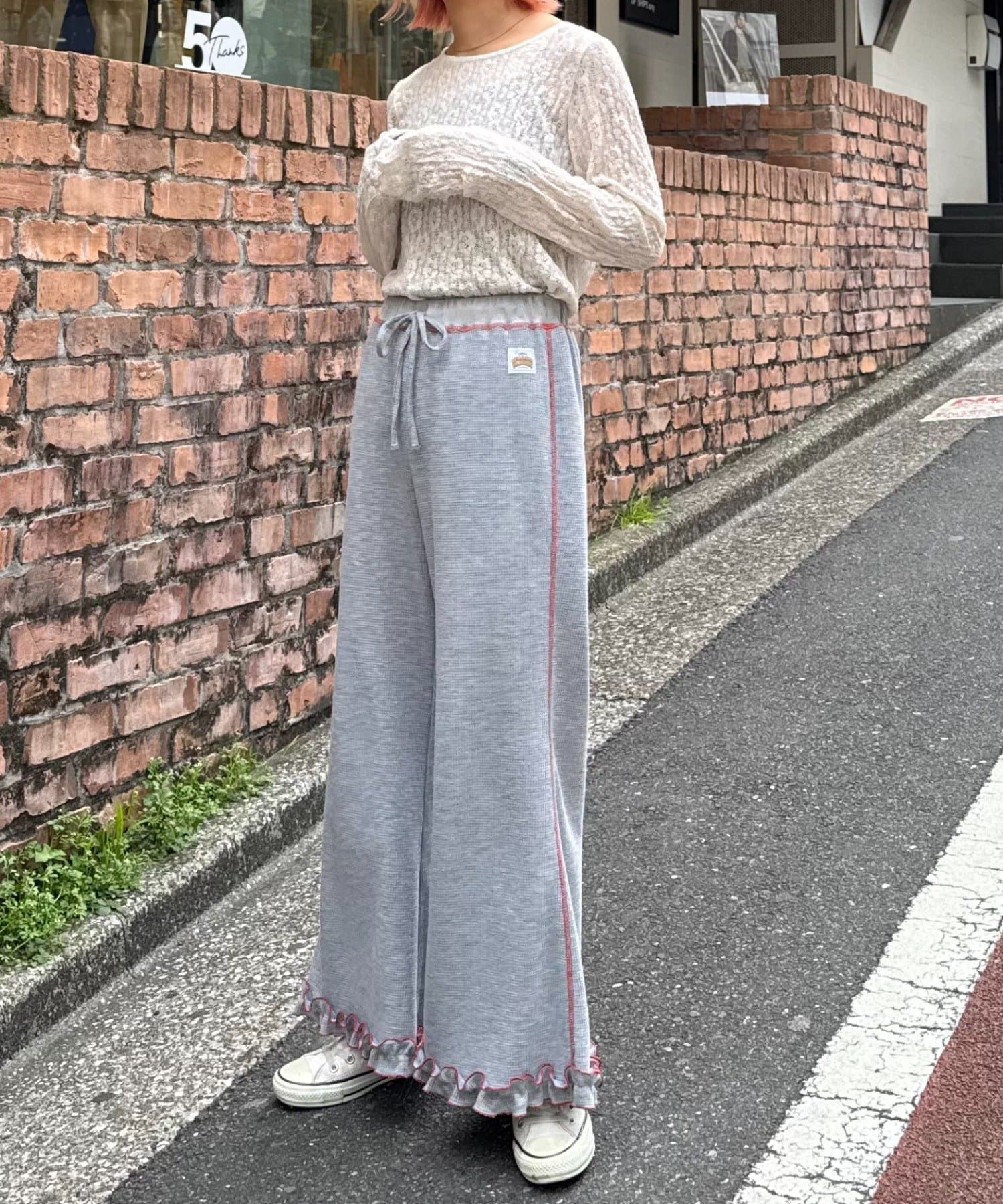 SSの定番、ワッフル生地にフリルをプラス!履き心地とデザイン性どちらも叶えるパンツができました♪