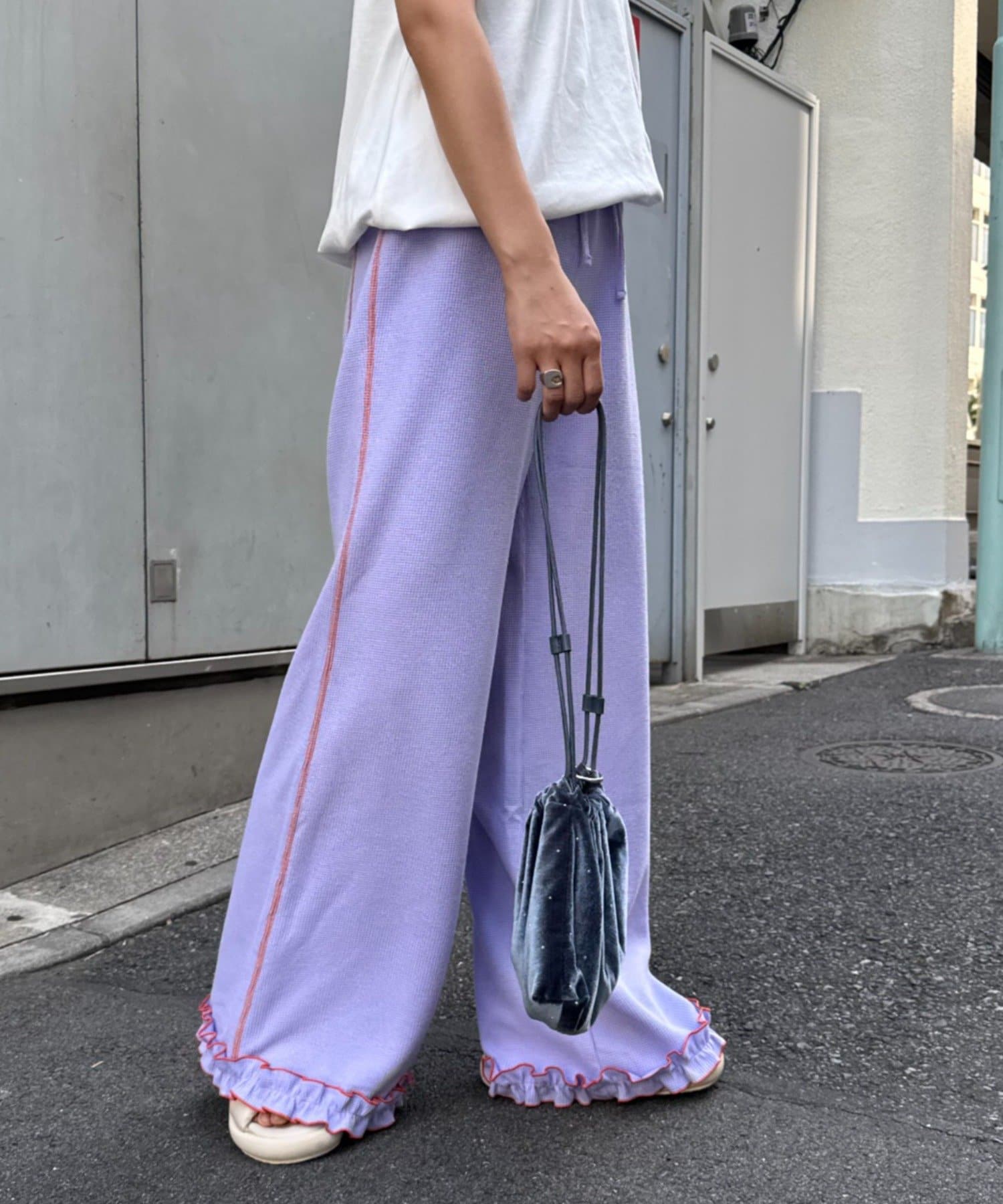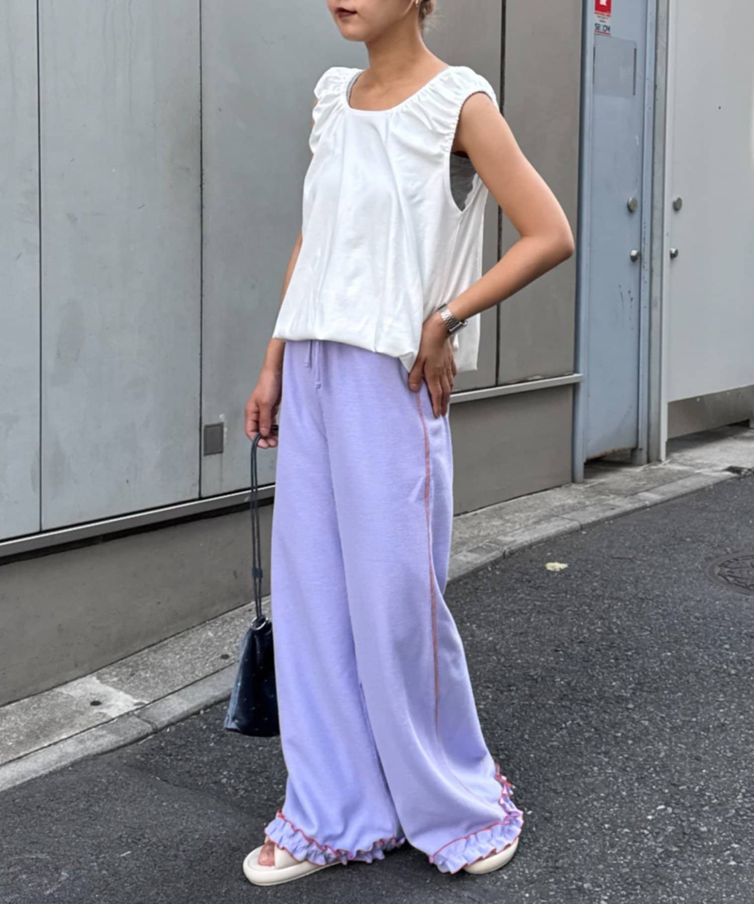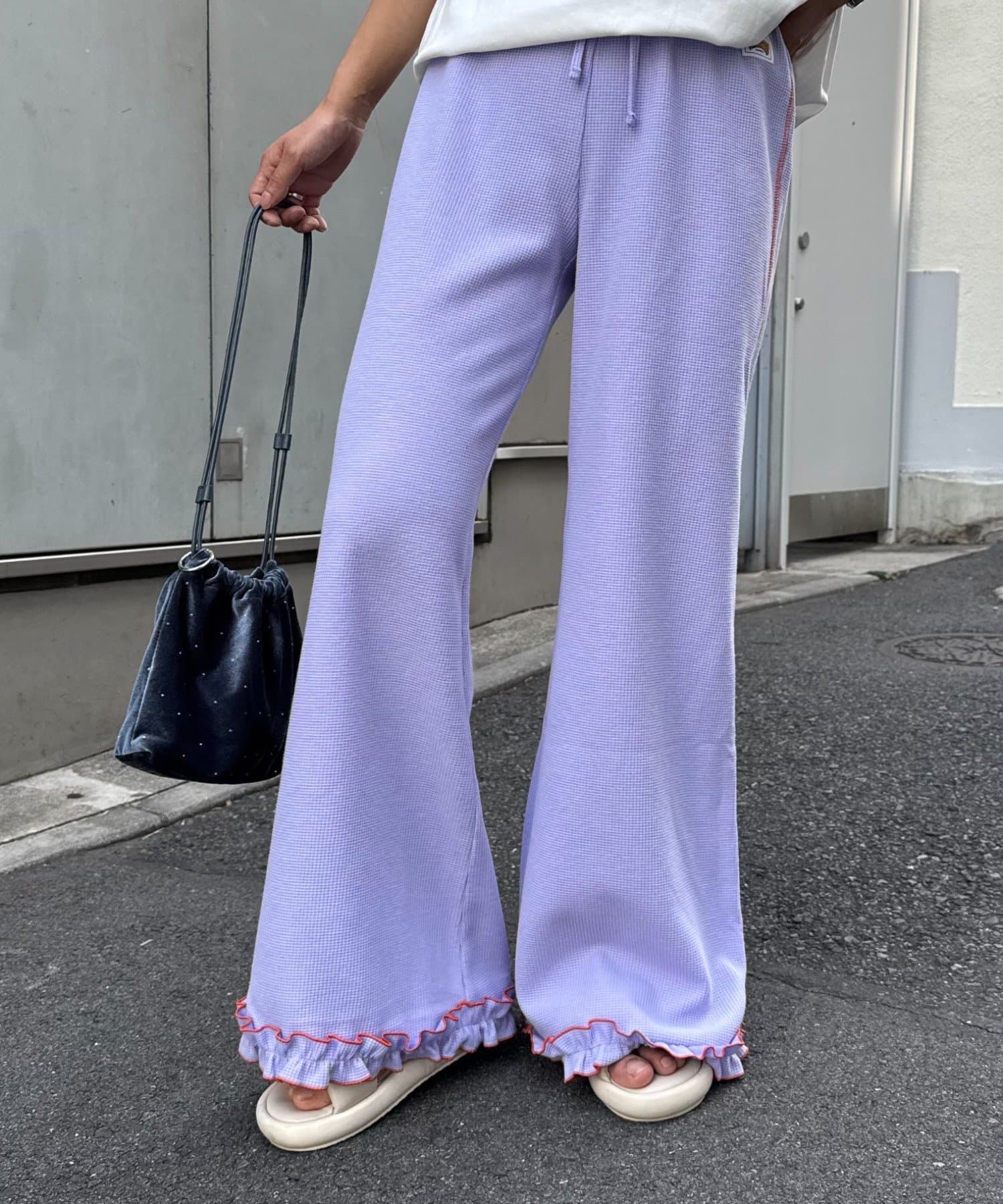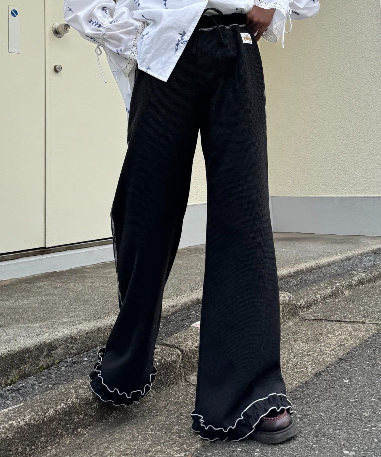 \フレアでシルエットも◎メローフリルが可愛いイージーパンツ/