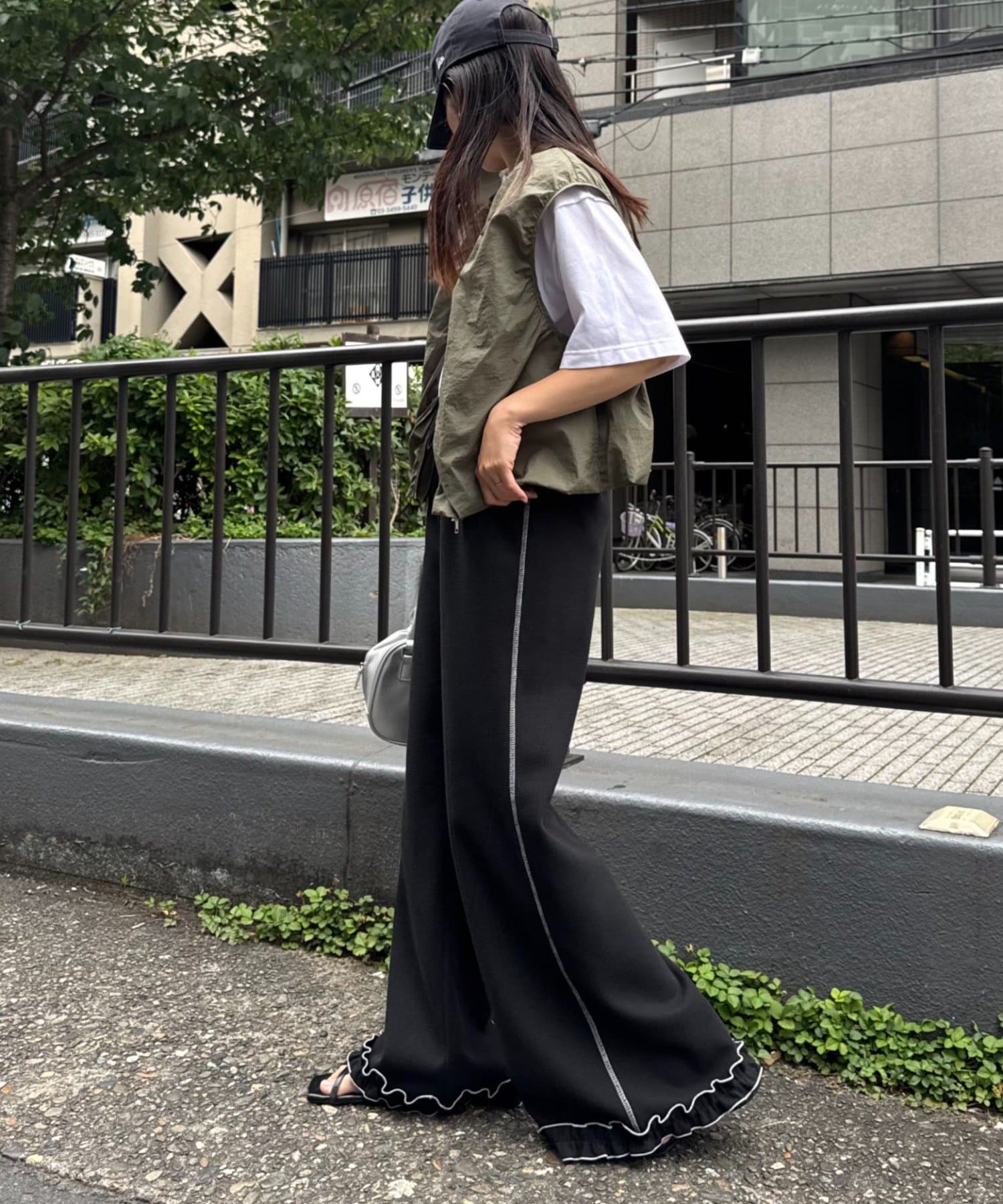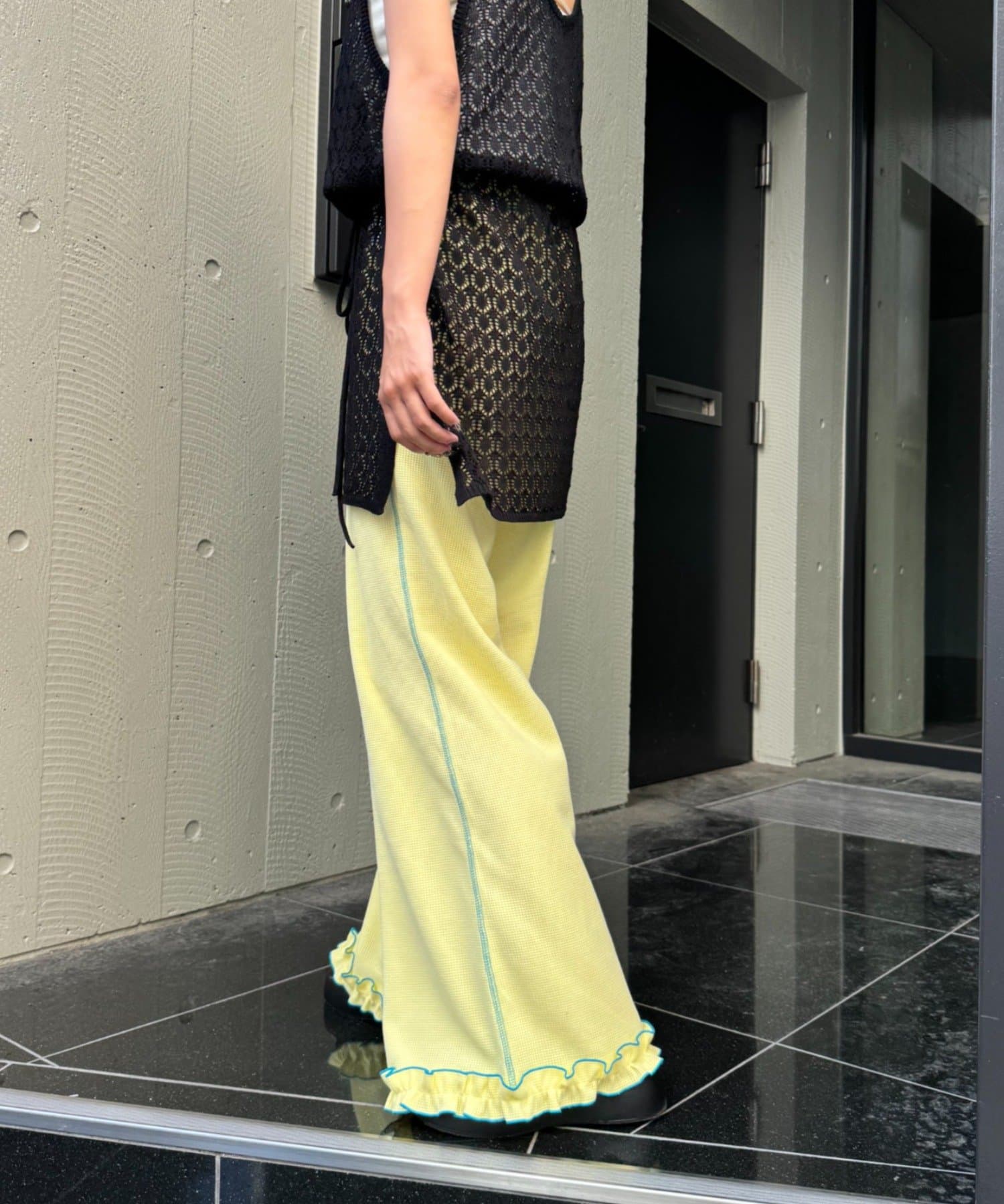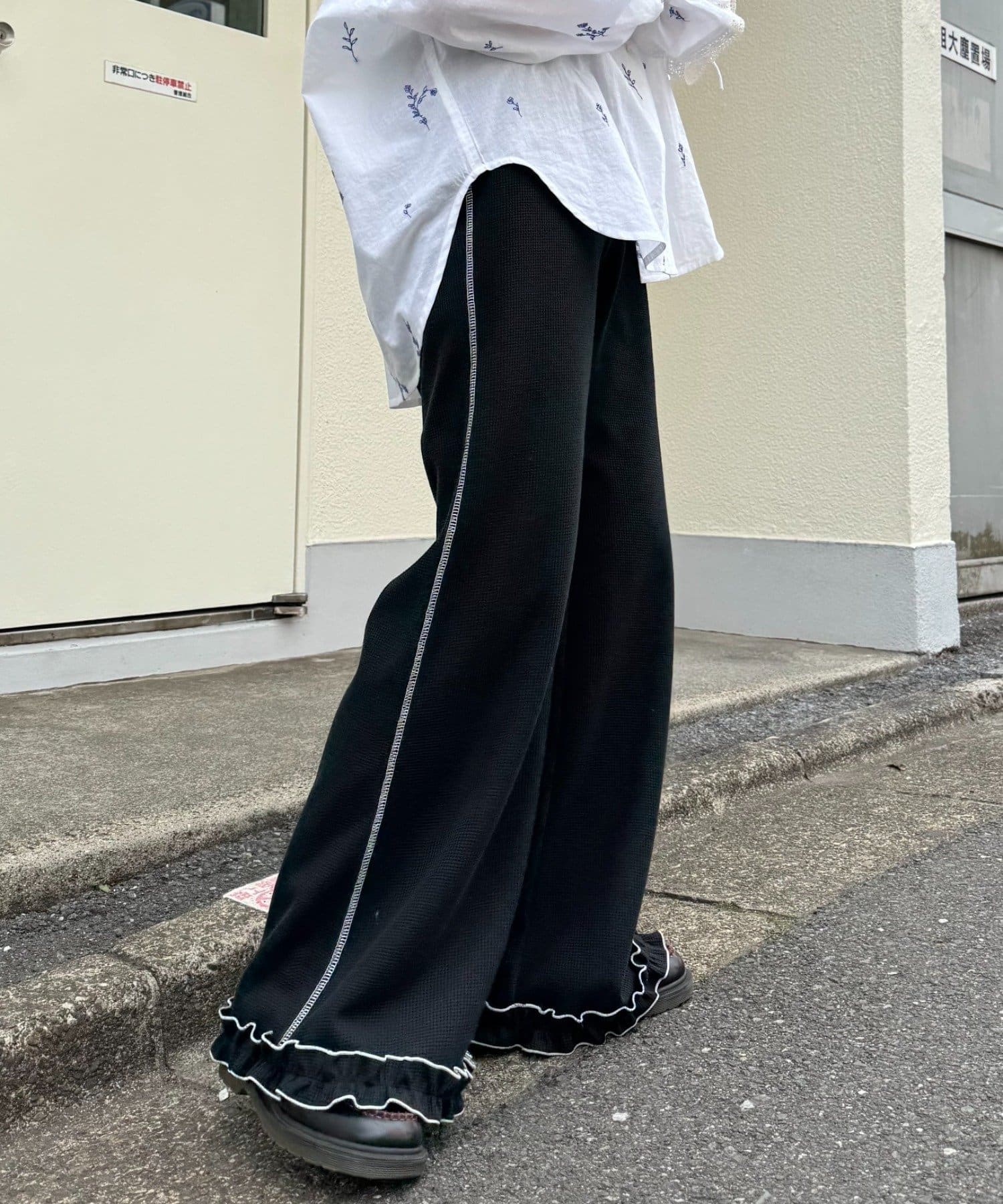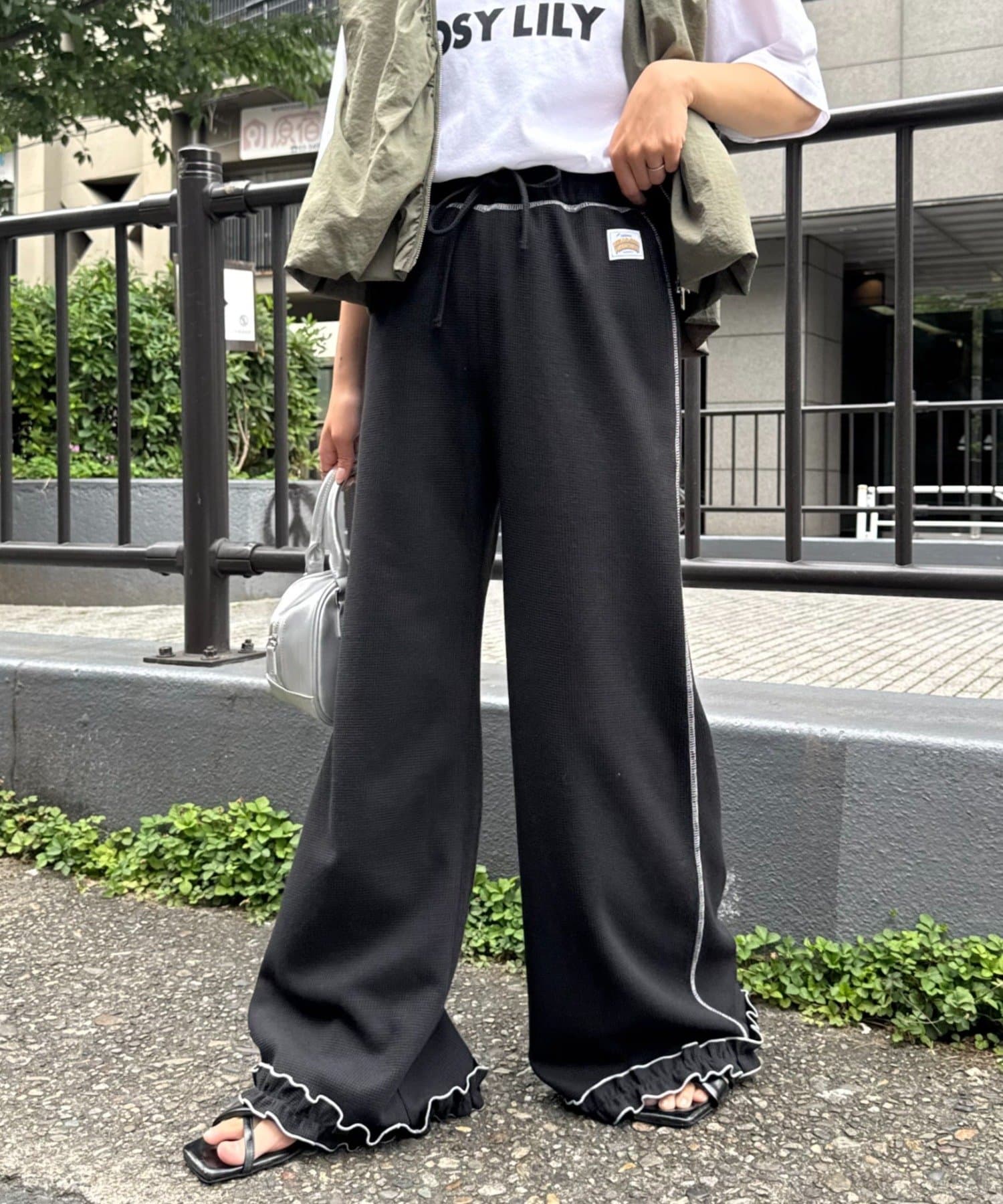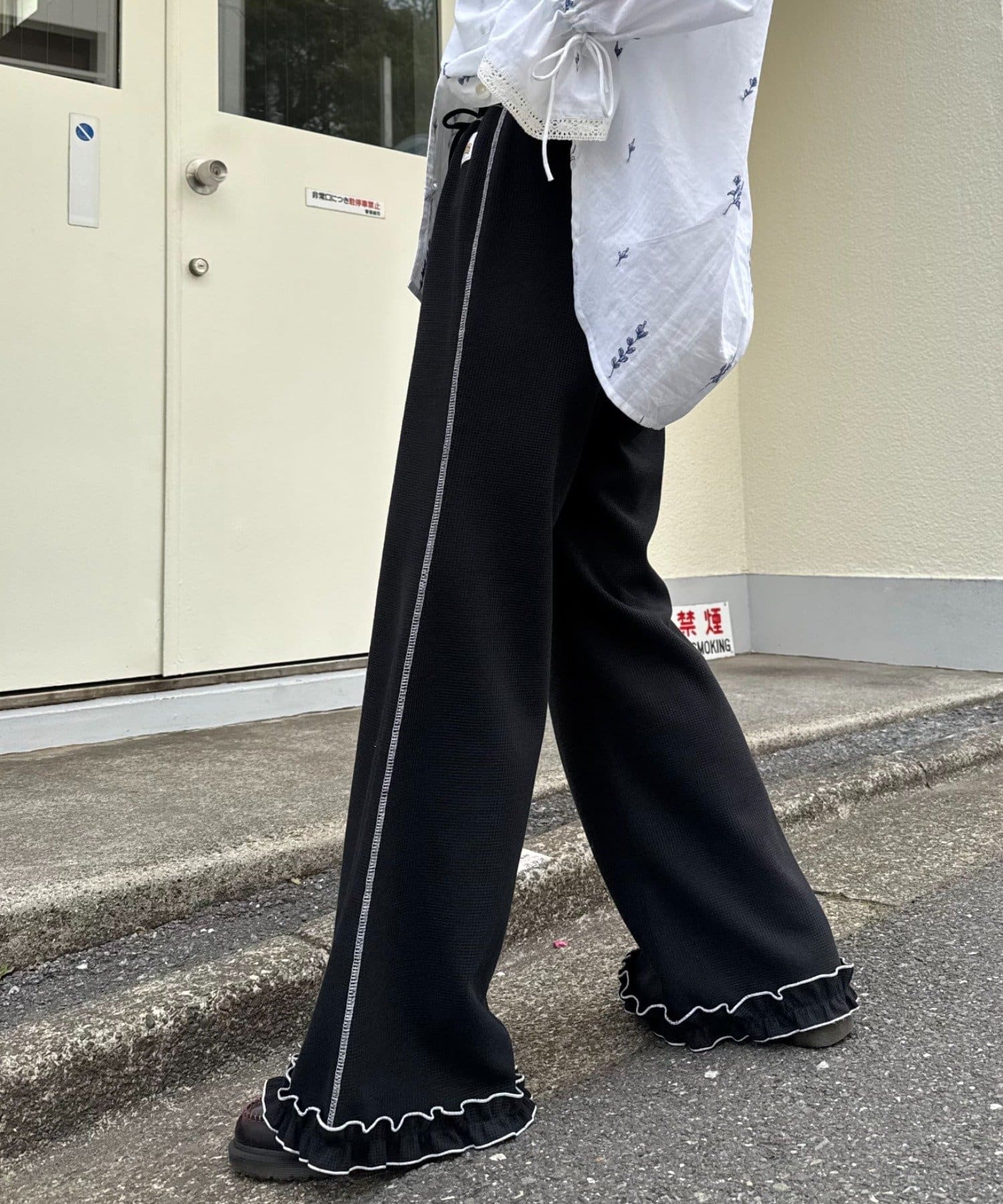 \フレアでシルエットも◎メローフリルが可愛いイージーパンツ/