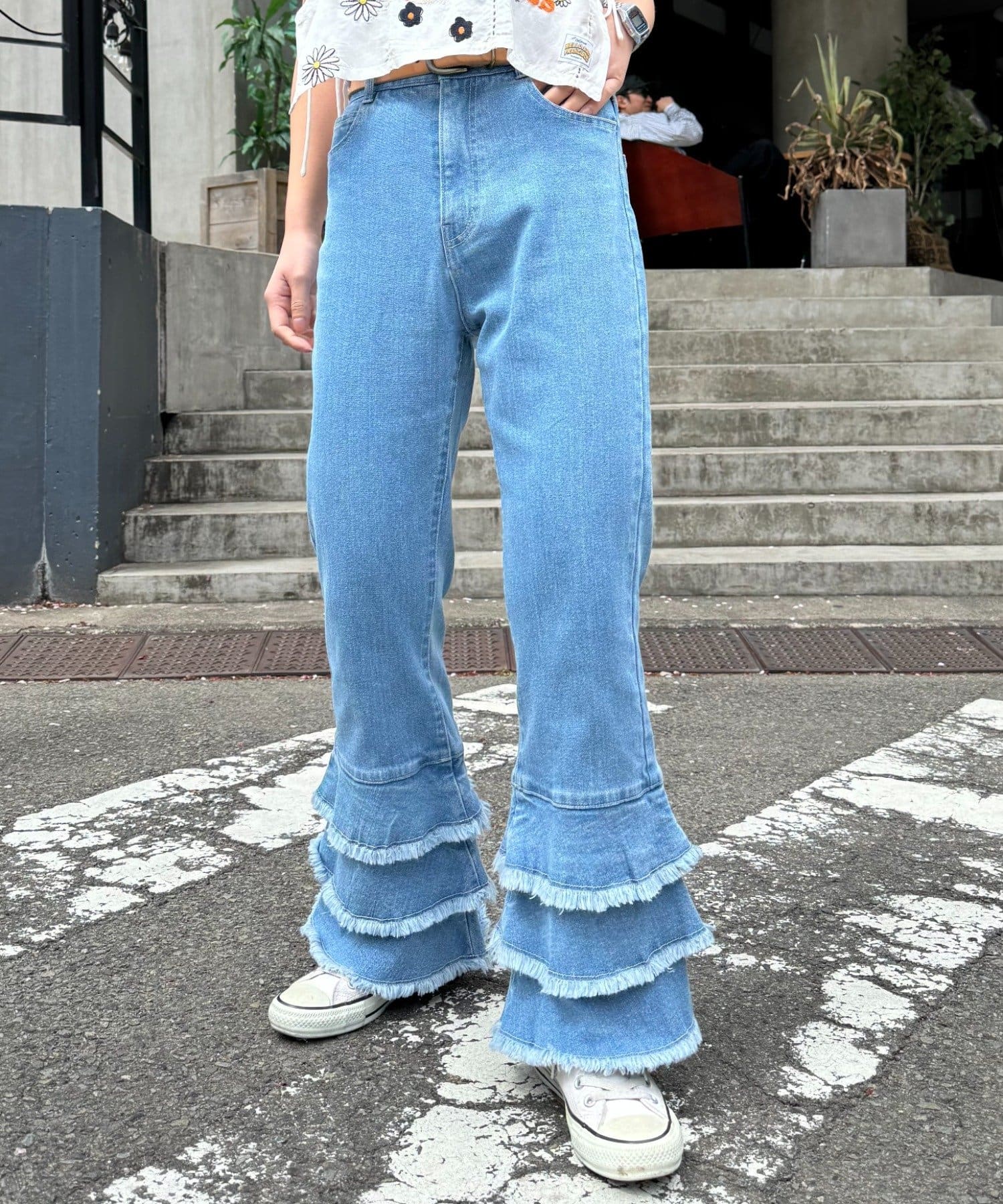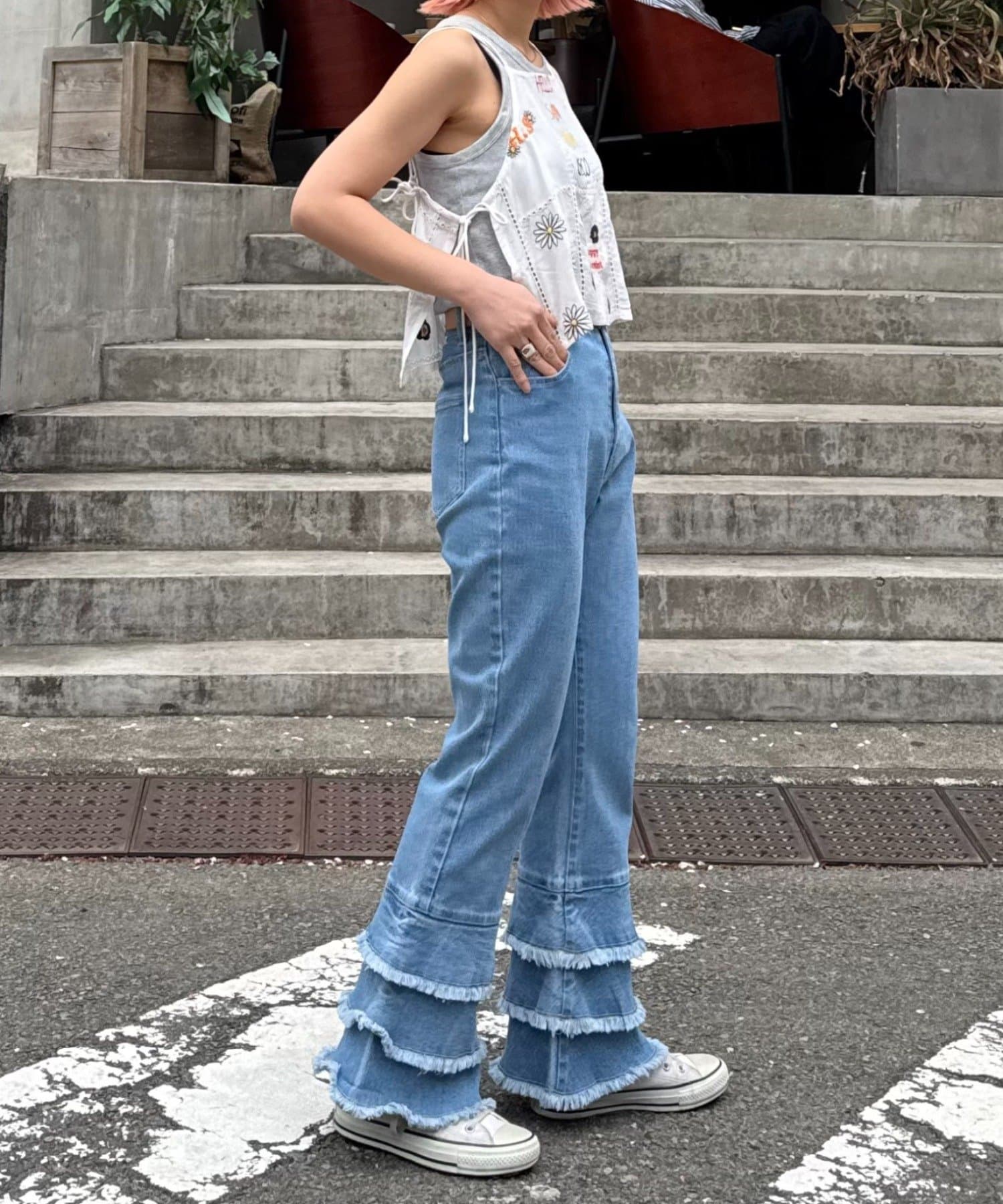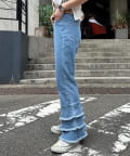 \足元フリルがガーリーでカワイイ♡フレアデザインデニム/
