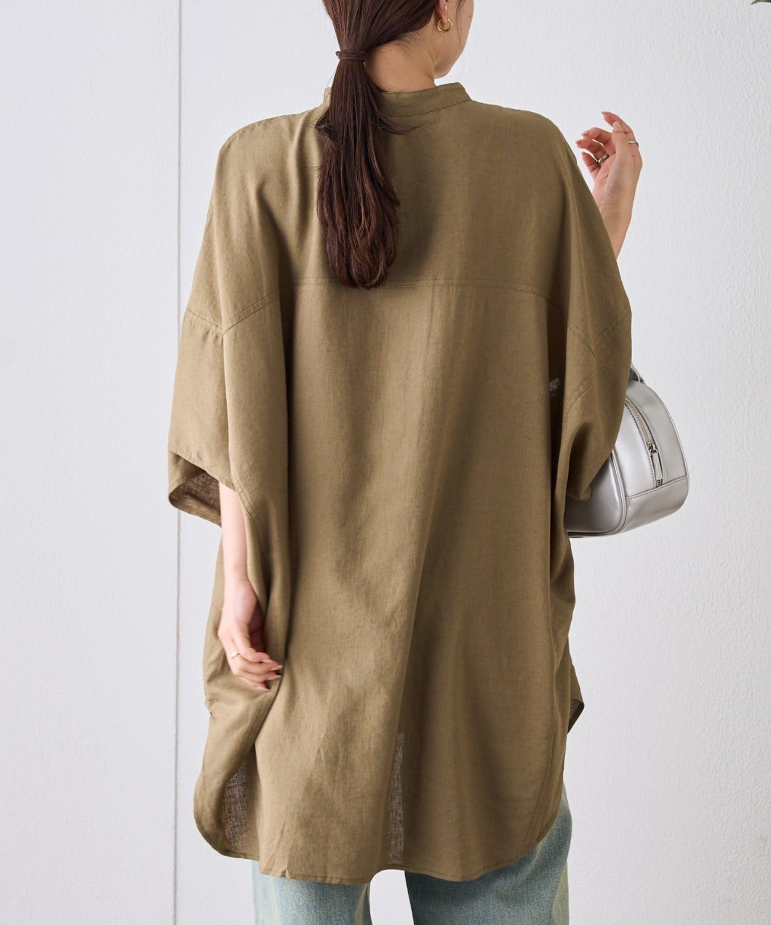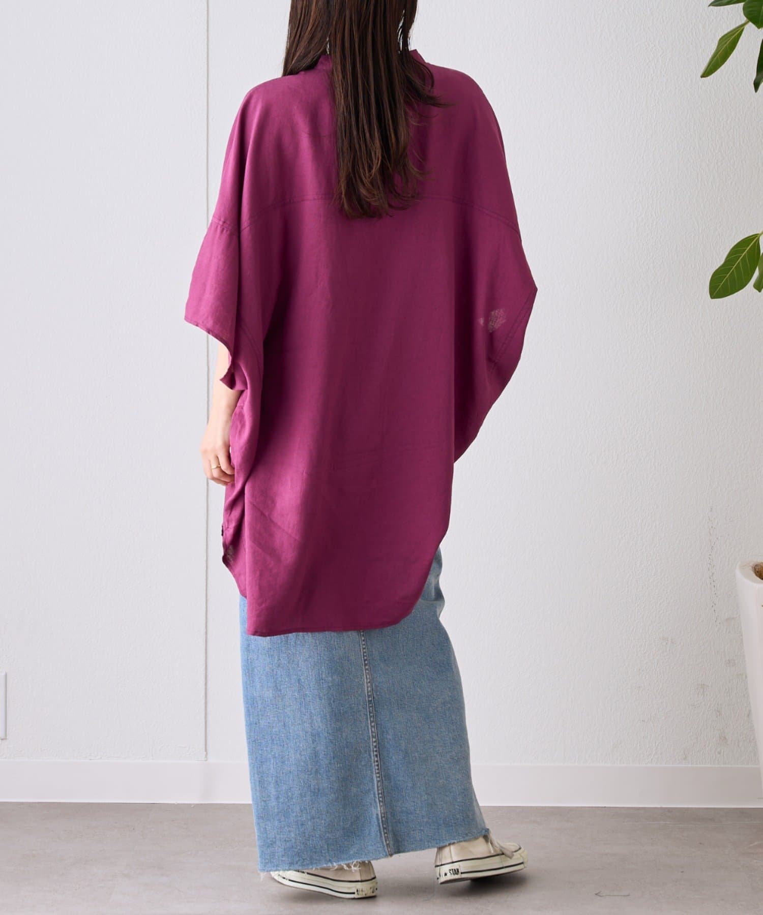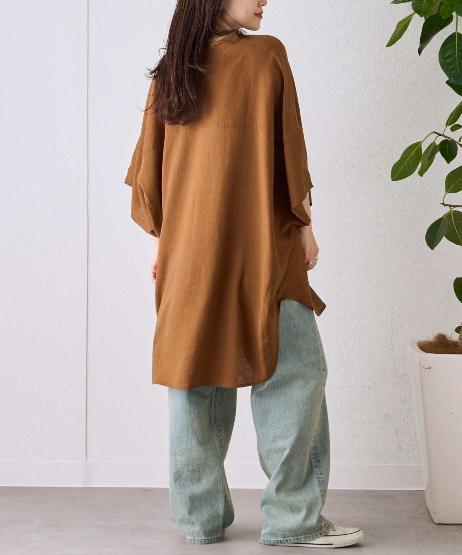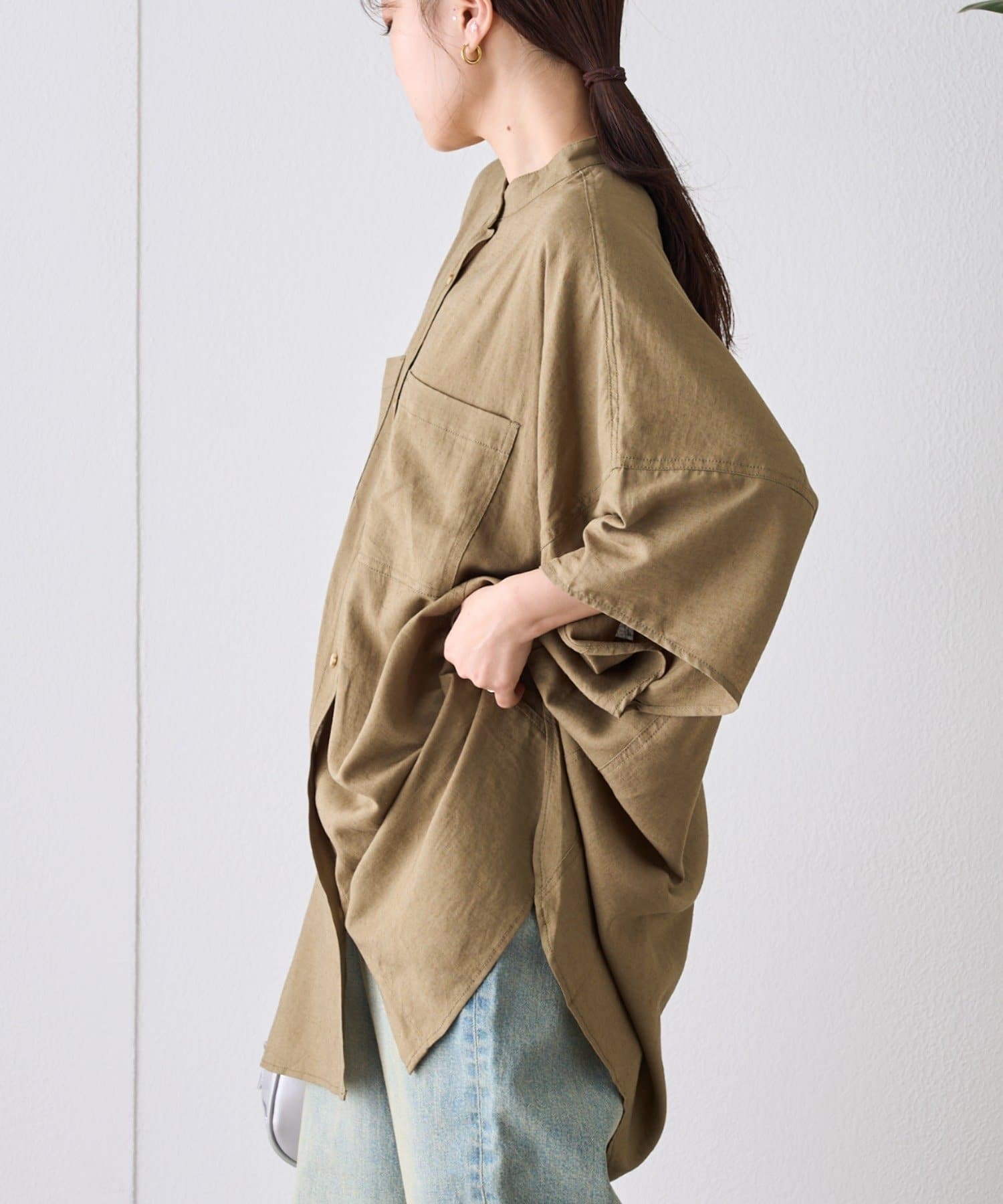 【夏の体型カバー】リネンレーヨンドルマンシャツ