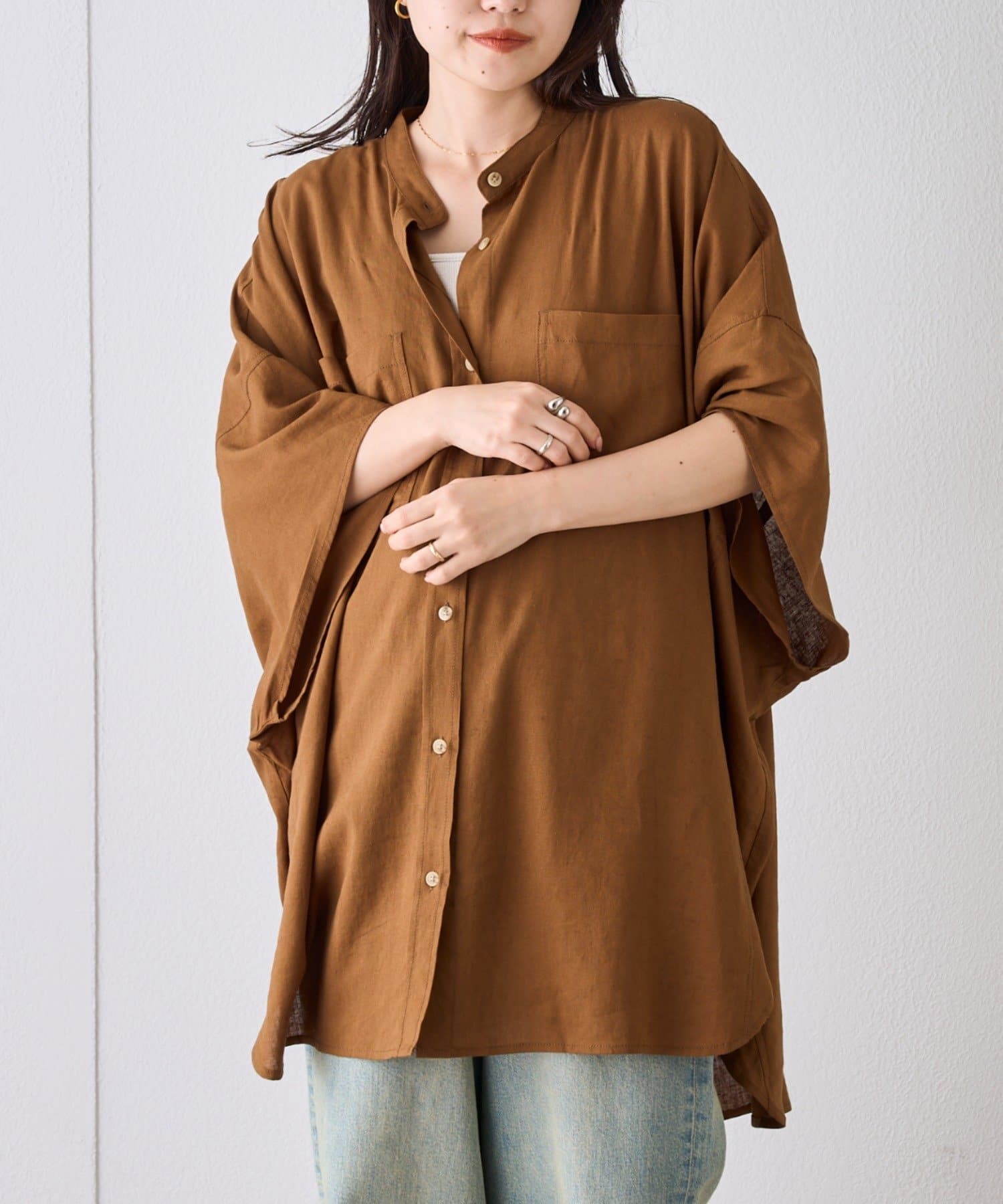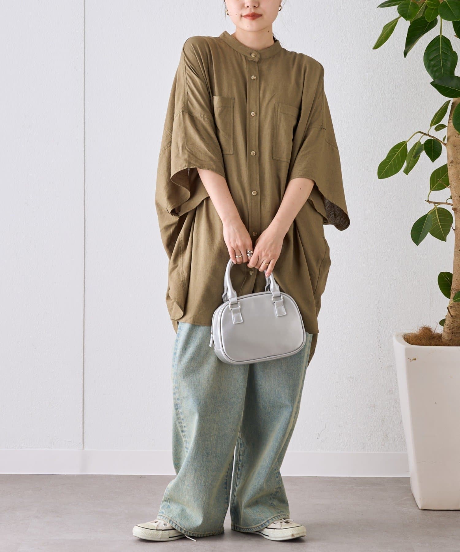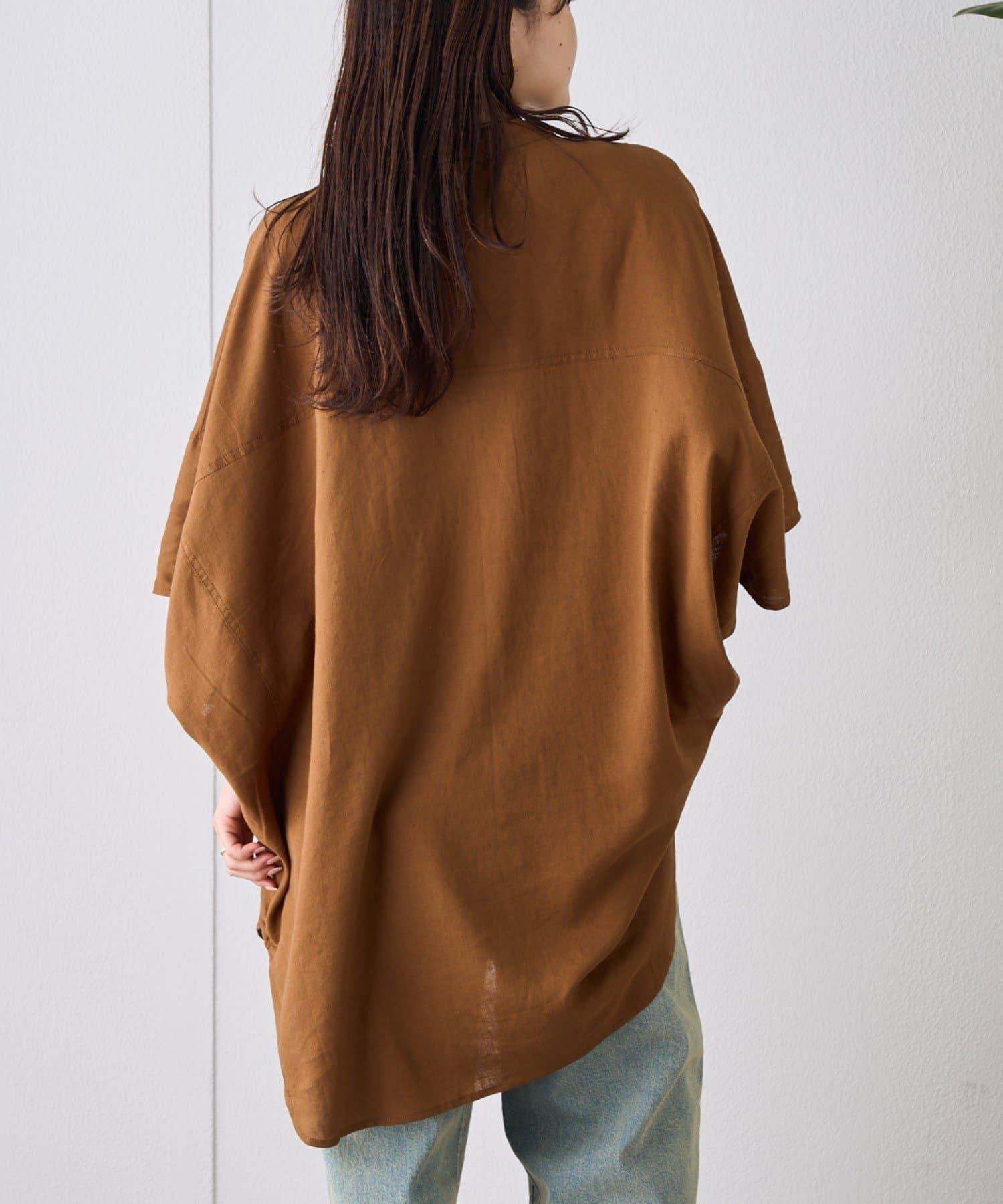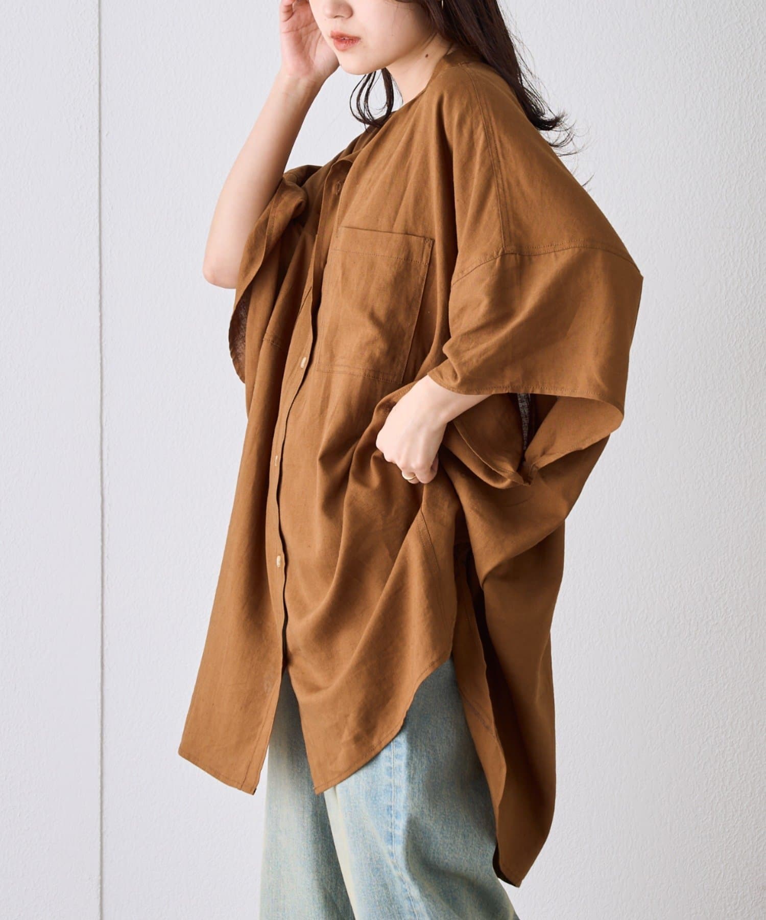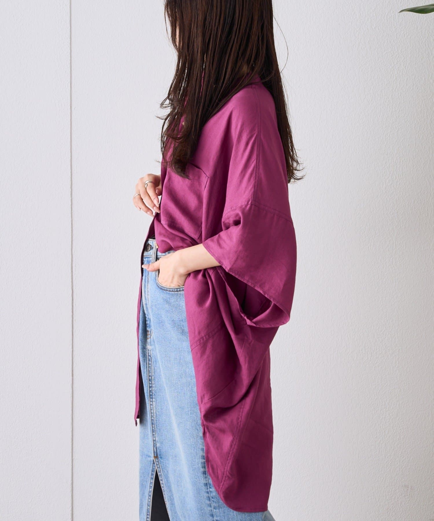 【夏の体型カバー】リネンレーヨンドルマンシャツ