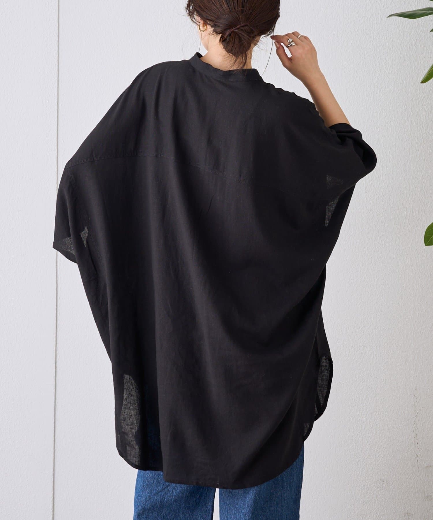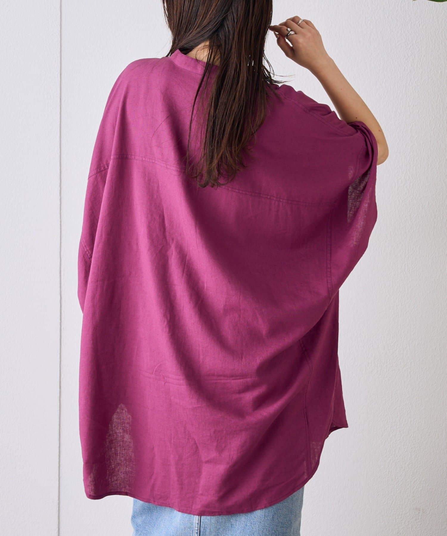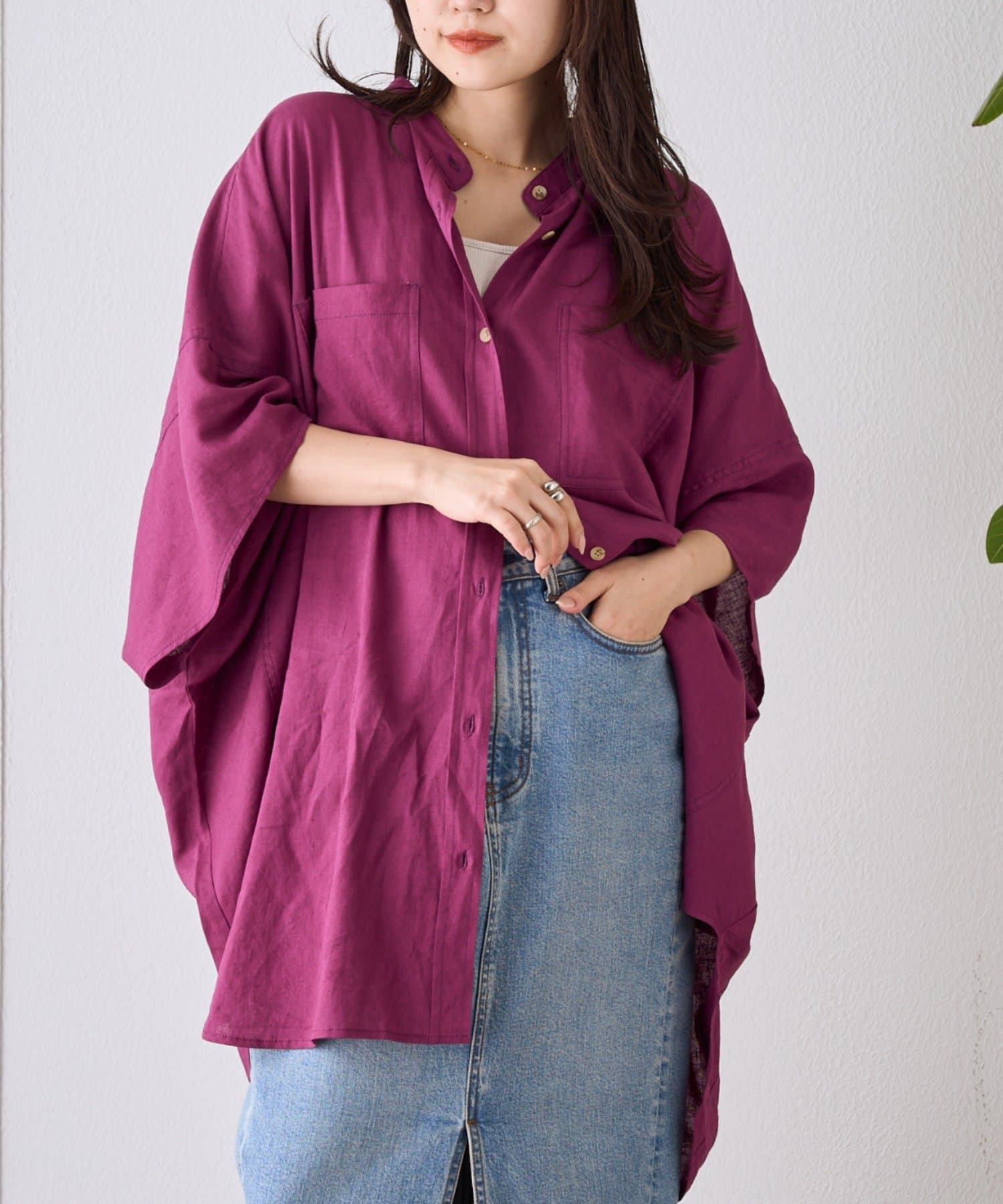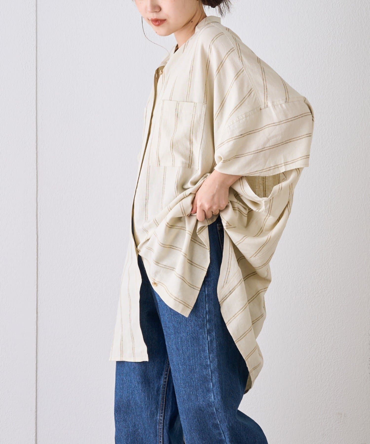 【夏の体型カバー】リネンレーヨンドルマンシャツ