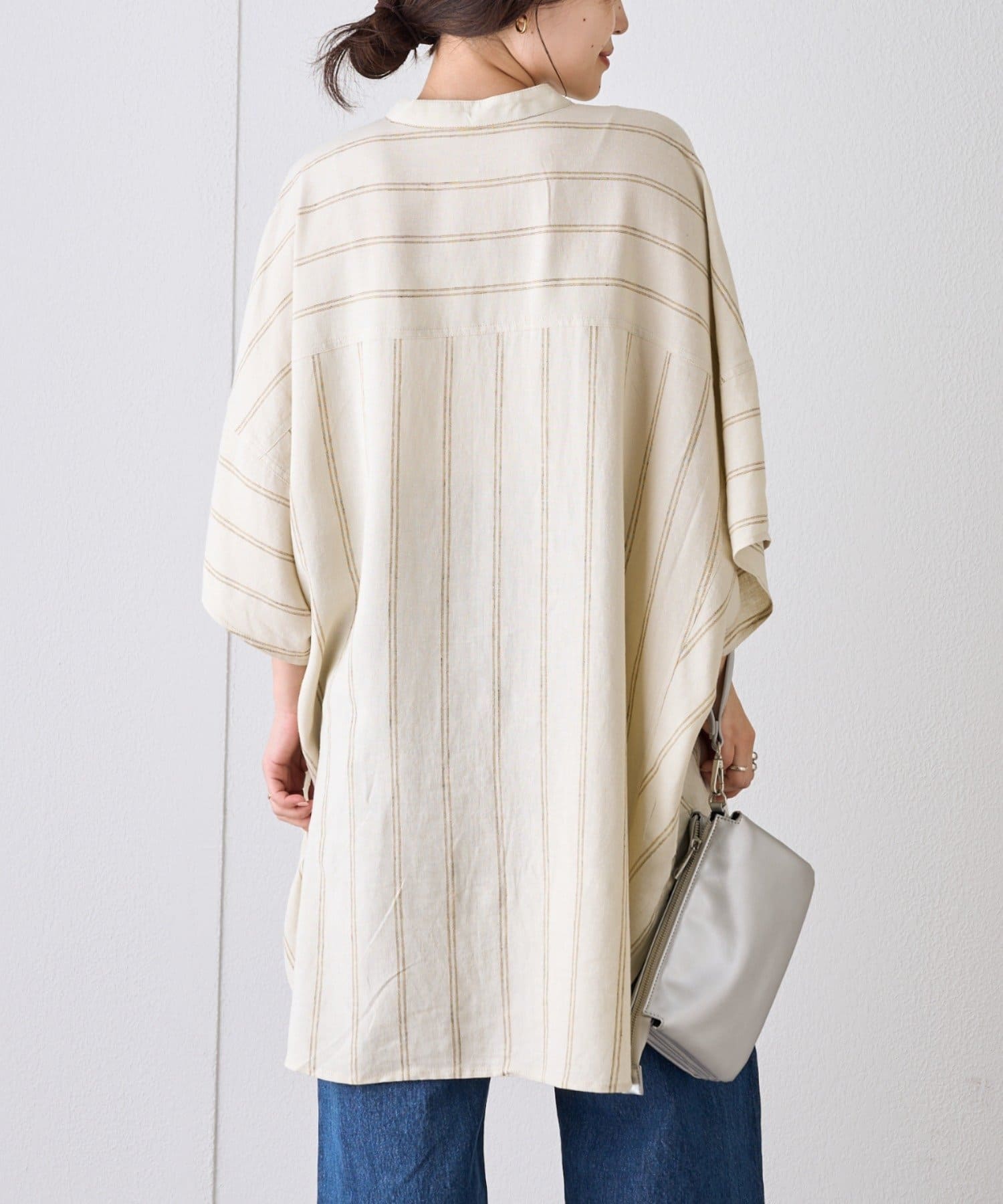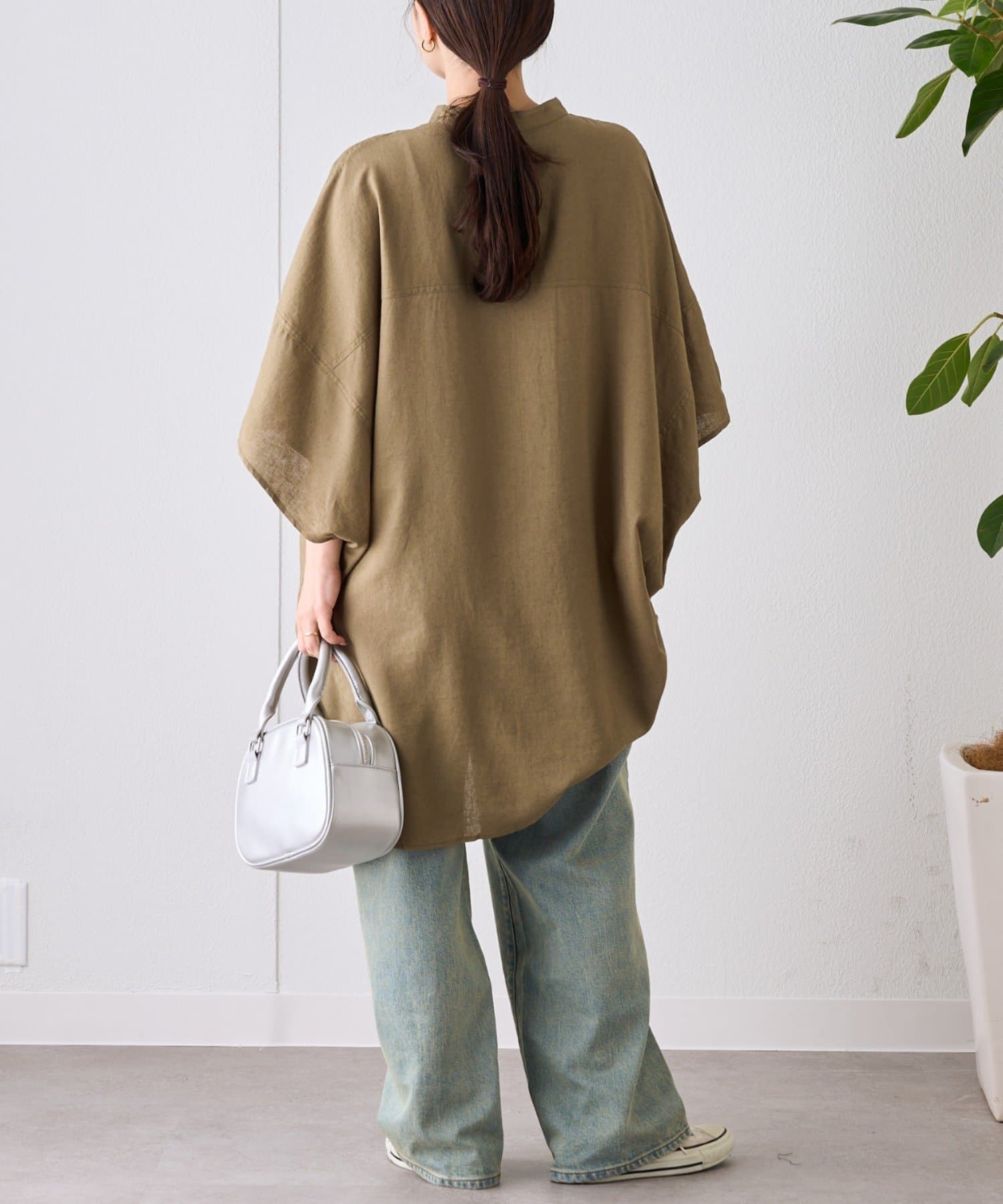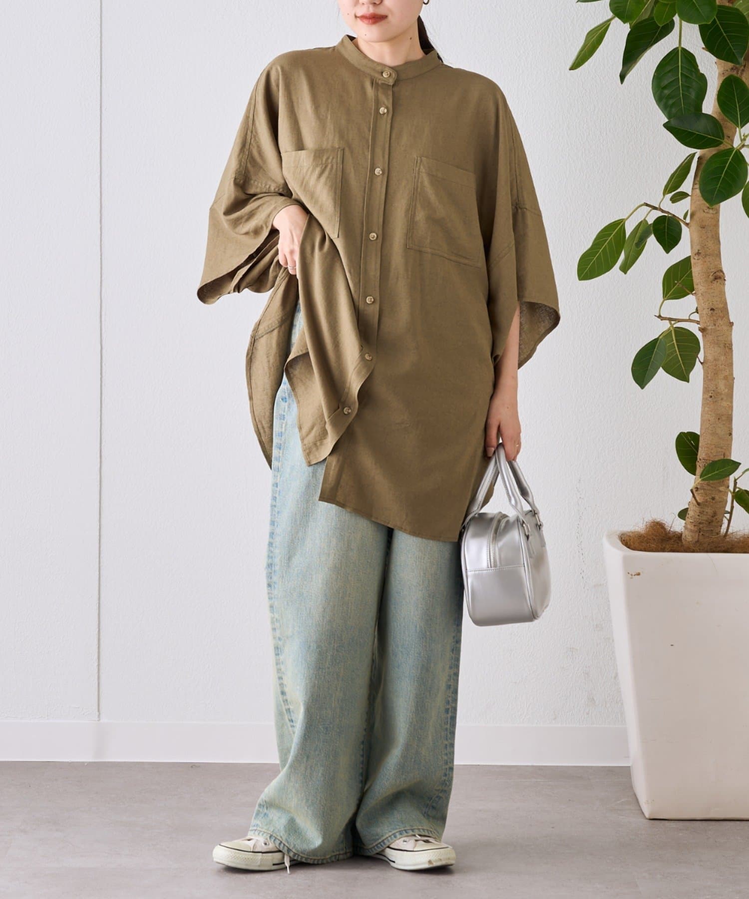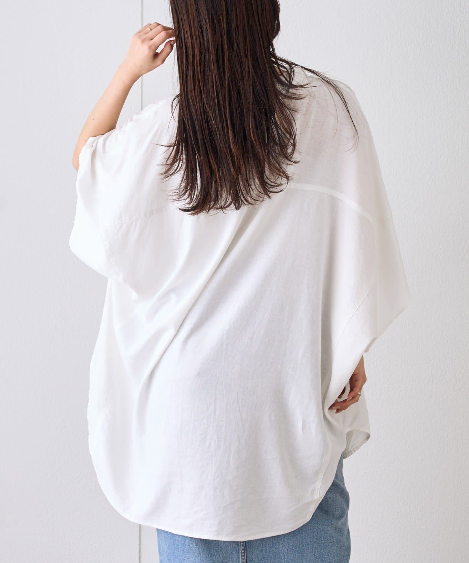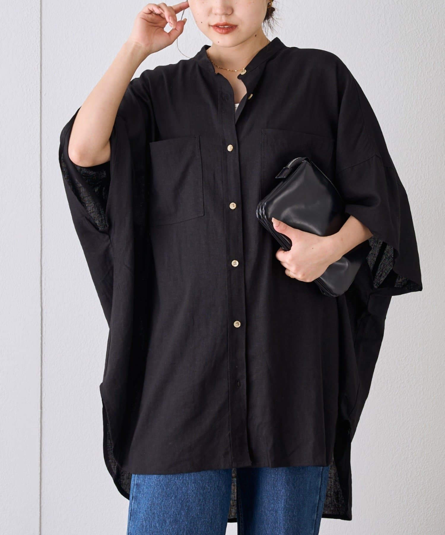 【夏の体型カバー】リネンレーヨンドルマンシャツ