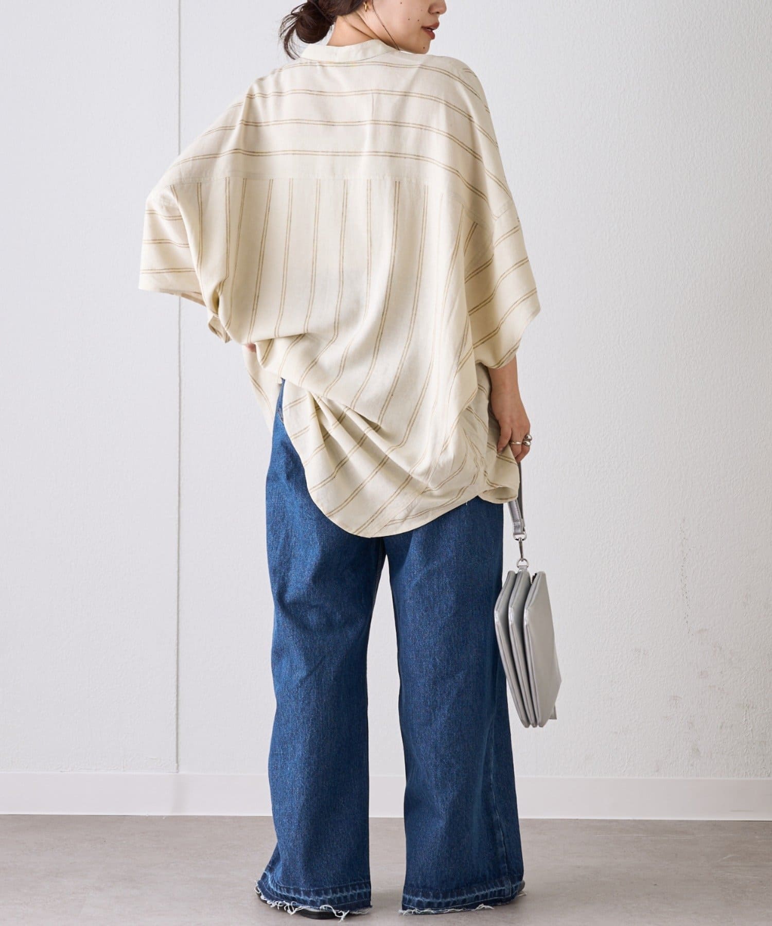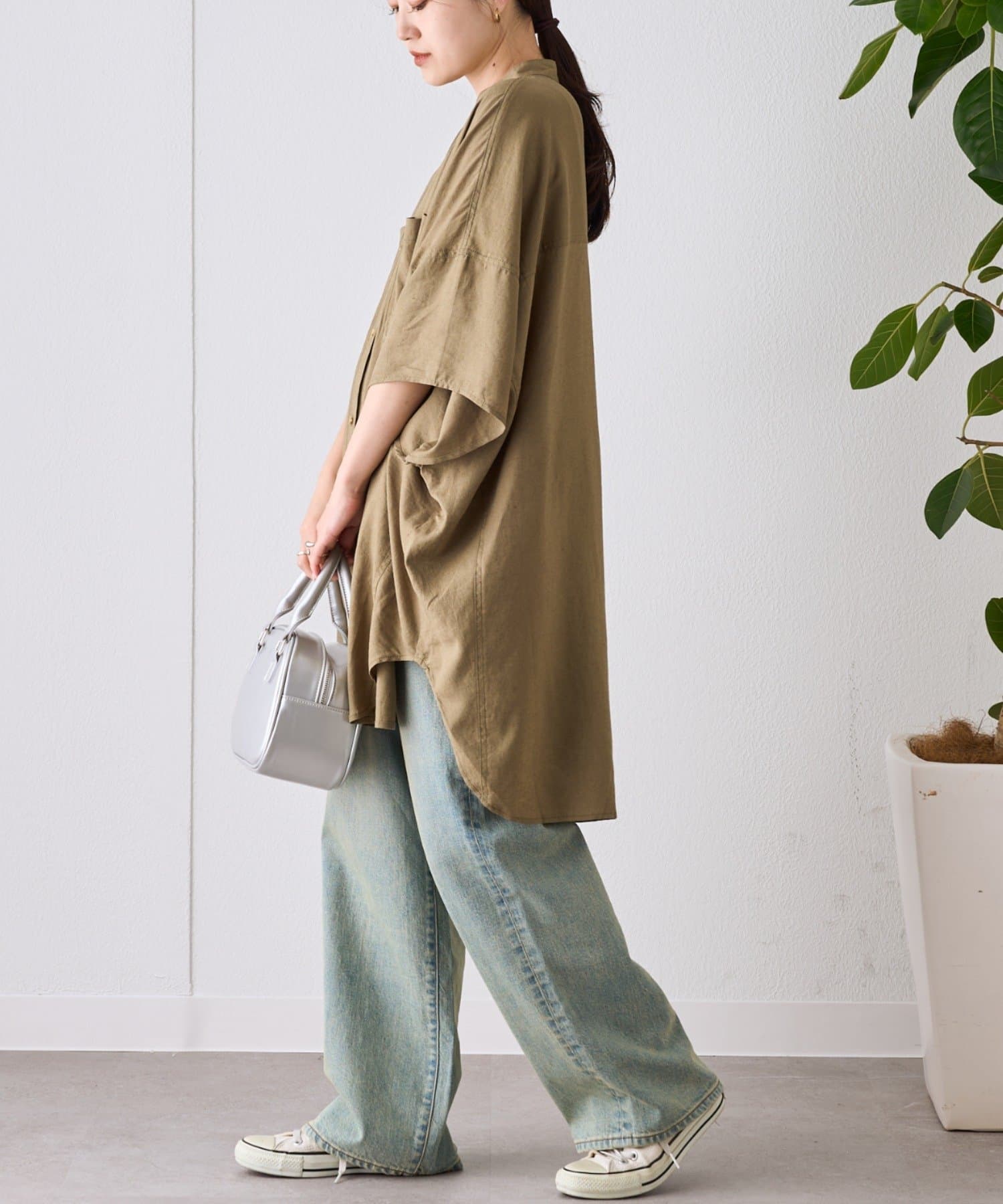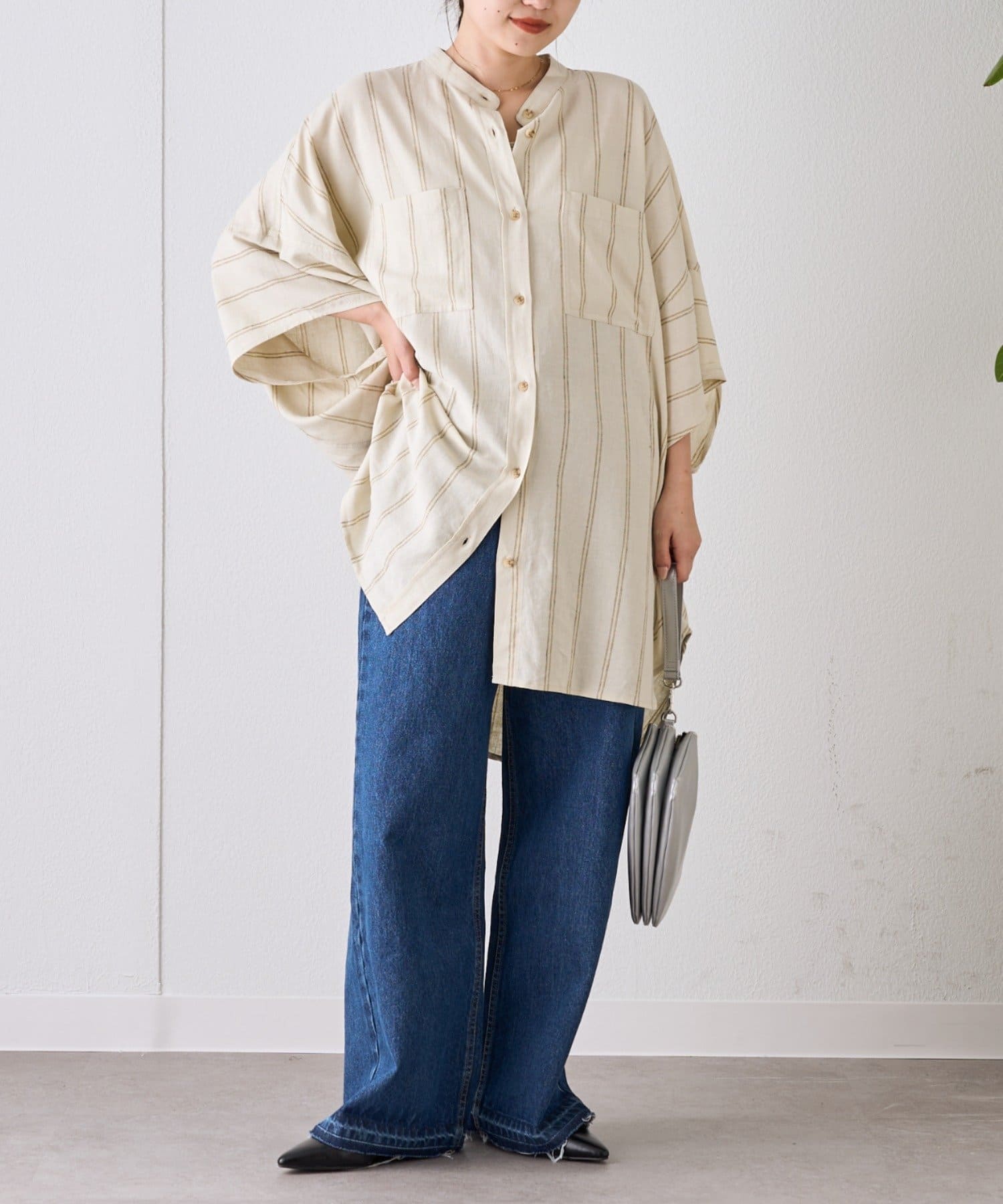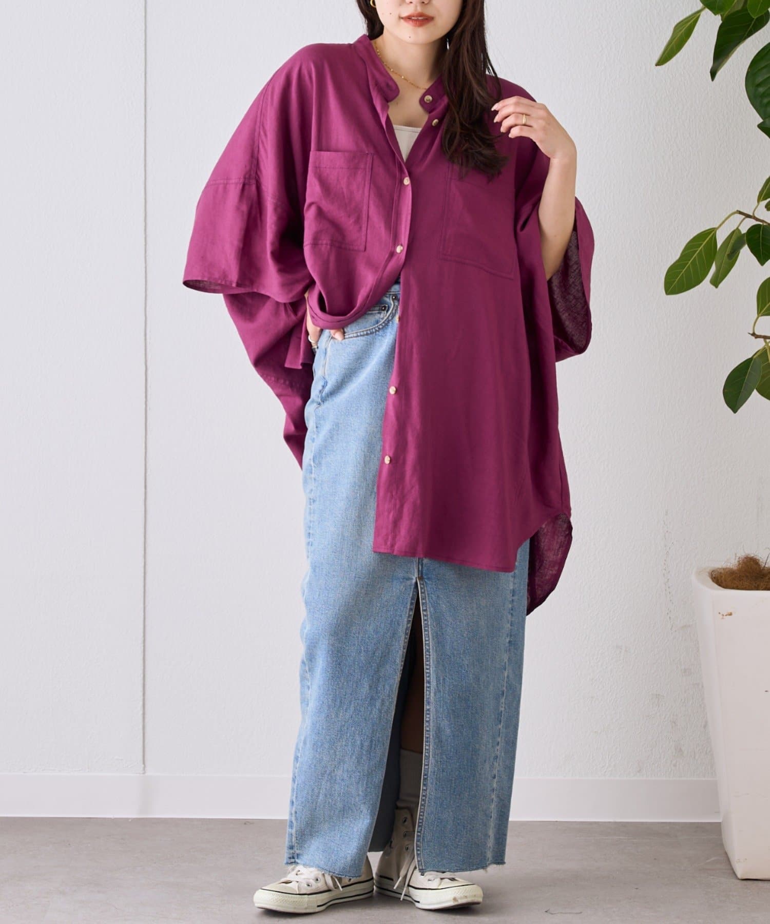 【夏の体型カバー】リネンレーヨンドルマンシャツ
