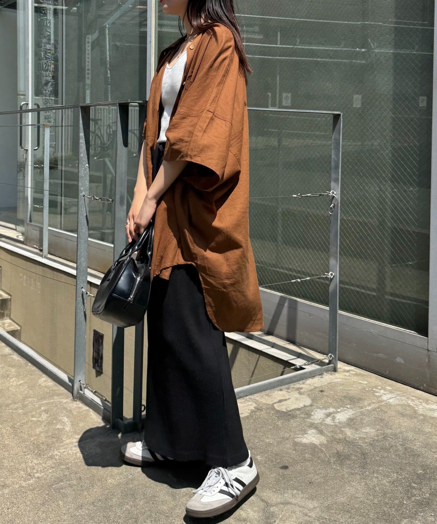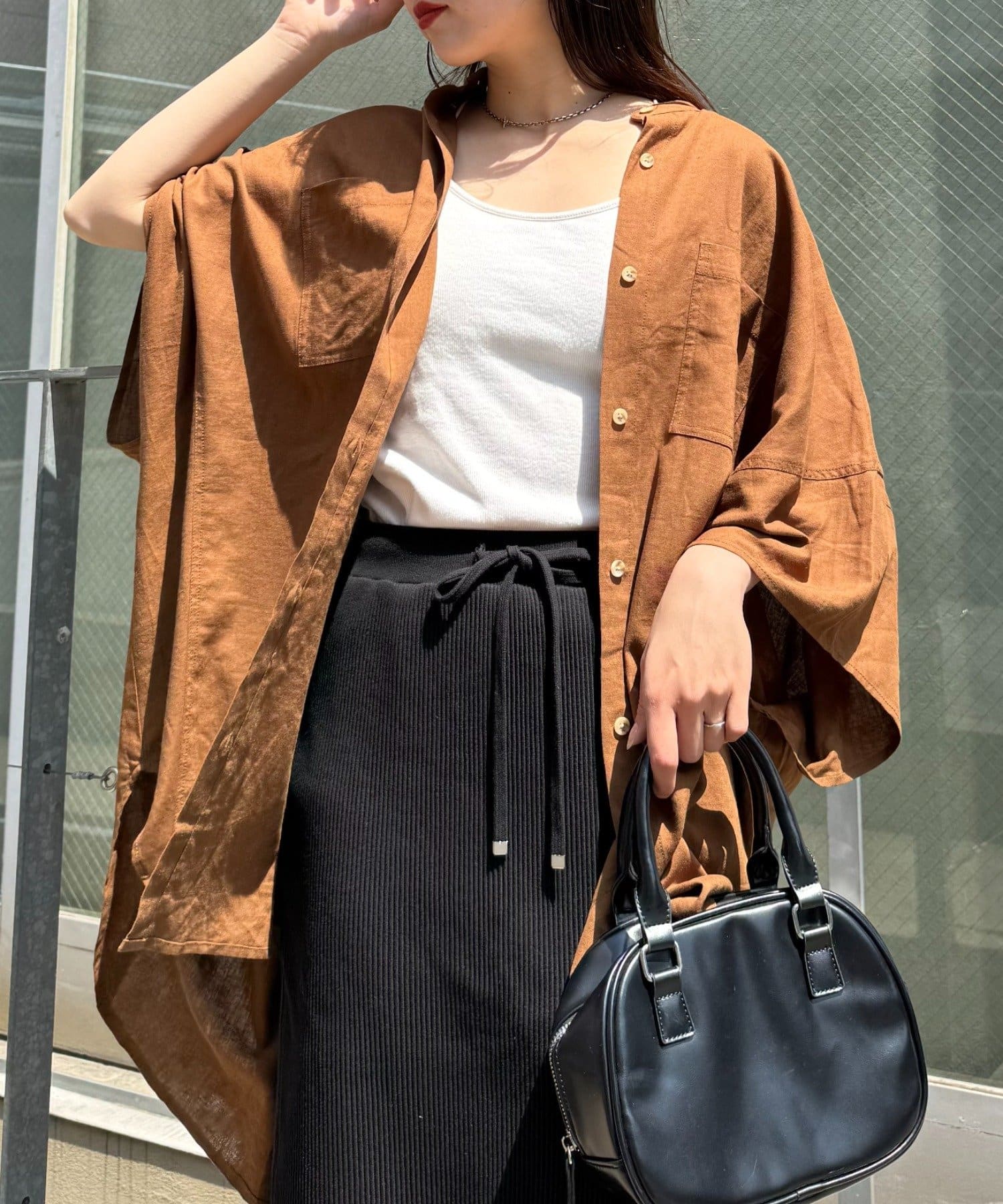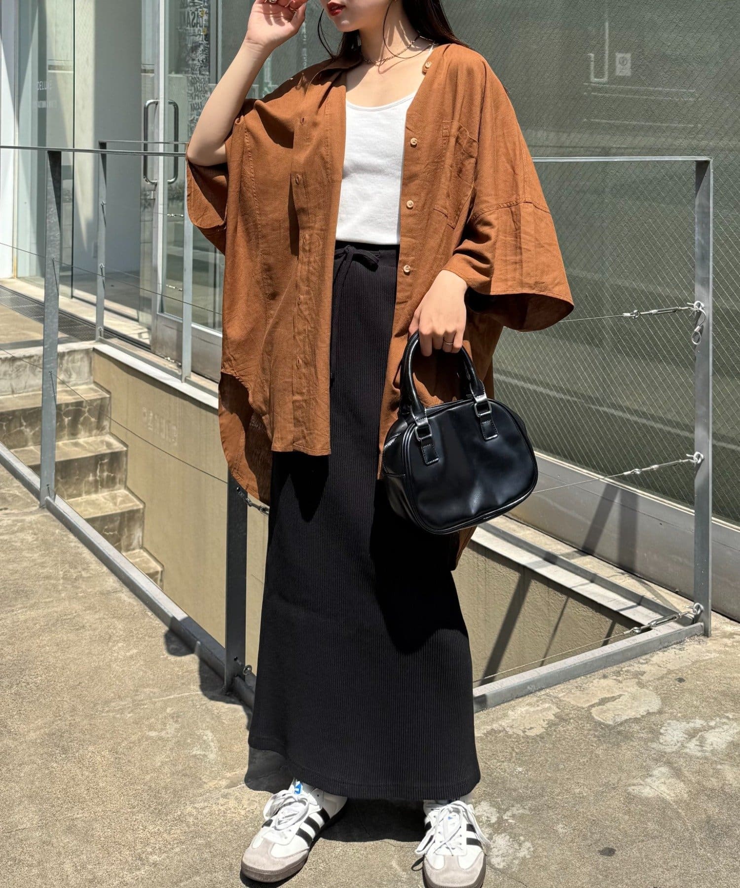 さらっと1枚で着るだけで、簡単におしゃれ見えするコーデに♩