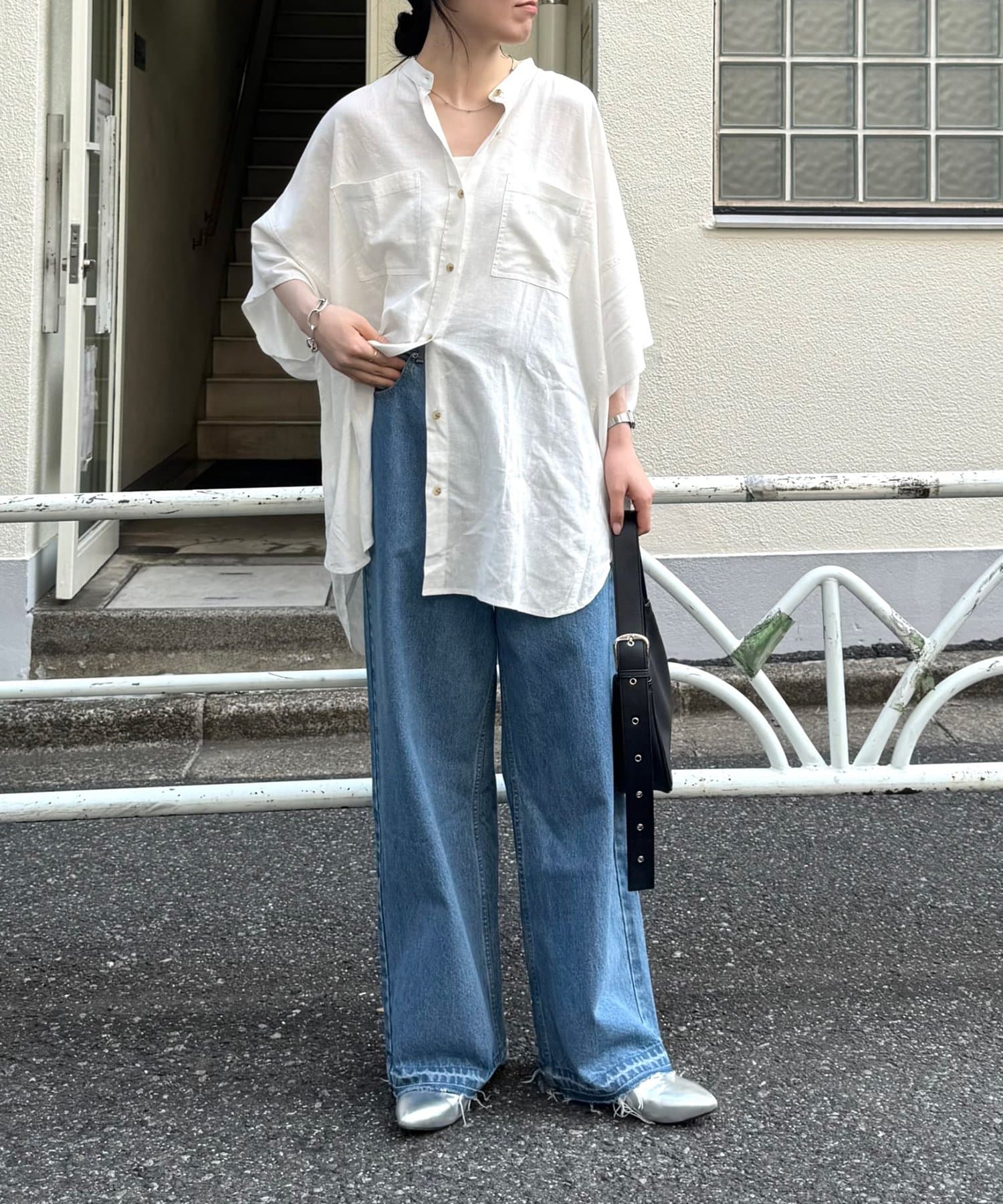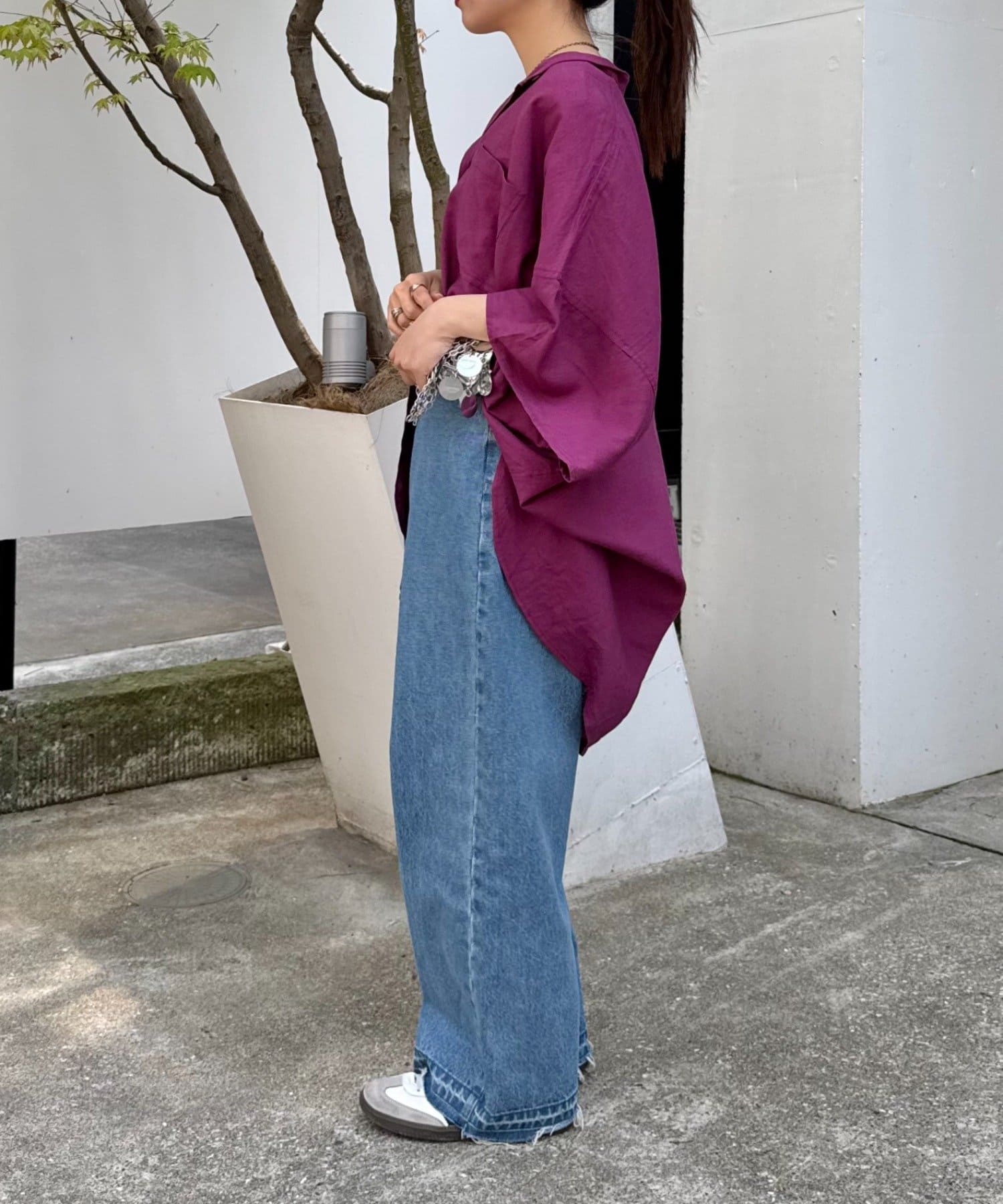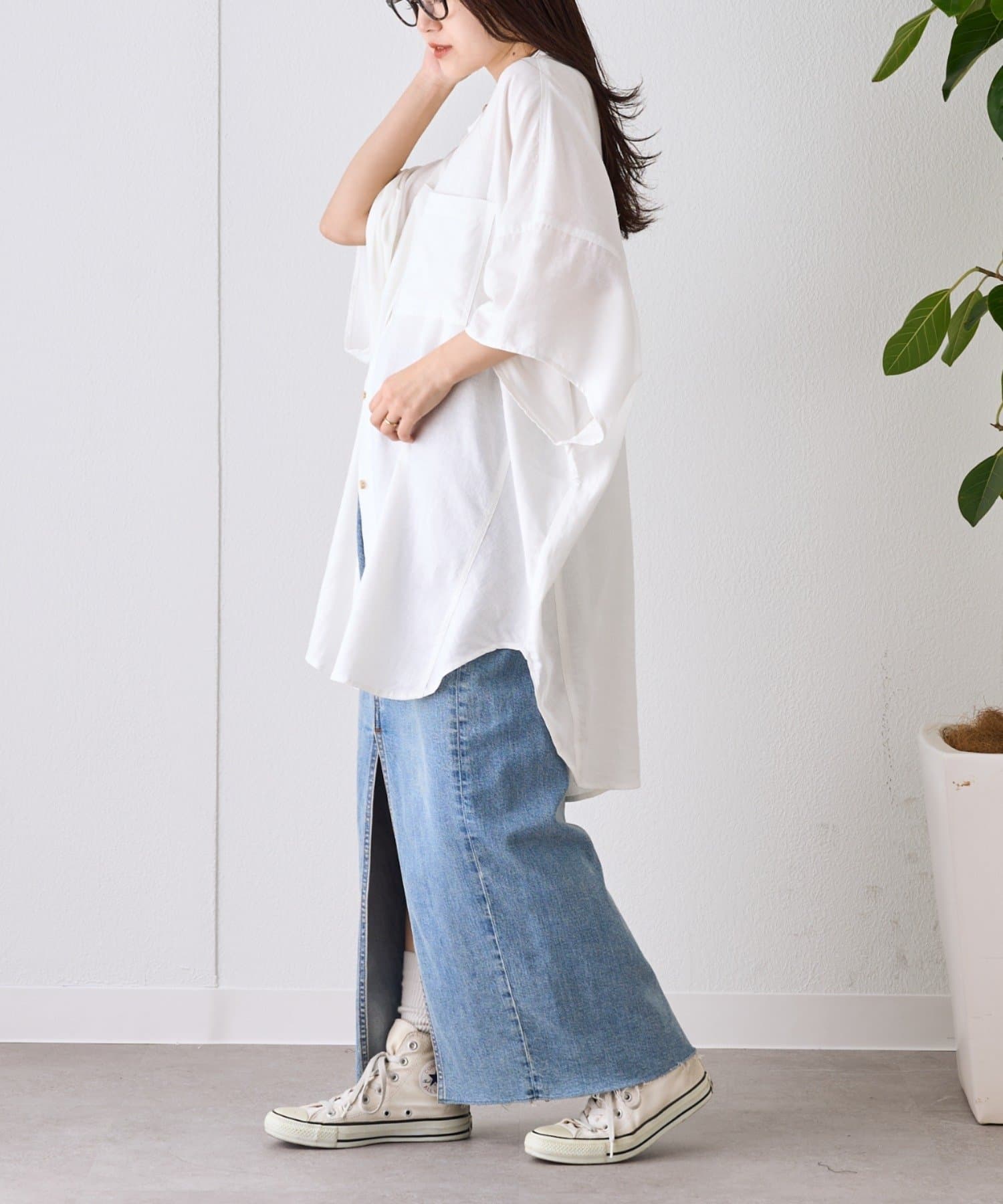 さらっと1枚で着るだけで、簡単におしゃれ見えするコーデに♩