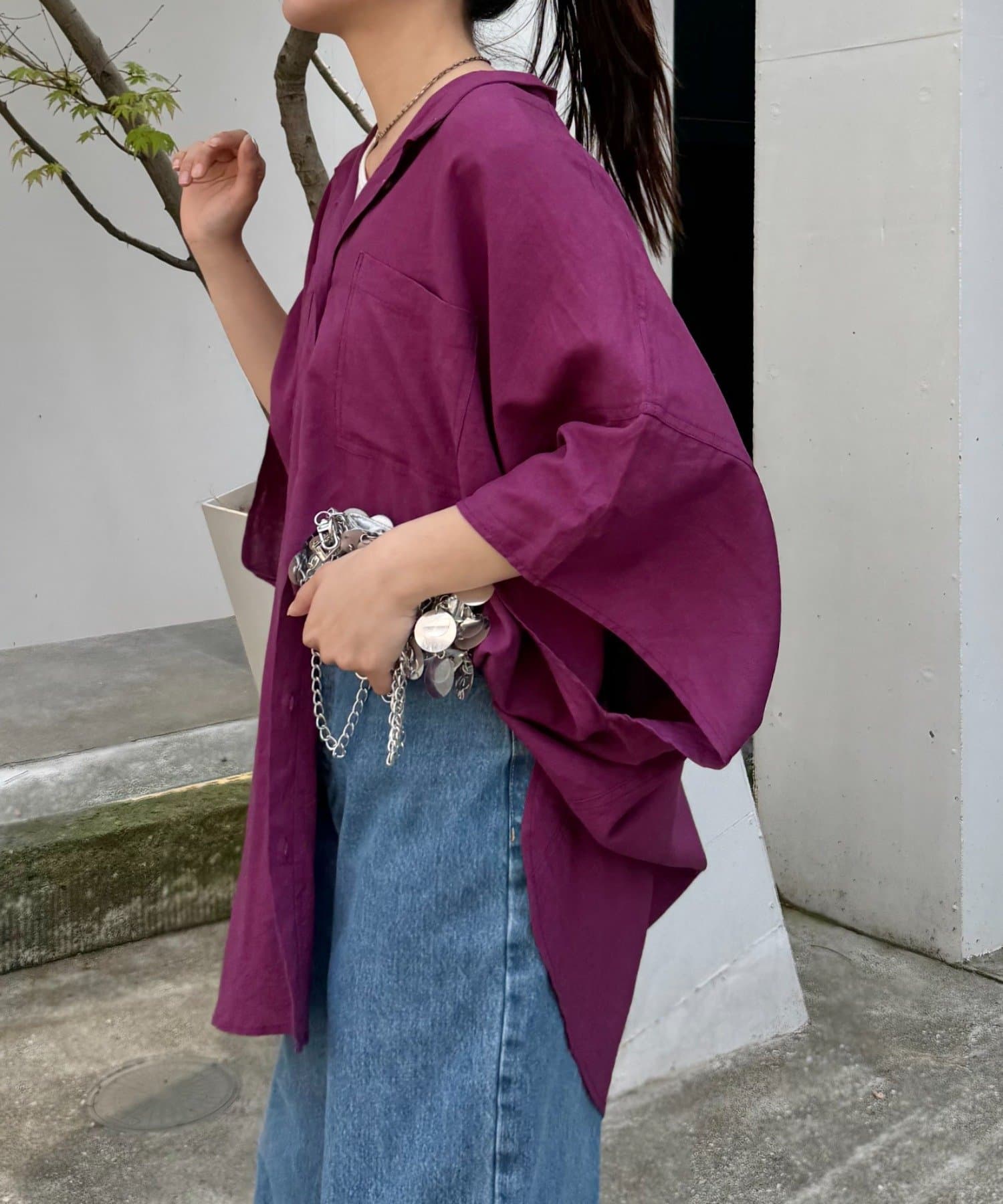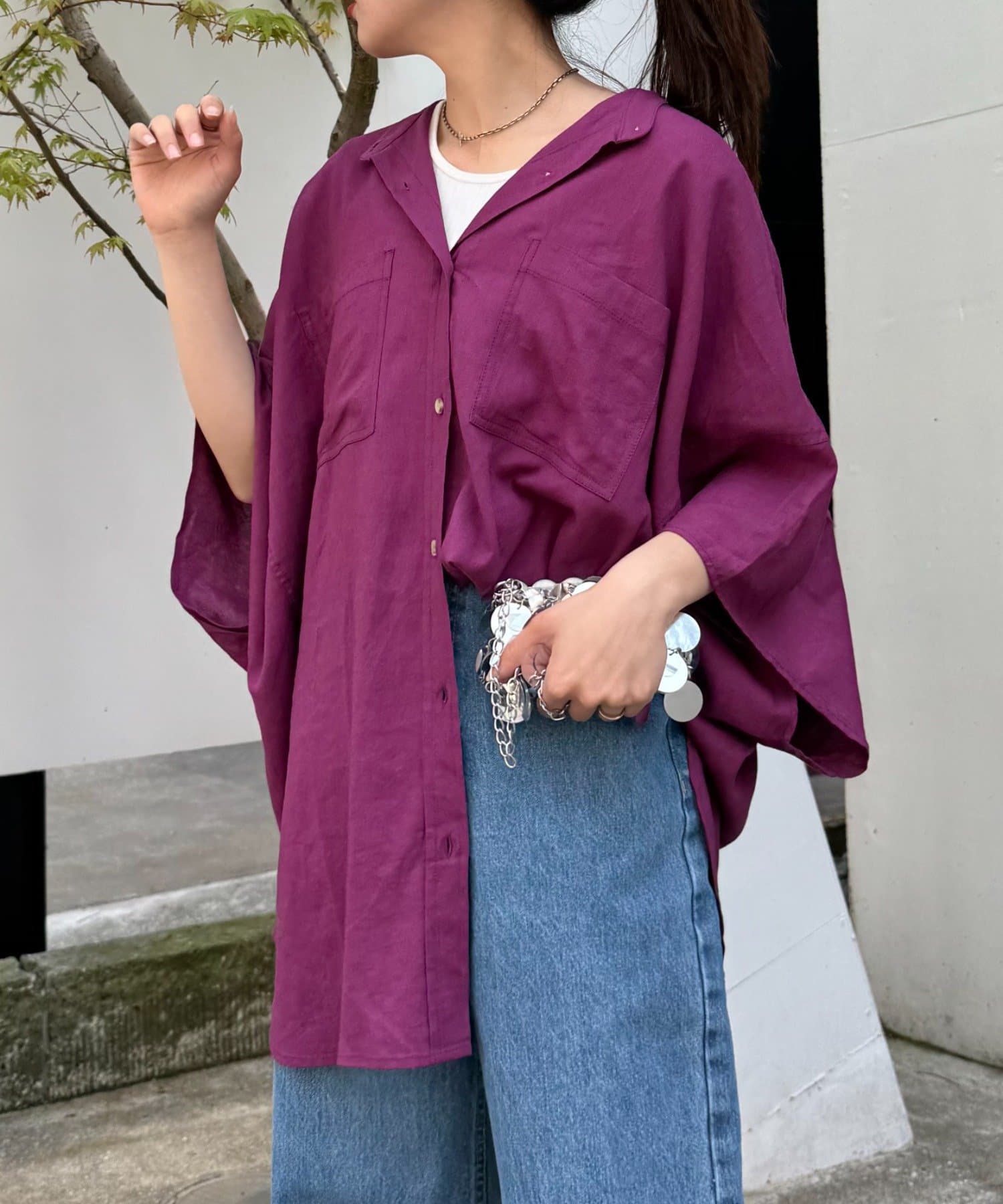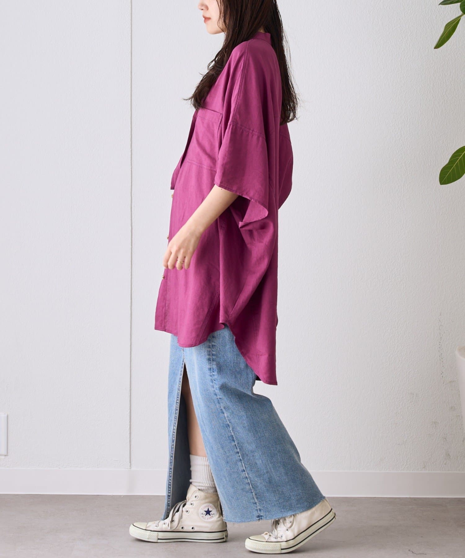 リネンレーヨン×オーバーサイズで、リラックス感のあるシャツ。